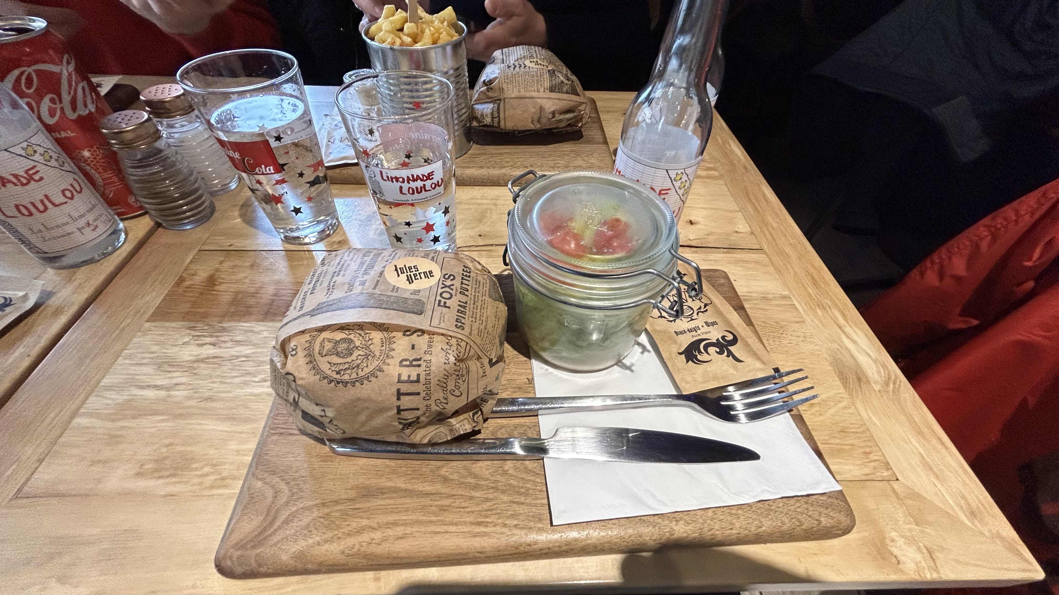 J'ai pris le burger Jules Verne au saumon et il était très bon, pas sec (c'était mon appréhension). Seul bémol pour les frites, j'avais l'impression d'avoir des chutes de frites (très petites) et trop salées (mieux vaut mettre son sel soi-même pour doser comme on le souhaite). Le personnel était super sympathique, rien à redire.