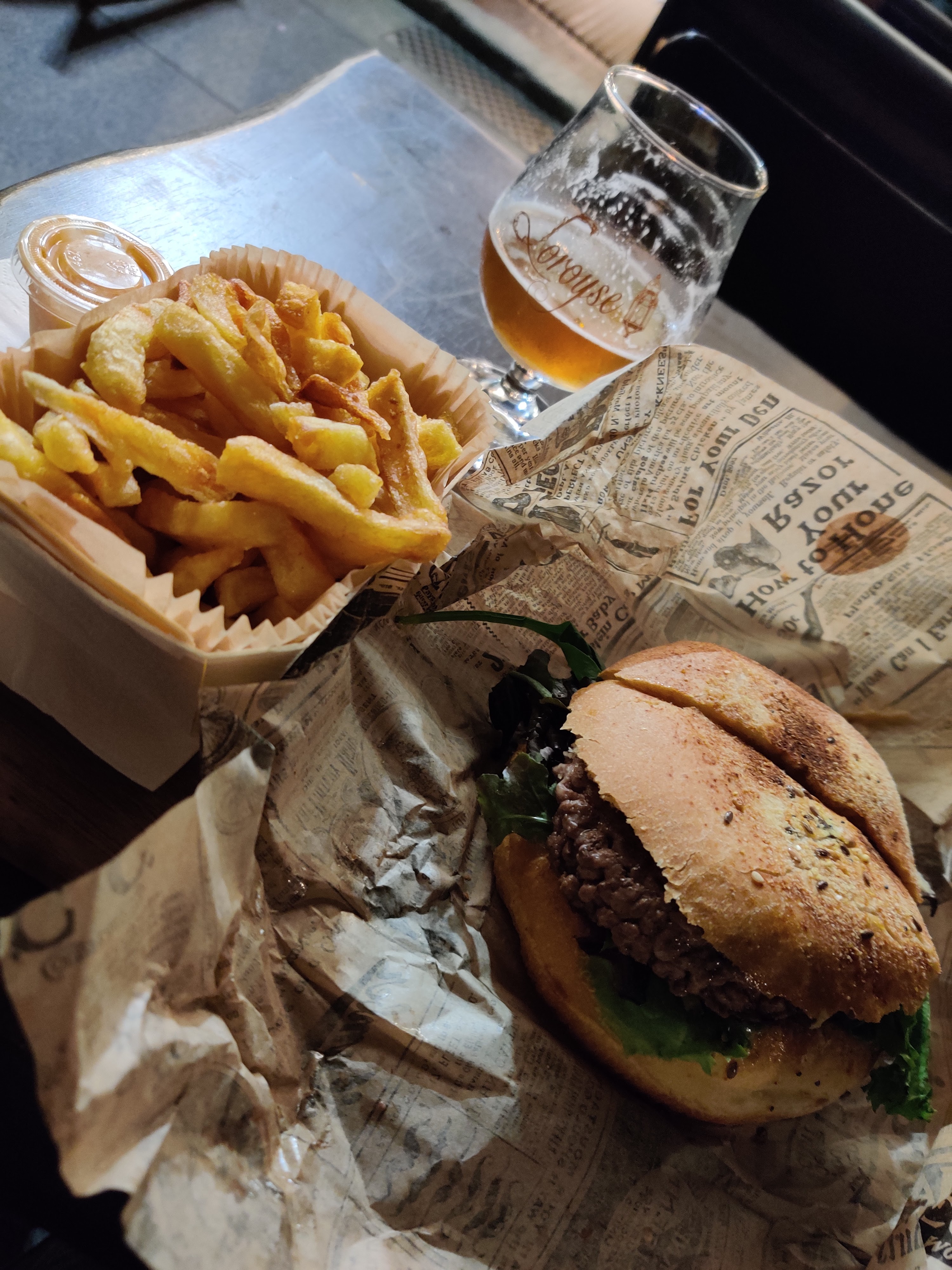Burgers excellents, bière du moment blonde mirabelle bonne et locale. Bémol déçue par les frites cuites à la grasise de bœuf