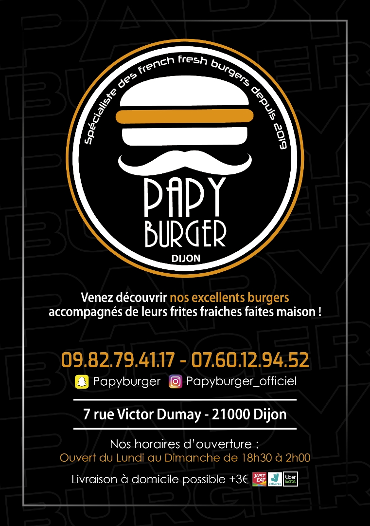 Une première fois chez papyburger Dijon, le moins que lon puisse dire c'est quon s'est régalés!!.On y trouve des burgers originaux et surtout tout est frais et fait maison. Au plaisir dy retourner bientôt