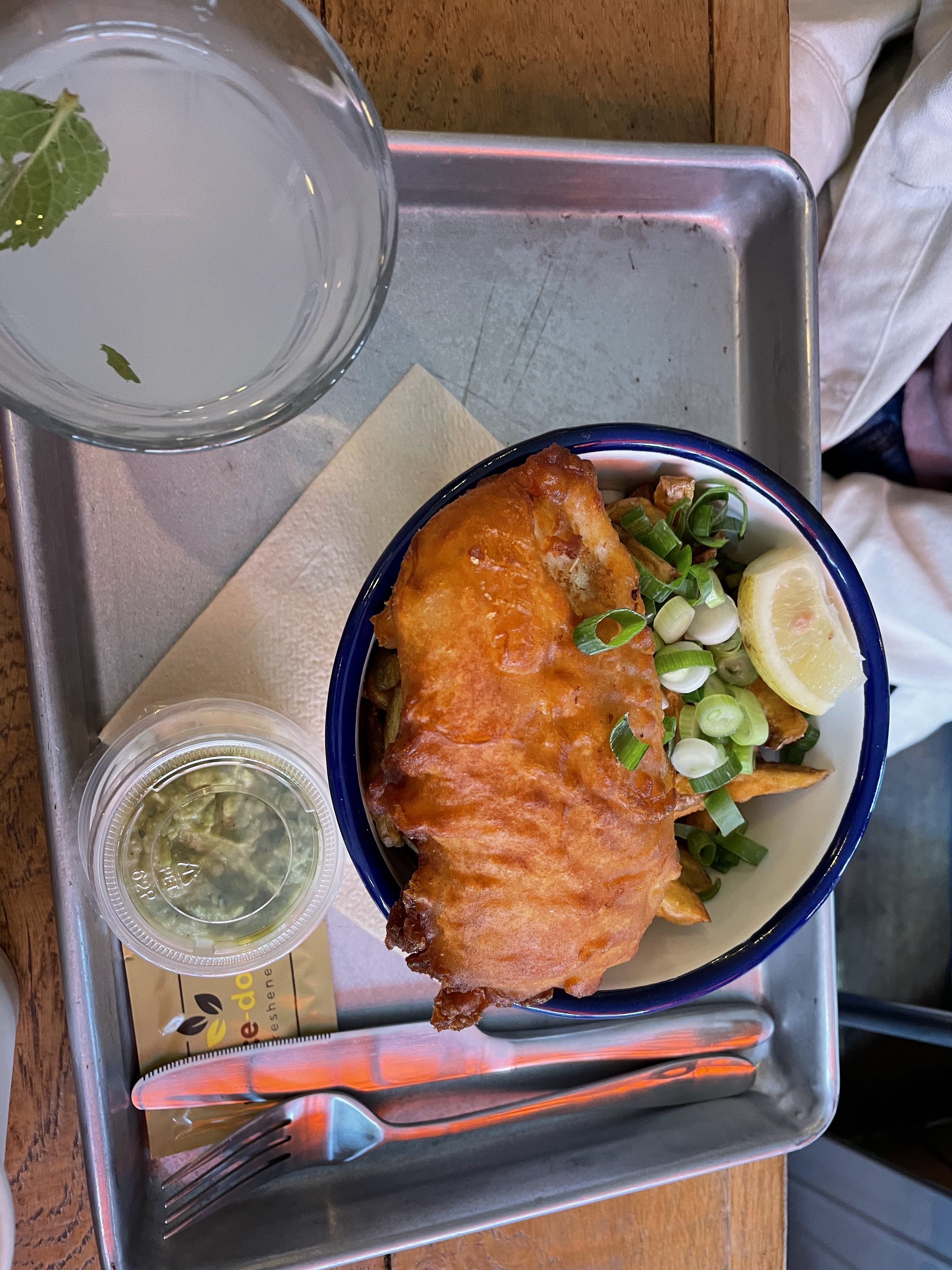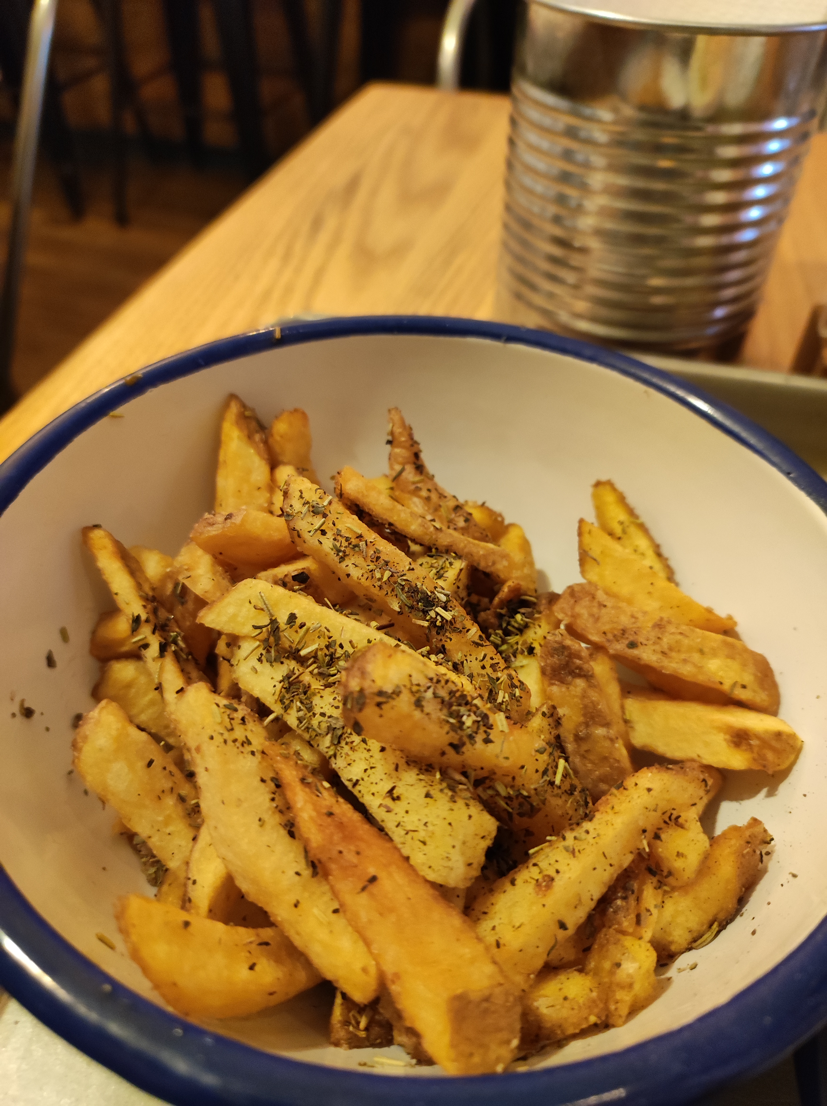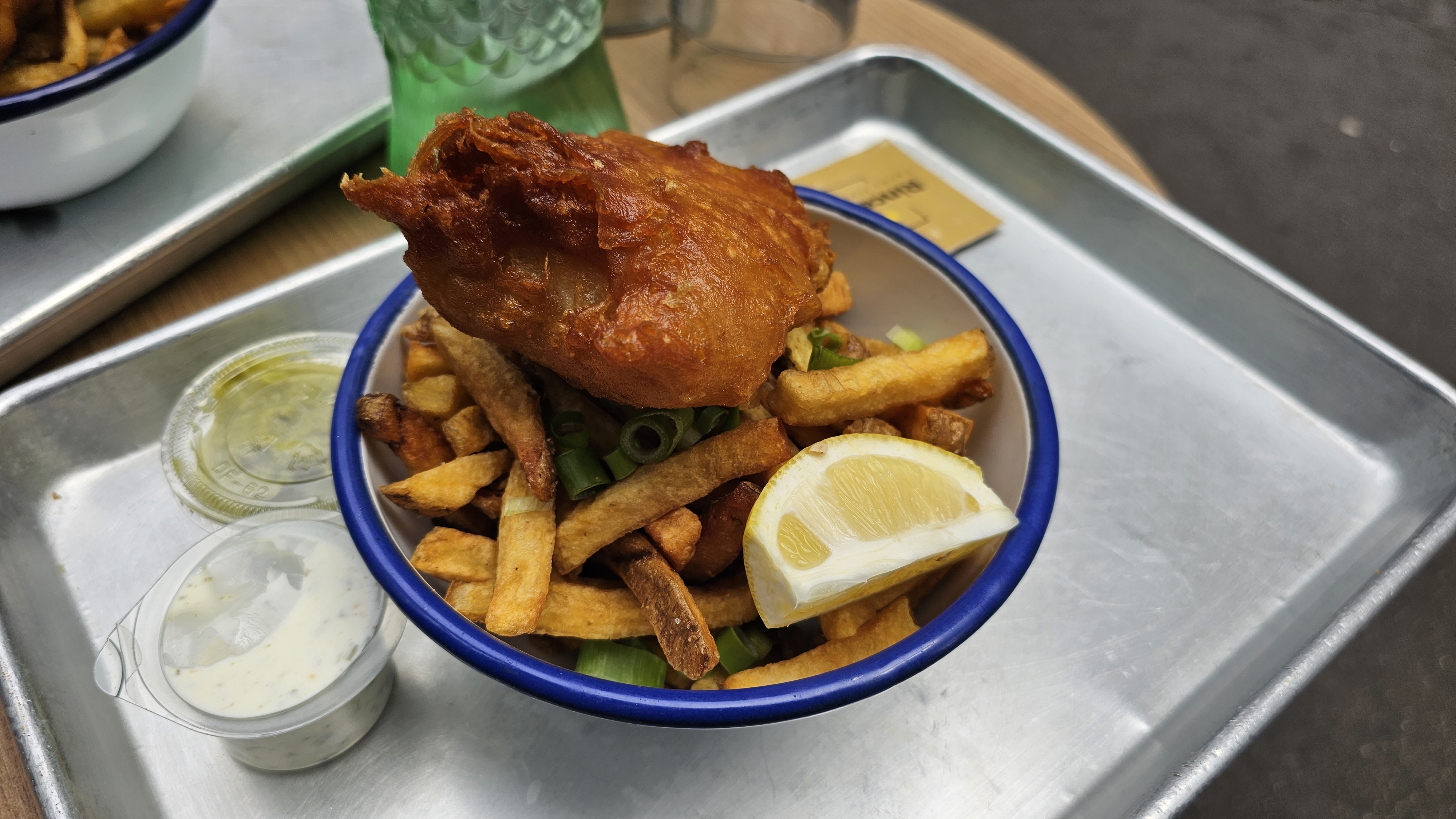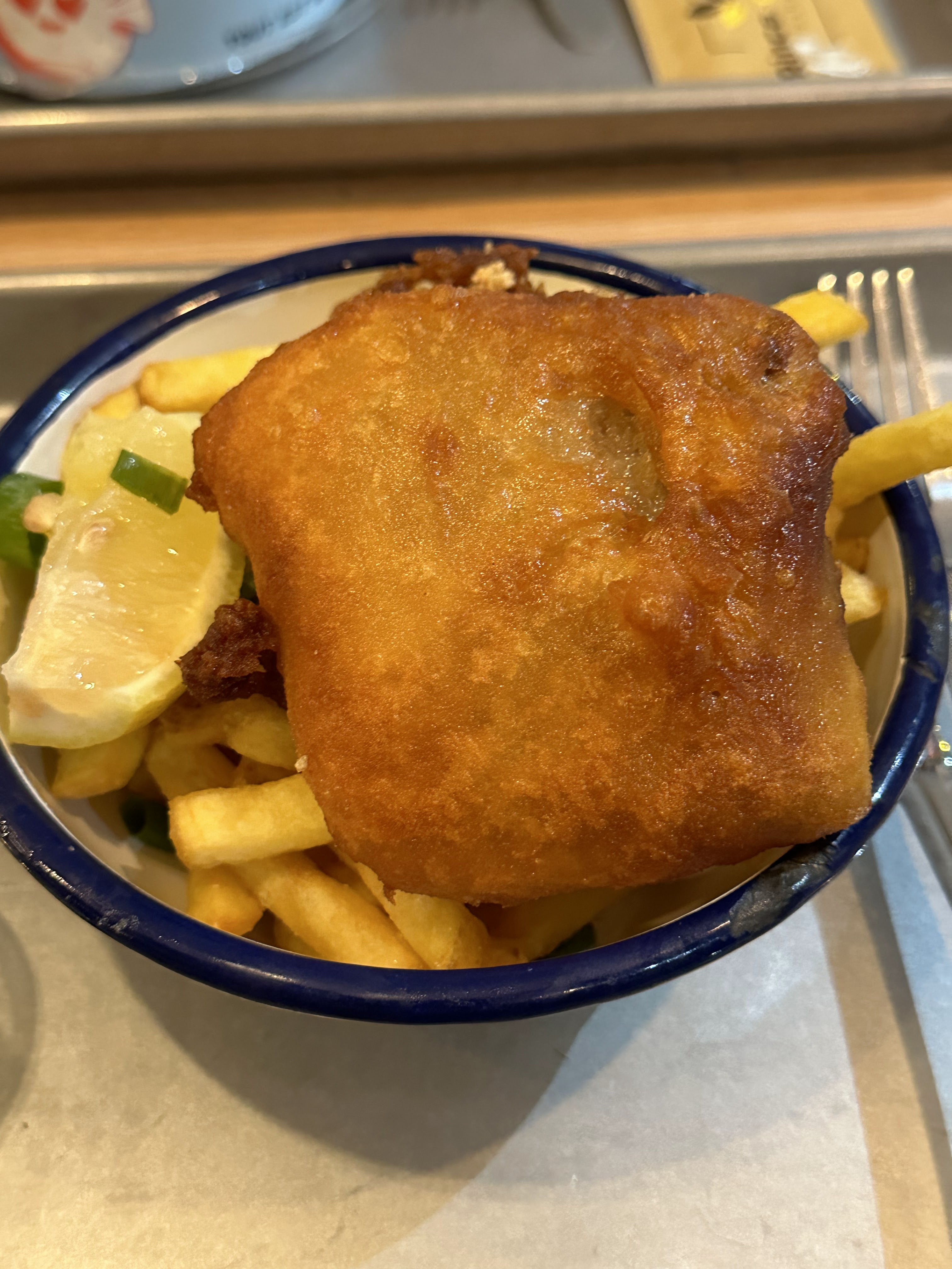 Un peu déçu, j’ai trouvé le poisson et sa panure assez fade pour le fish and chips. En effet les frites sont maisons, personnellement j’opterais pour peut être moins en quantité mais des plus grosses frites. Le service était très bien, ils sont très gentils et accueillants :)