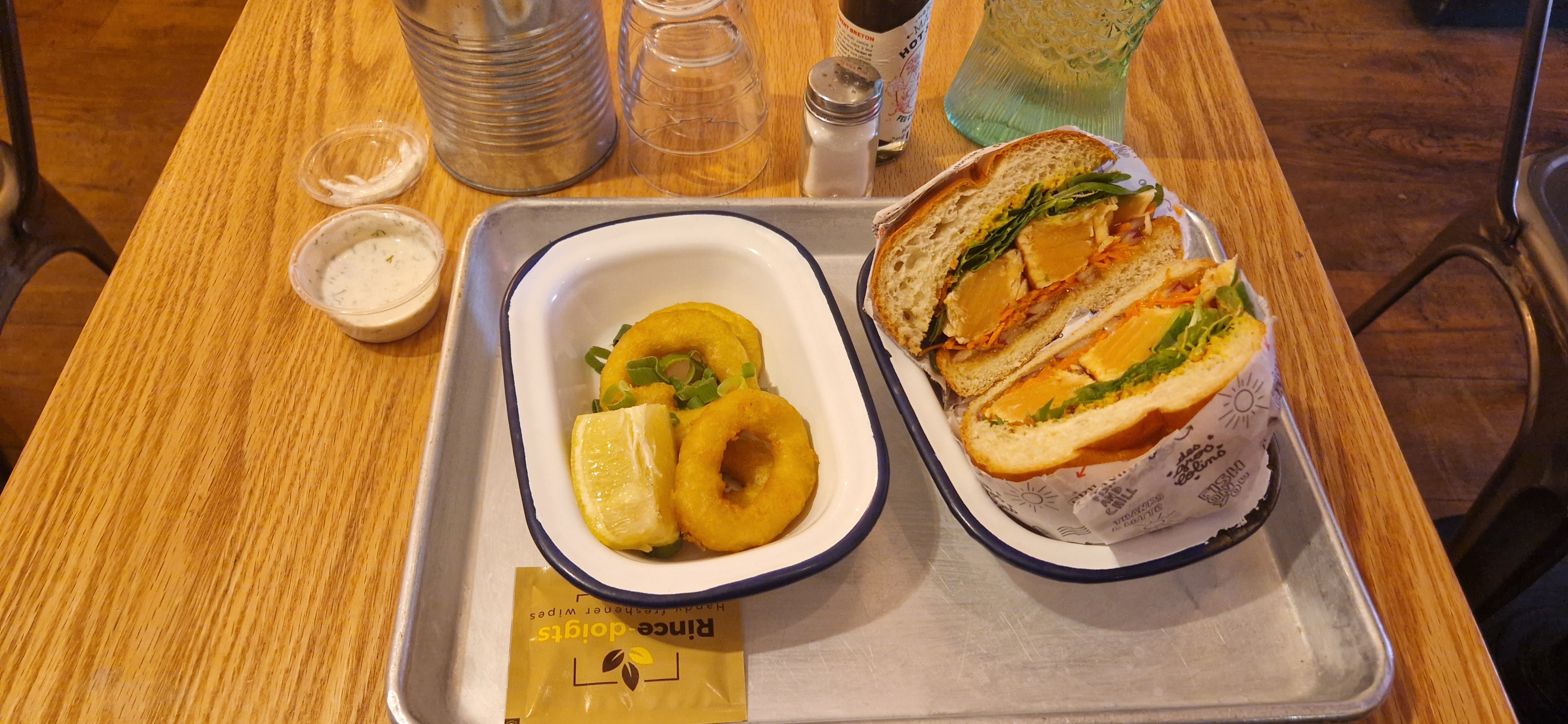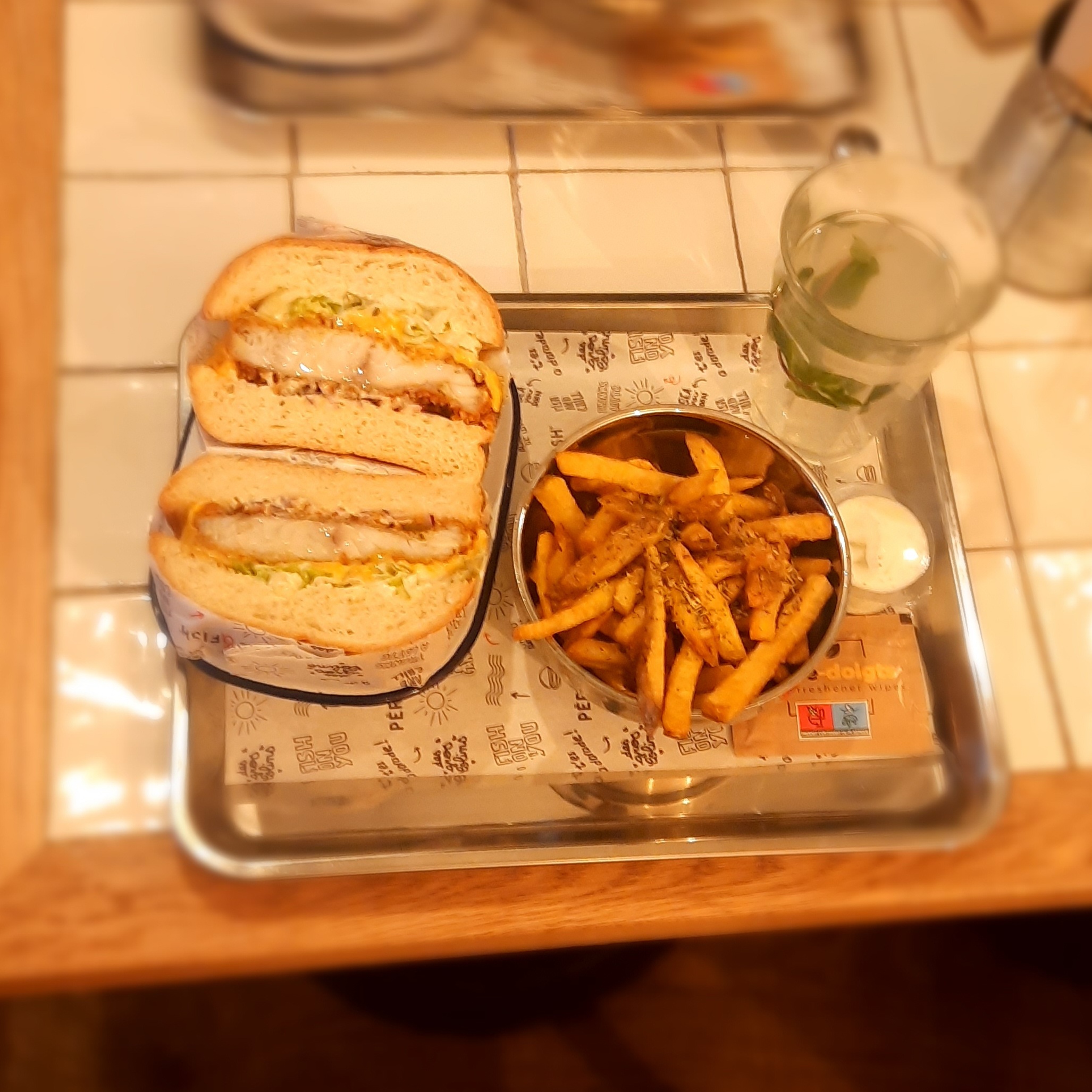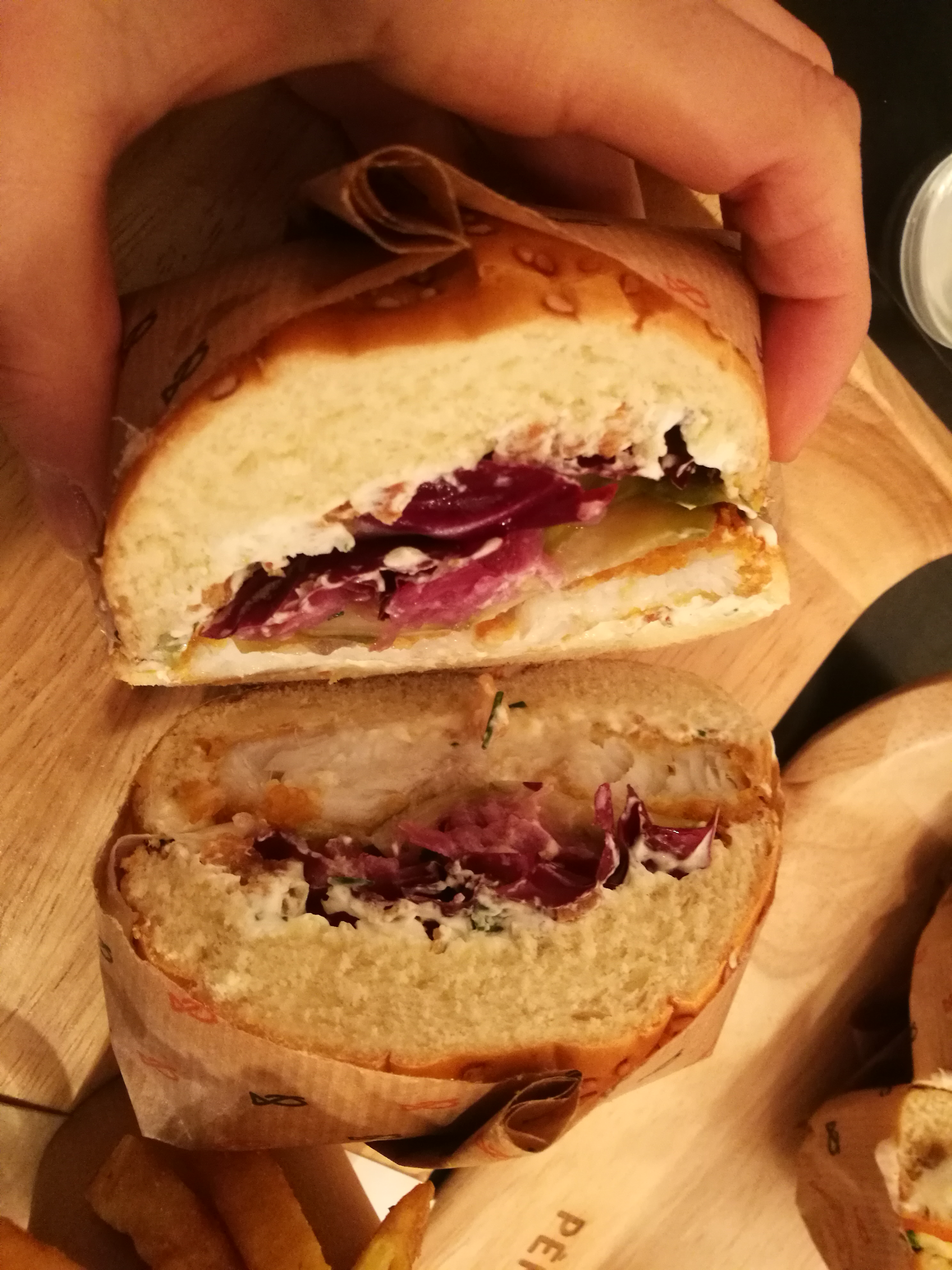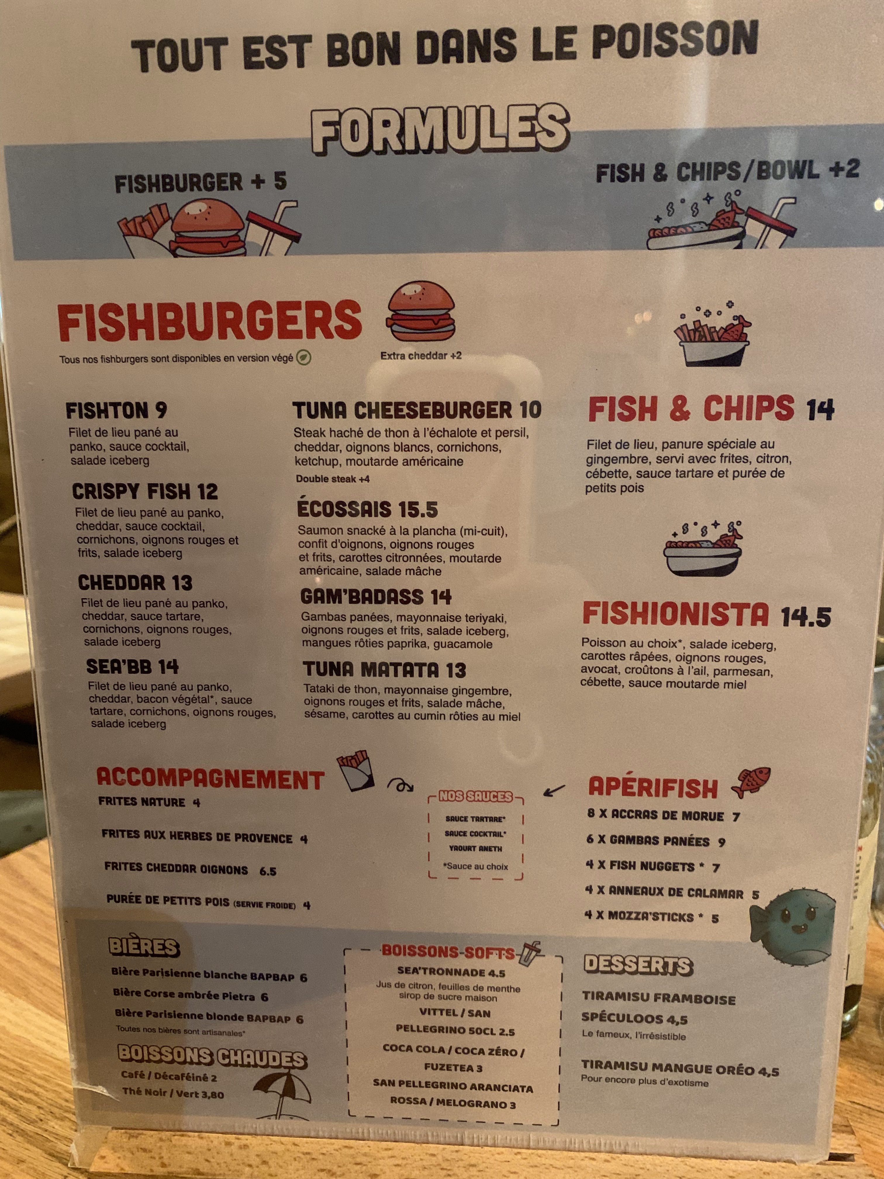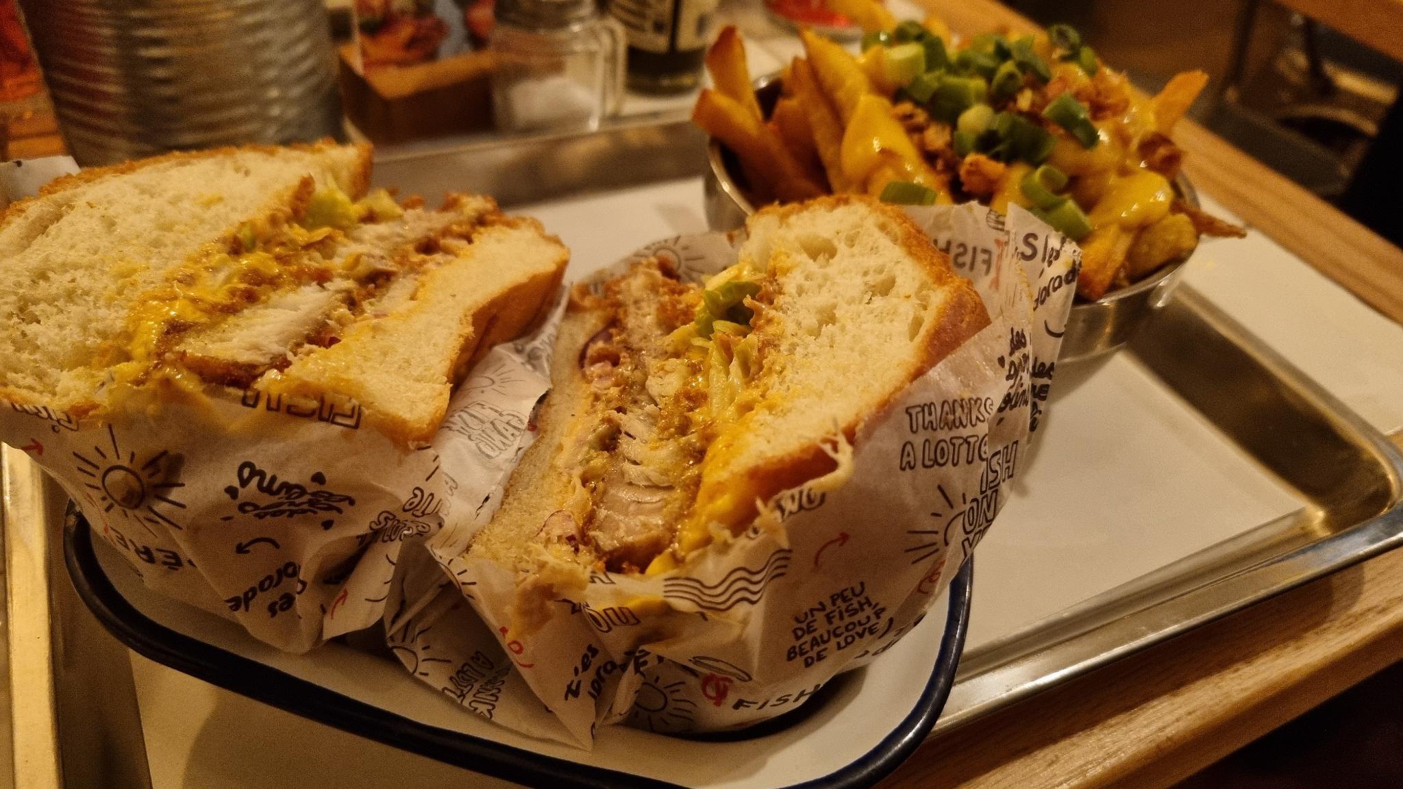 Au début quand j’ai lu que c’était que des burgers au poisson j’étais septique eh bah verdict… C’est tellement bon c’est frais on se régal l’endroit et cosy comme on aime vraiment pas déçu !!!