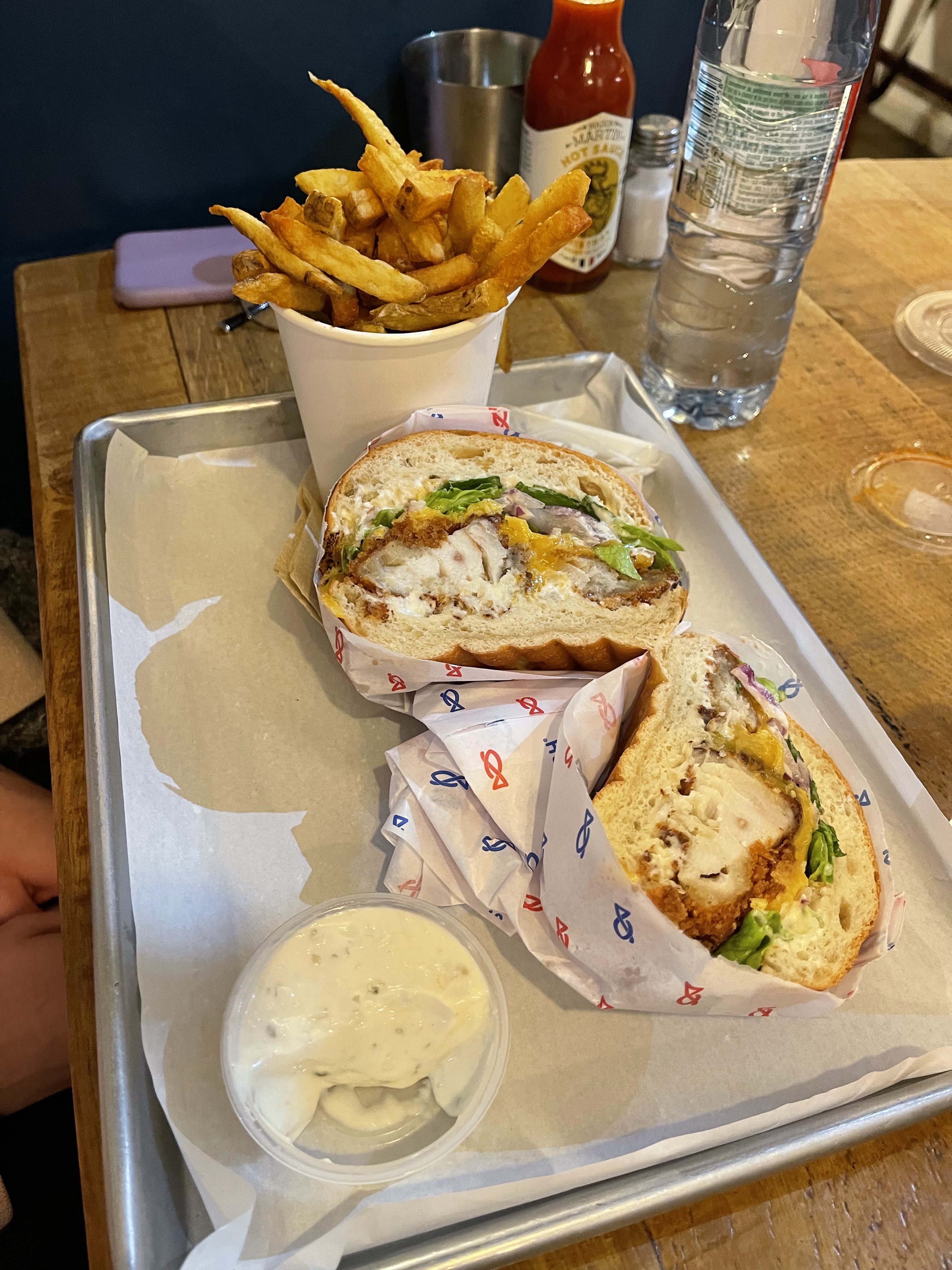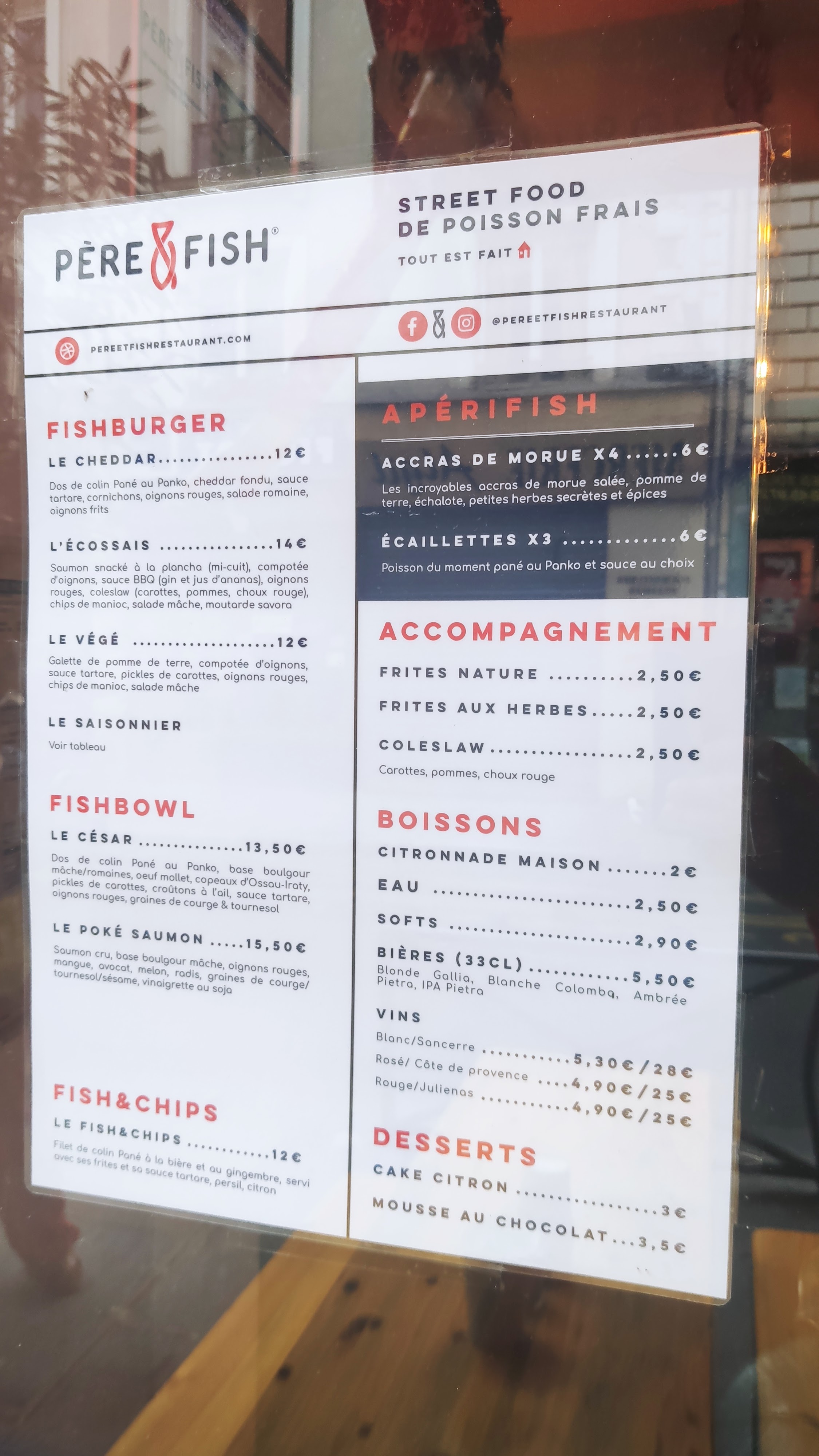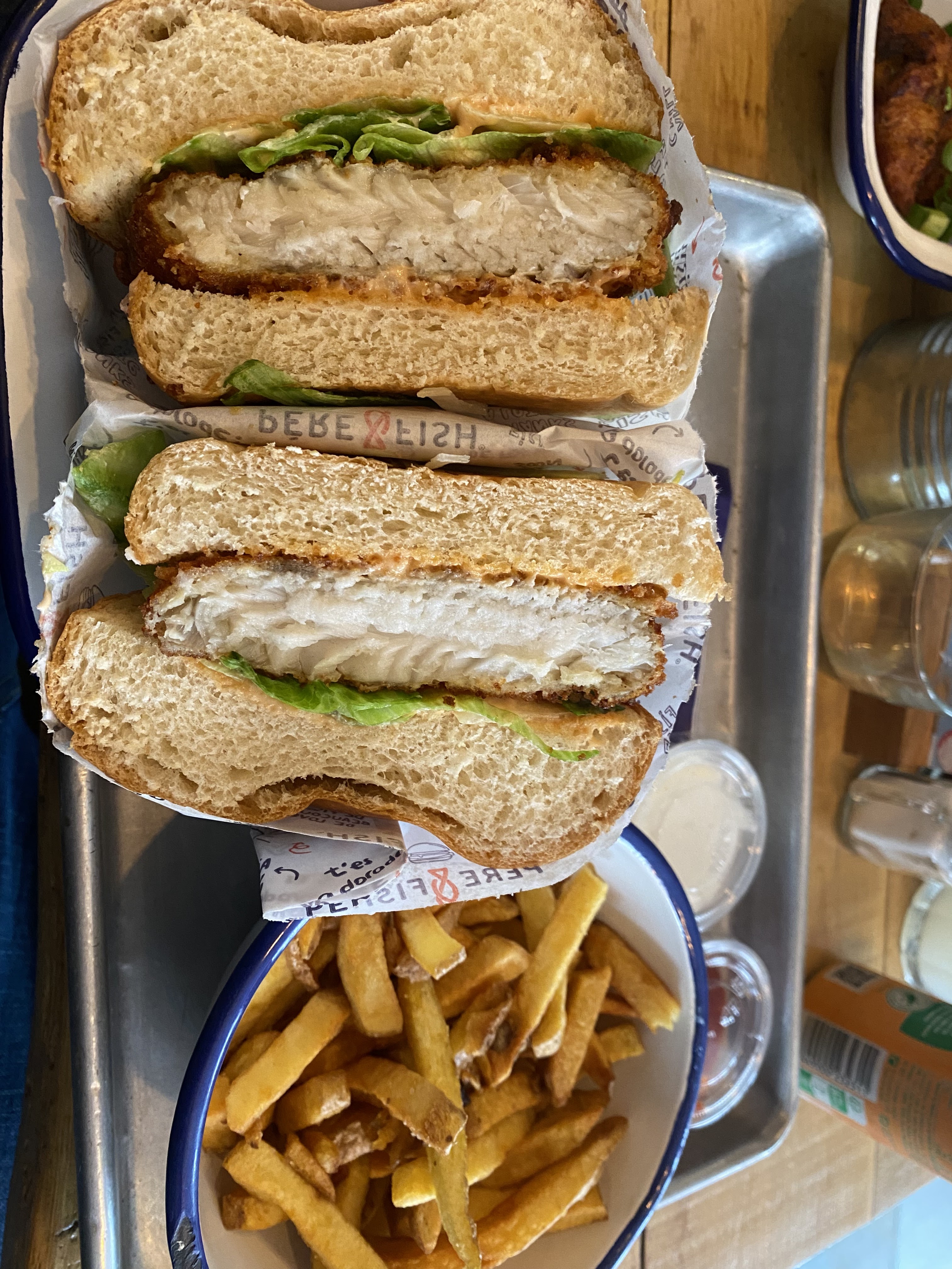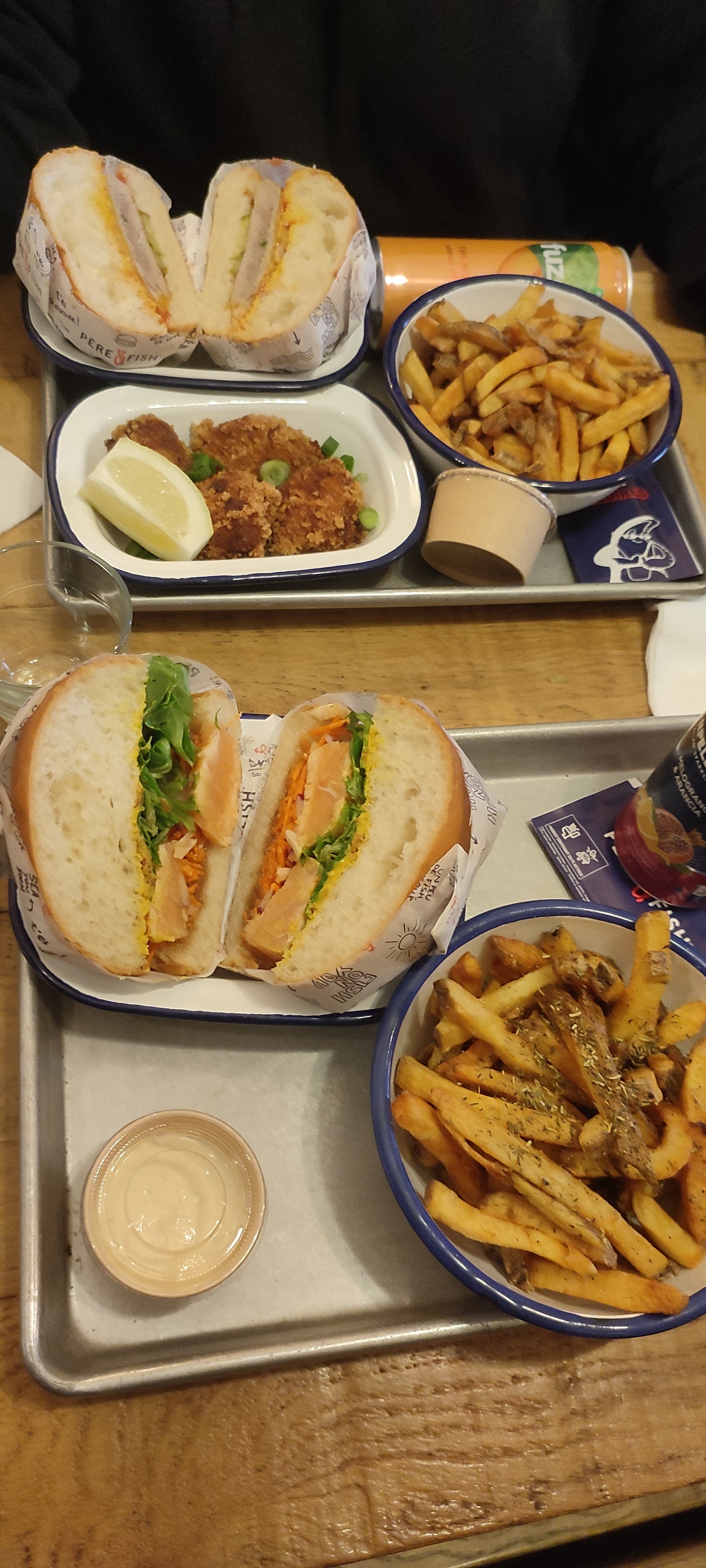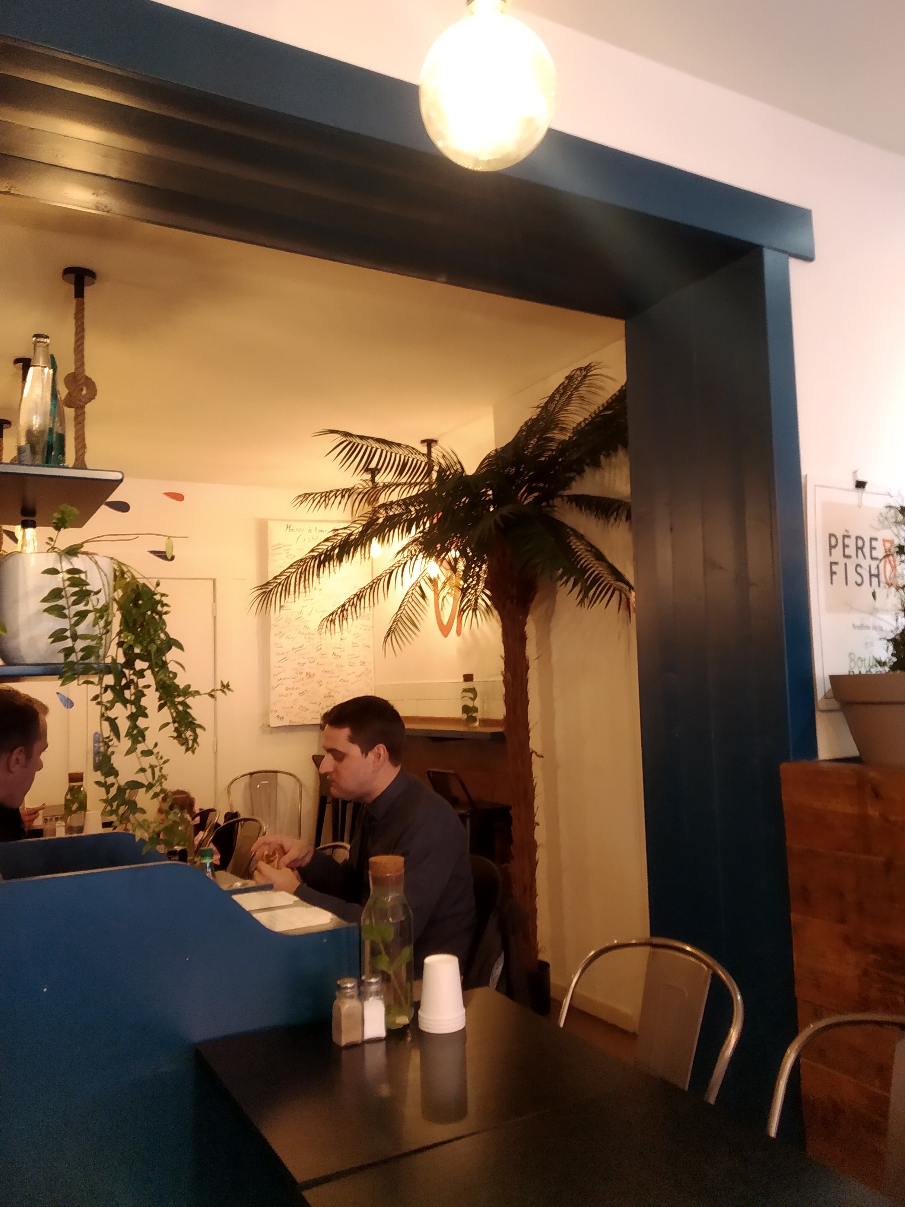 Nous suivons Père & Fish depuis longtemps et nous étions content d’aller y goûter pour la 1ere fois mais honnêtement nous avons été déçu … Les Burger poisson sont corrects mais la quantité est vraiment limitée (en 3 bouchées il n’y a plus de poisson), les accras sont trop épicées, les frites sont sèches les sauces tartares beaucoup trop acides … Nous ne reviendrons pas le rapport qualité prix est vraiment décevant