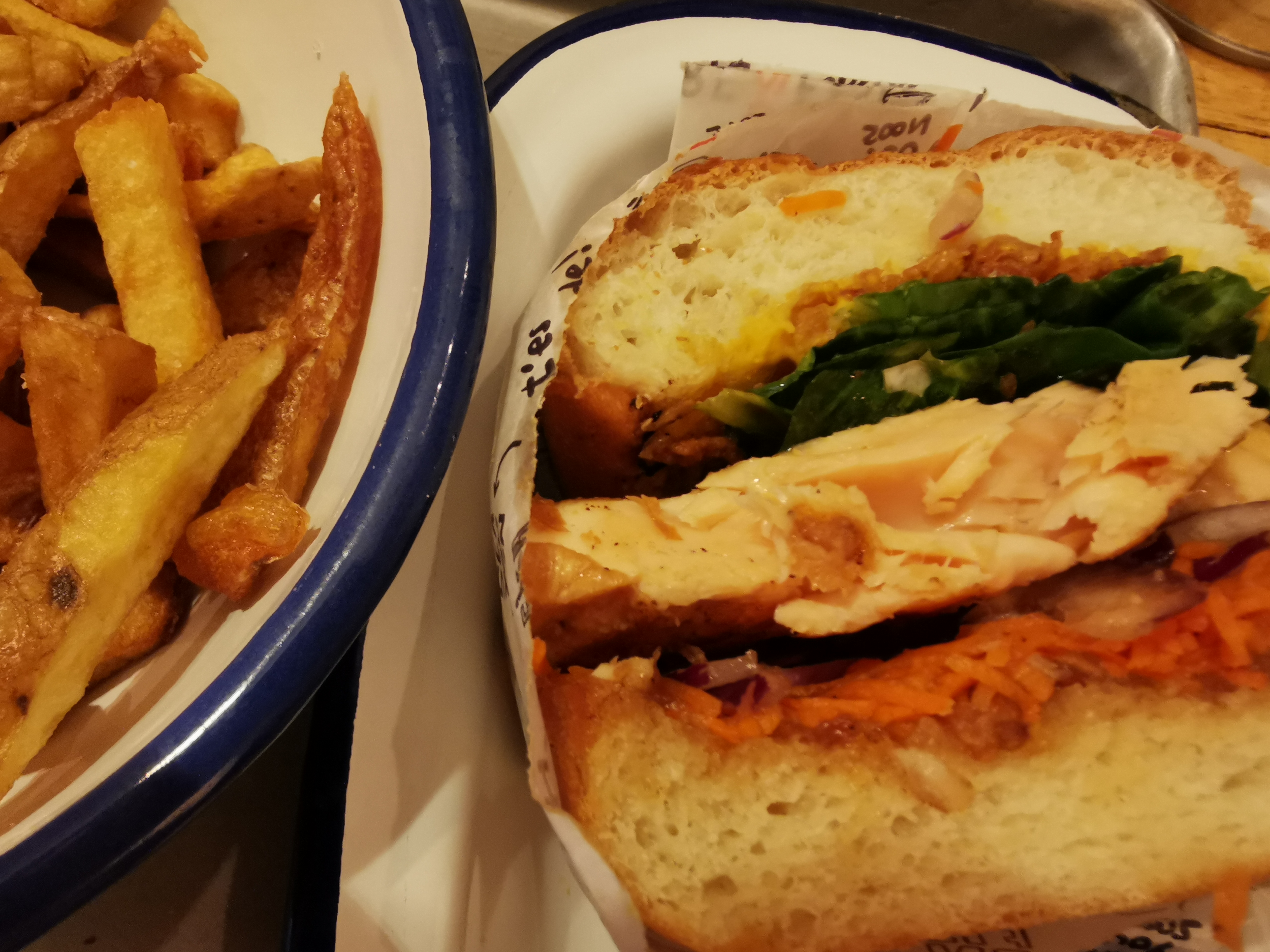 C'est très bon mais baisse de note pour les frites du fish'n'chips. On a eu droit au fond de panier, petites et ultra grasses. Au moment de payer, peut-être quelques minutes avant qu'on nous capte la personne étant subjuguée sur son portable. Je sais pas y' a quand même plein de choses à faire dans un restaurant quand on s'ennuie, comme nettoyer un peu les toilettes par exemple.