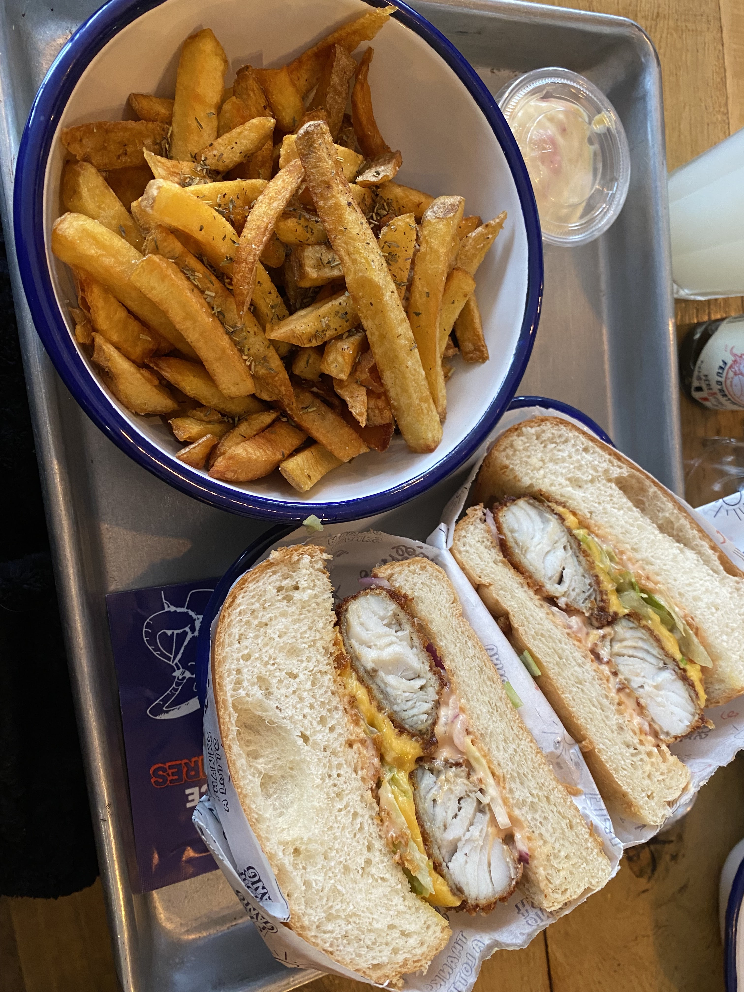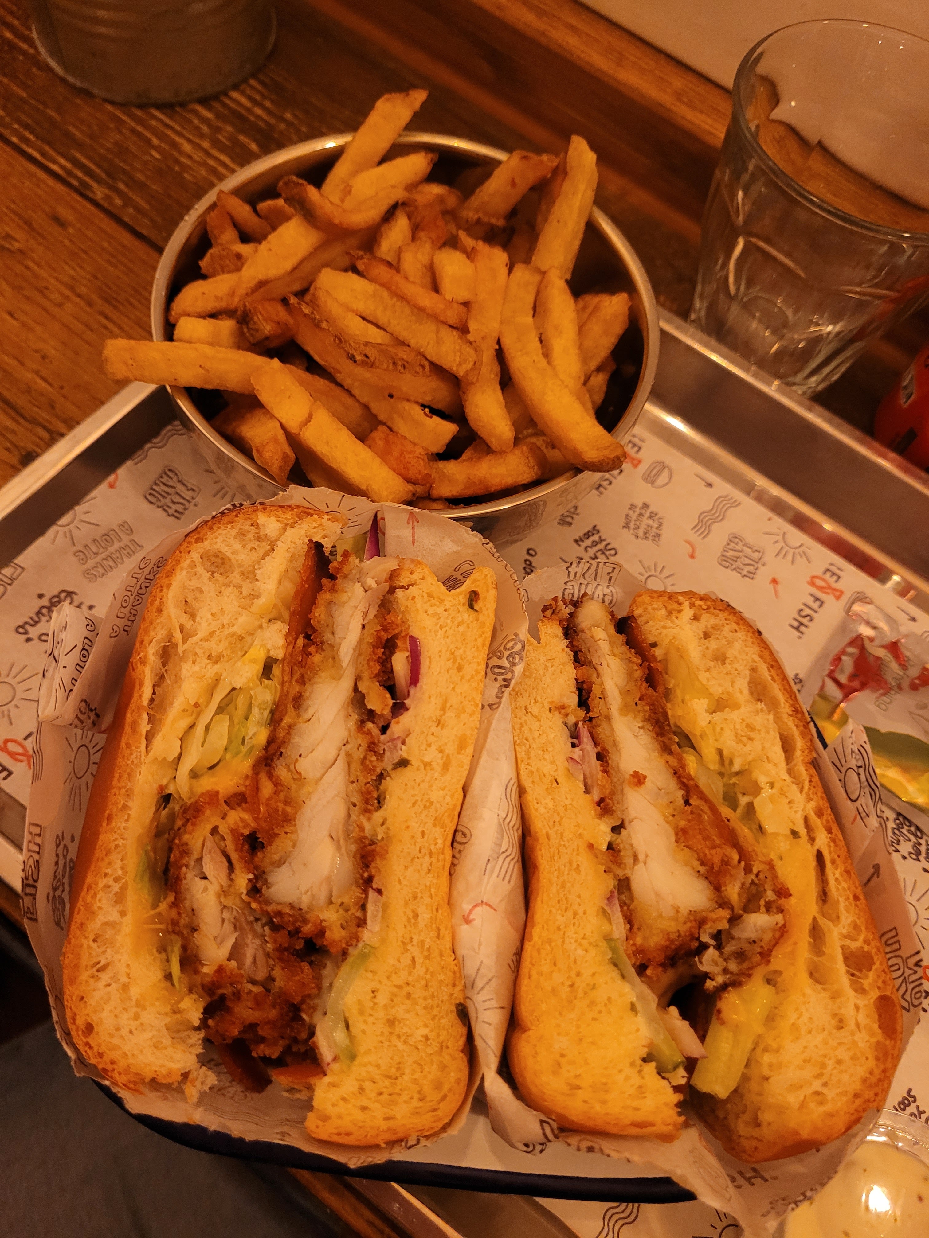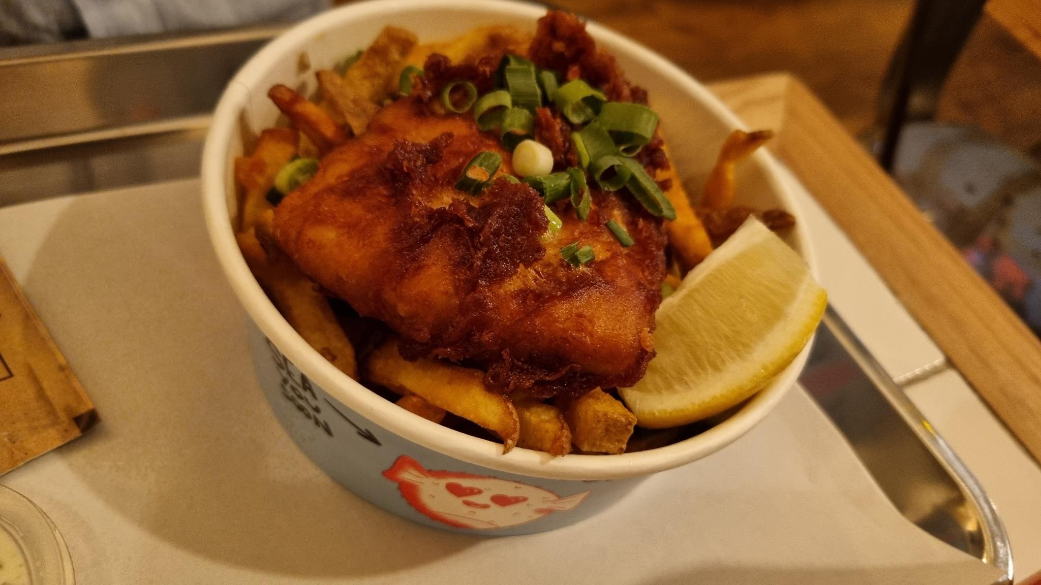 Le lieu est convivial, chaleureux. Le poisson de bonne qualité. Et puis la sauce cocktail, un banger. Je pense que j’vais repasser un jour pour bien me remplir la panse. Je recommande!