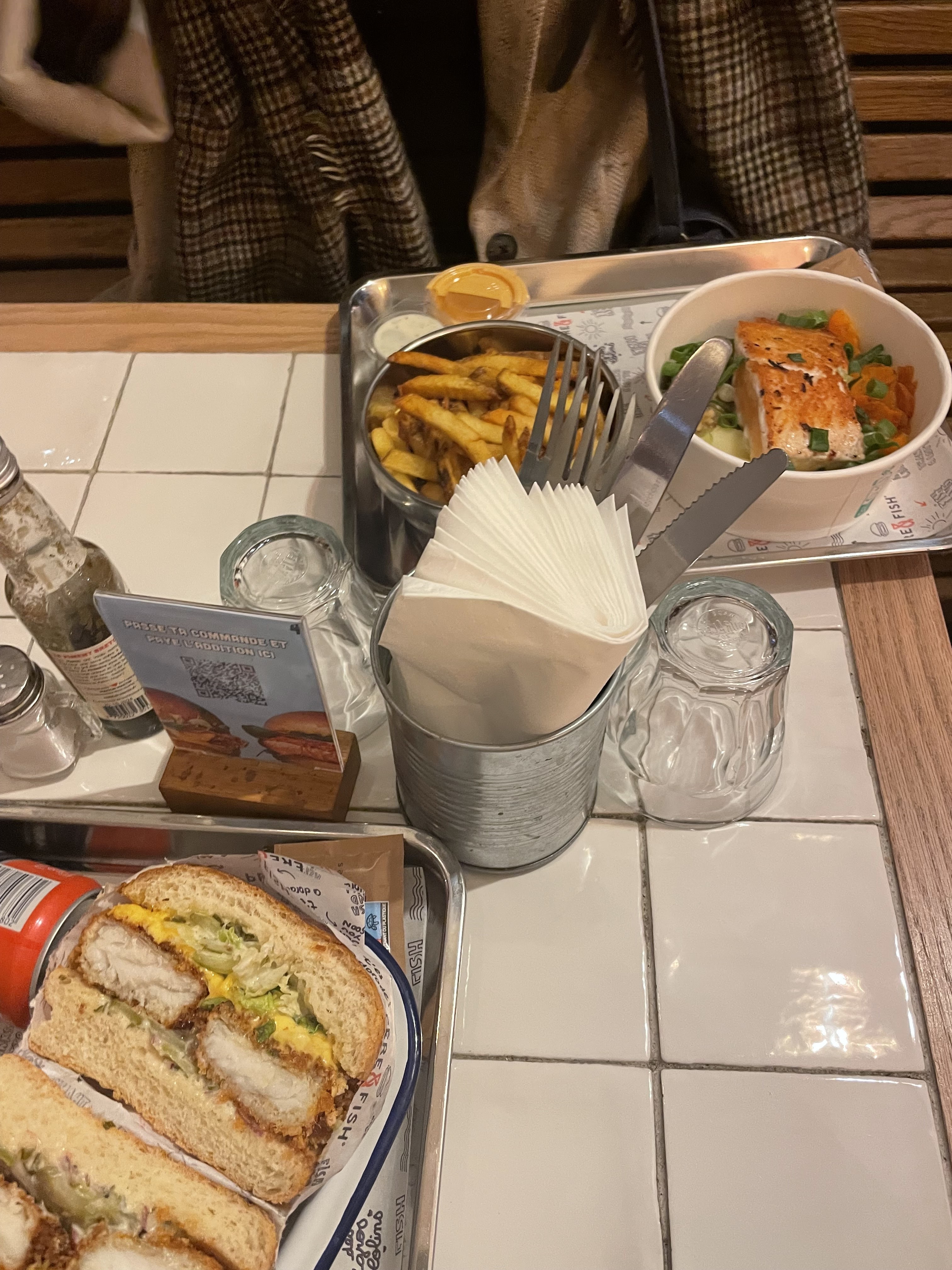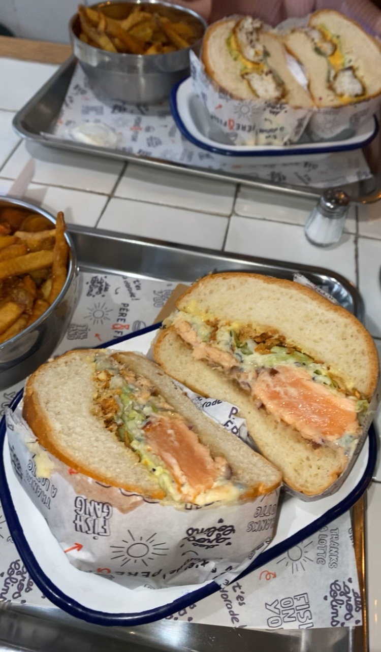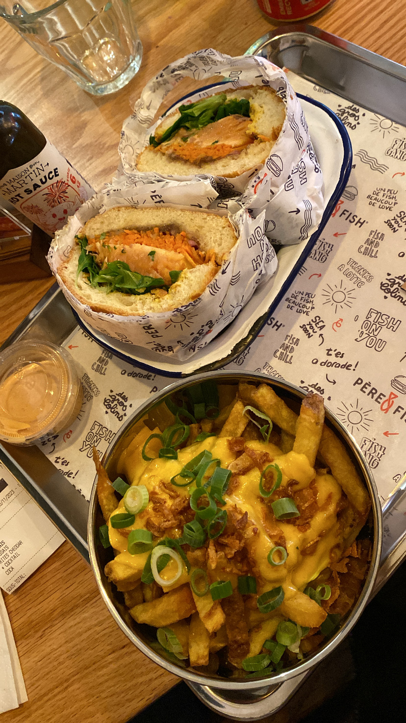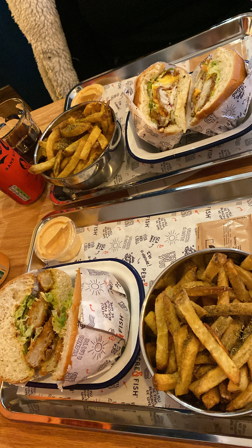 Super moment chez Père & fish, le service était très sympa et ultra rapide! Les gambas au panko hyper croustillantes et les burger super bons! La cuisson du saumon etait parfaite, les garnitures bien assaisonnées avec un petit twist d’originalité La portion de frite généreuse… un sans faute! Il manquerait juste d’enrichir un peu la carte des desserts pour les becs sucrés comme moi qui aiment finir sur une touche de gourmandise 😁