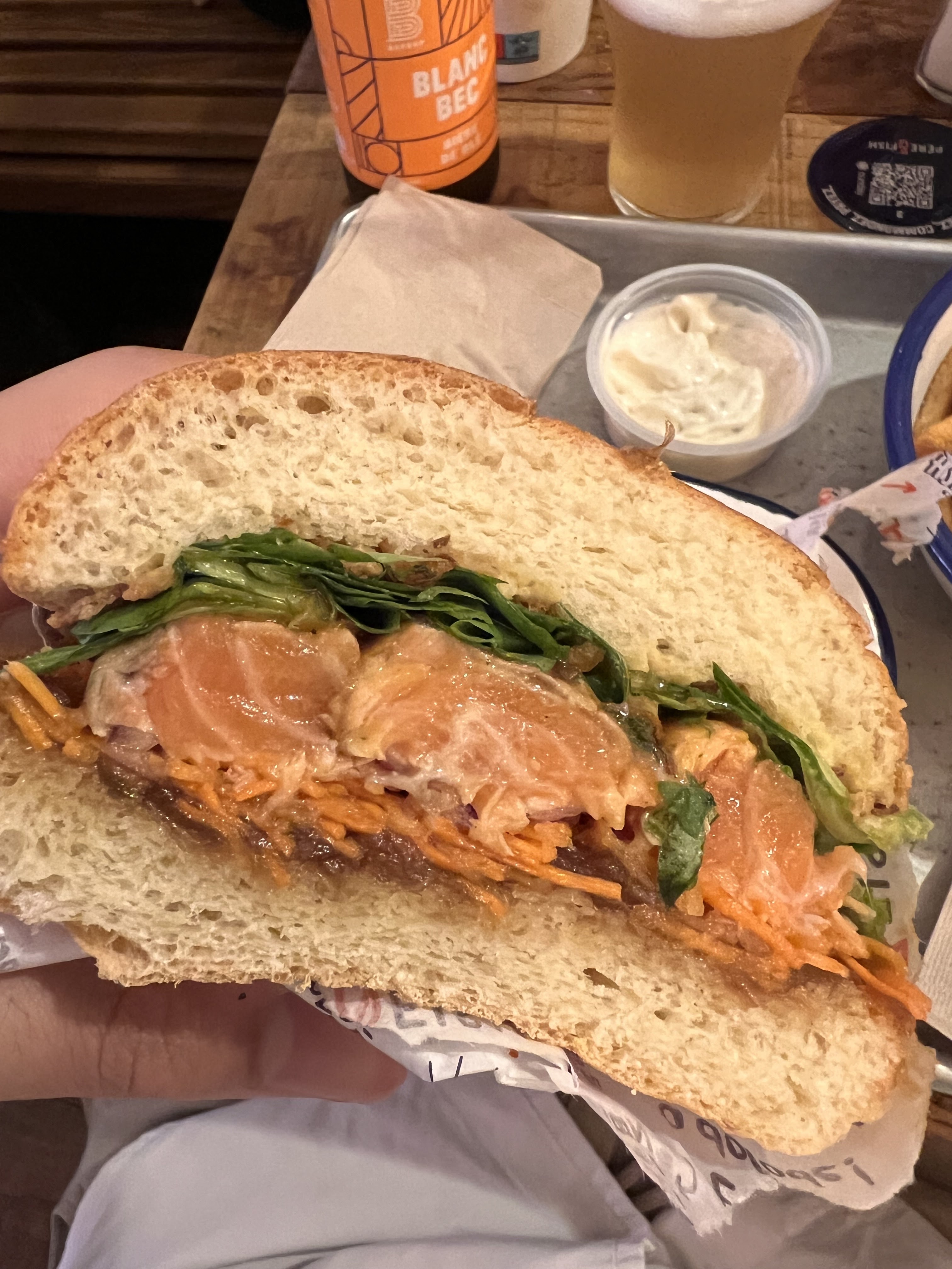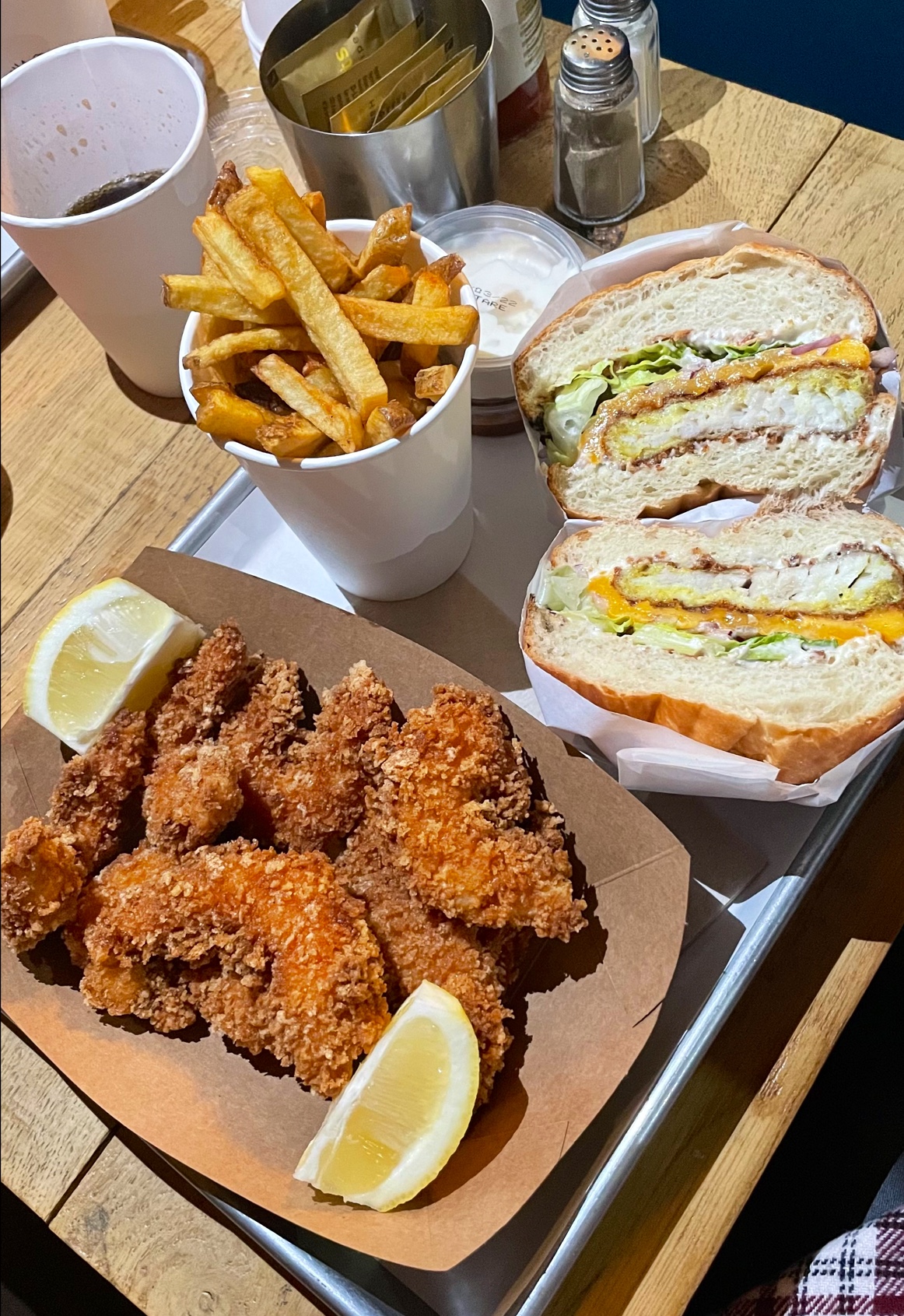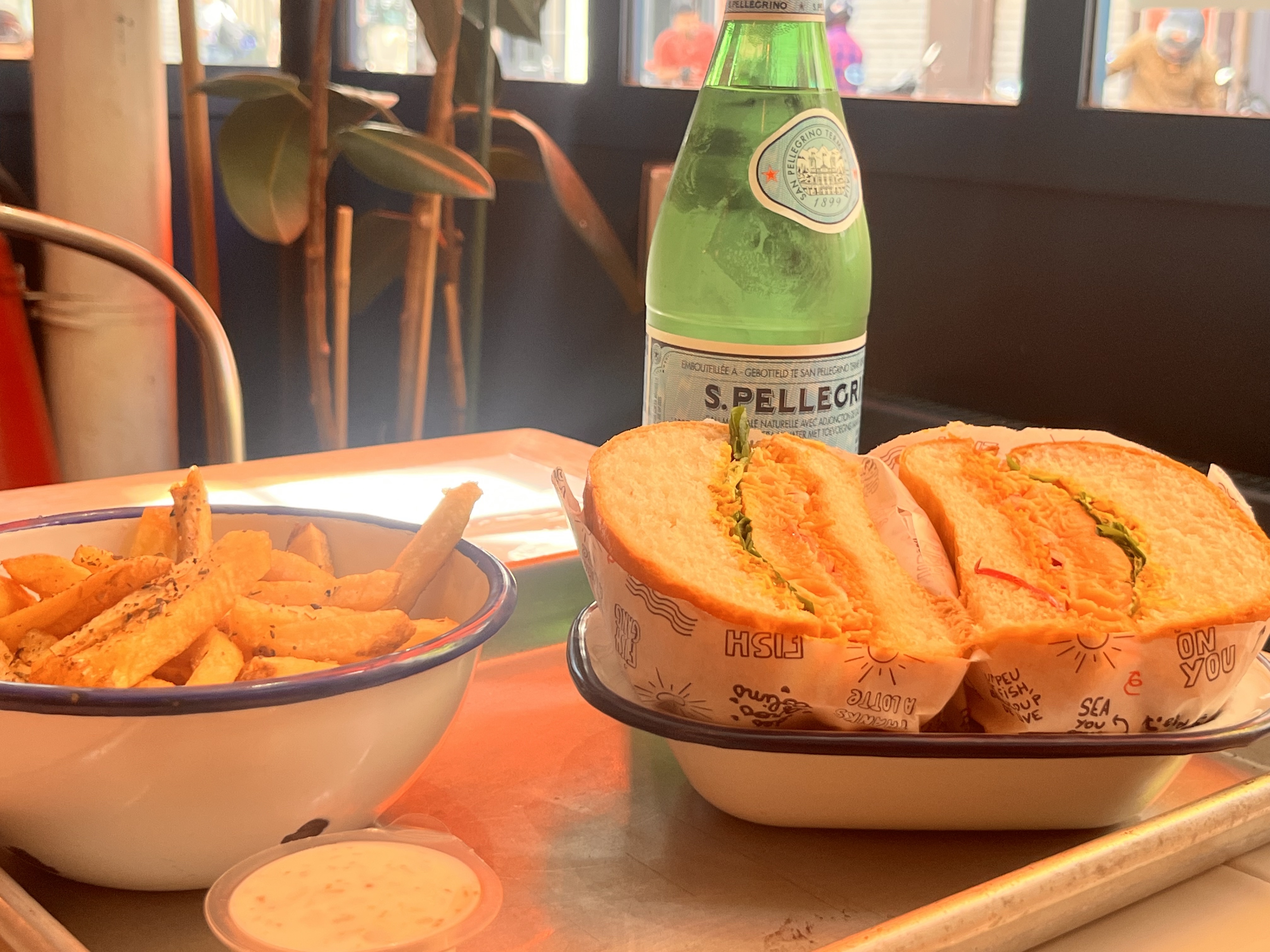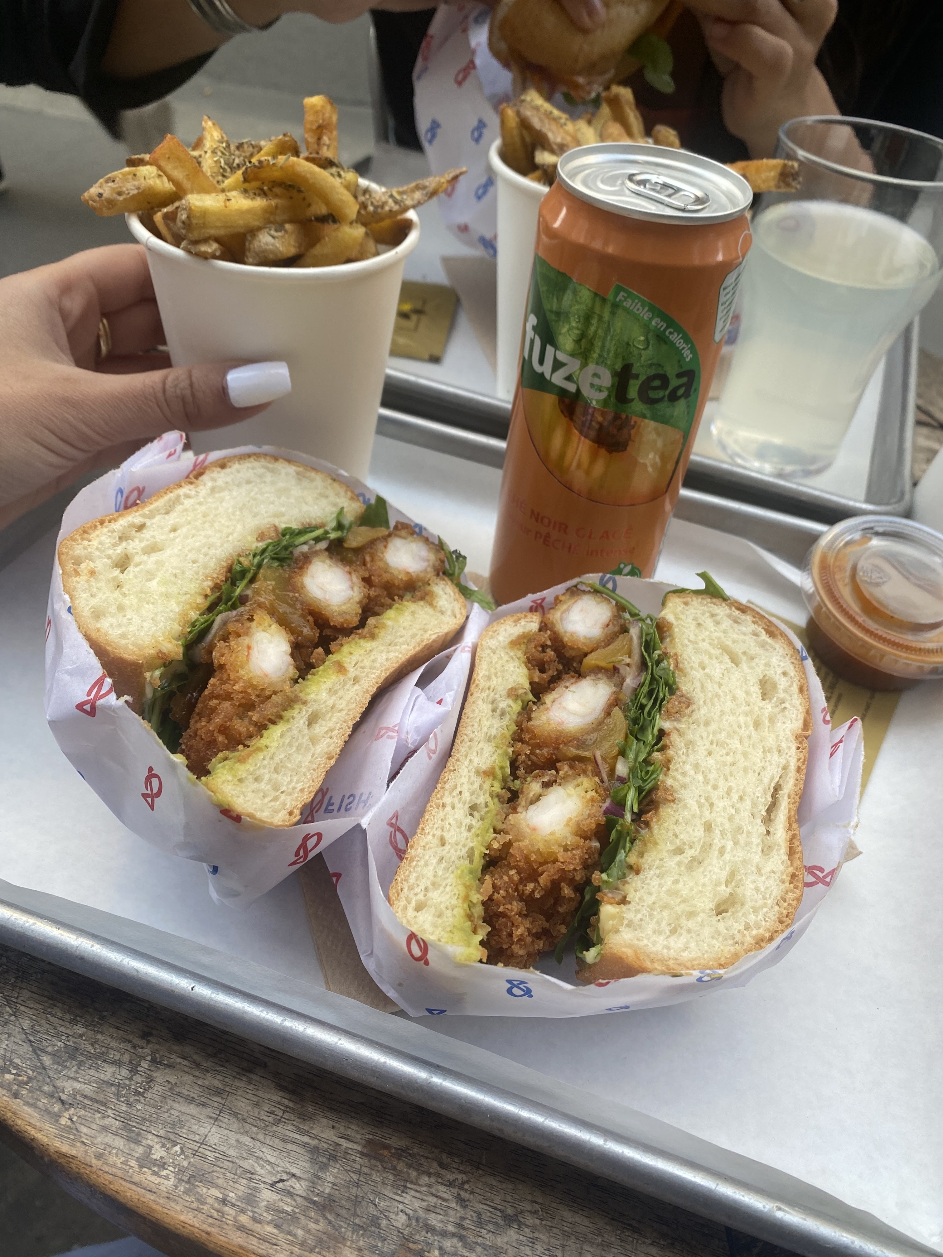 Super moment chez Père & fish, le service était très sympa et ultra rapide! Les gambas au panko hyper croustillantes et les burger super bons! La cuisson du saumon etait parfaite, les garnitures bien assaisonnées avec un petit twist d’originalité La portion de frite généreuse… un sans faute! Il manquerait juste d’enrichir un peu la carte des desserts pour les becs sucrés comme moi qui aiment finir sur une touche de gourmandise 😁