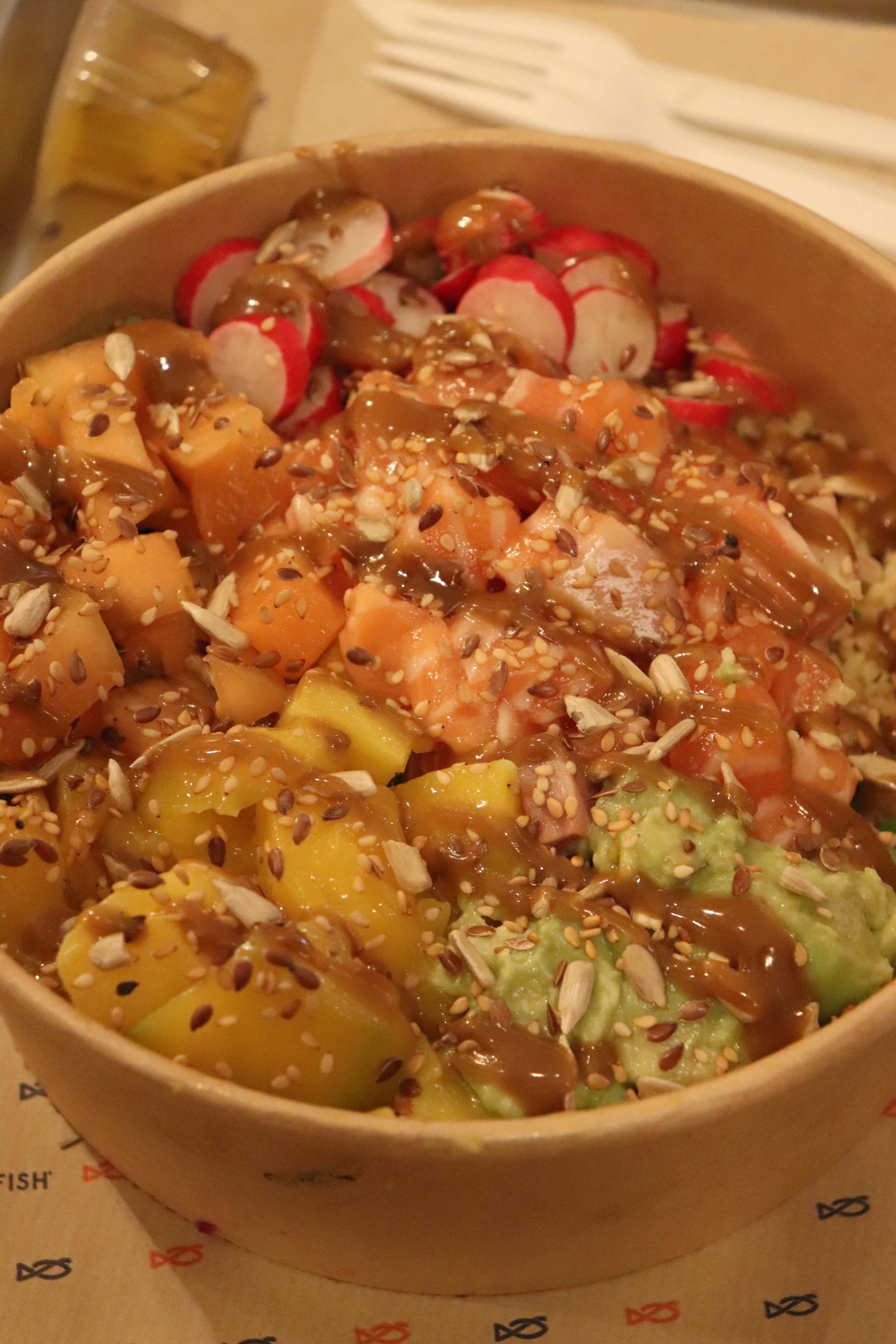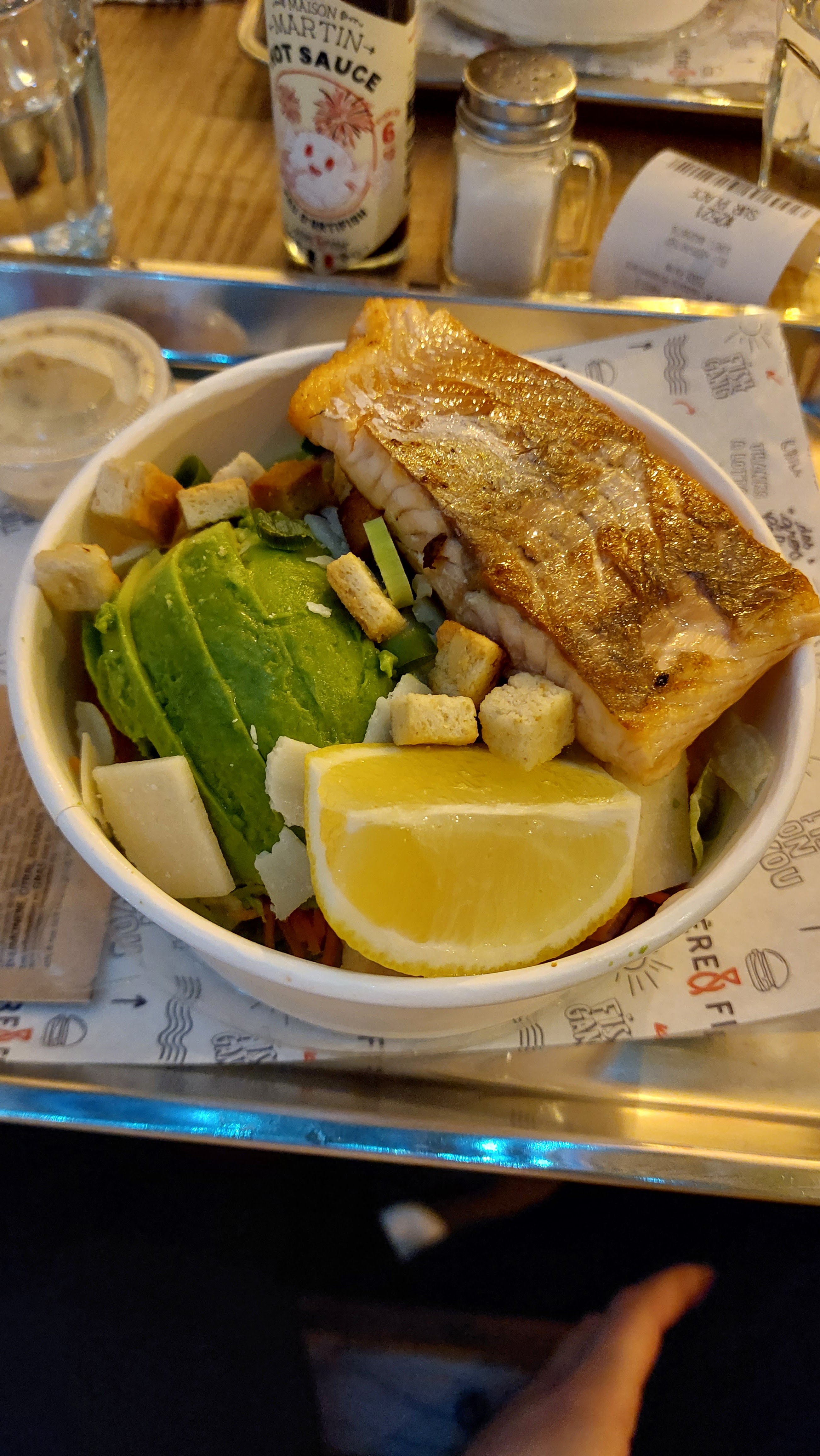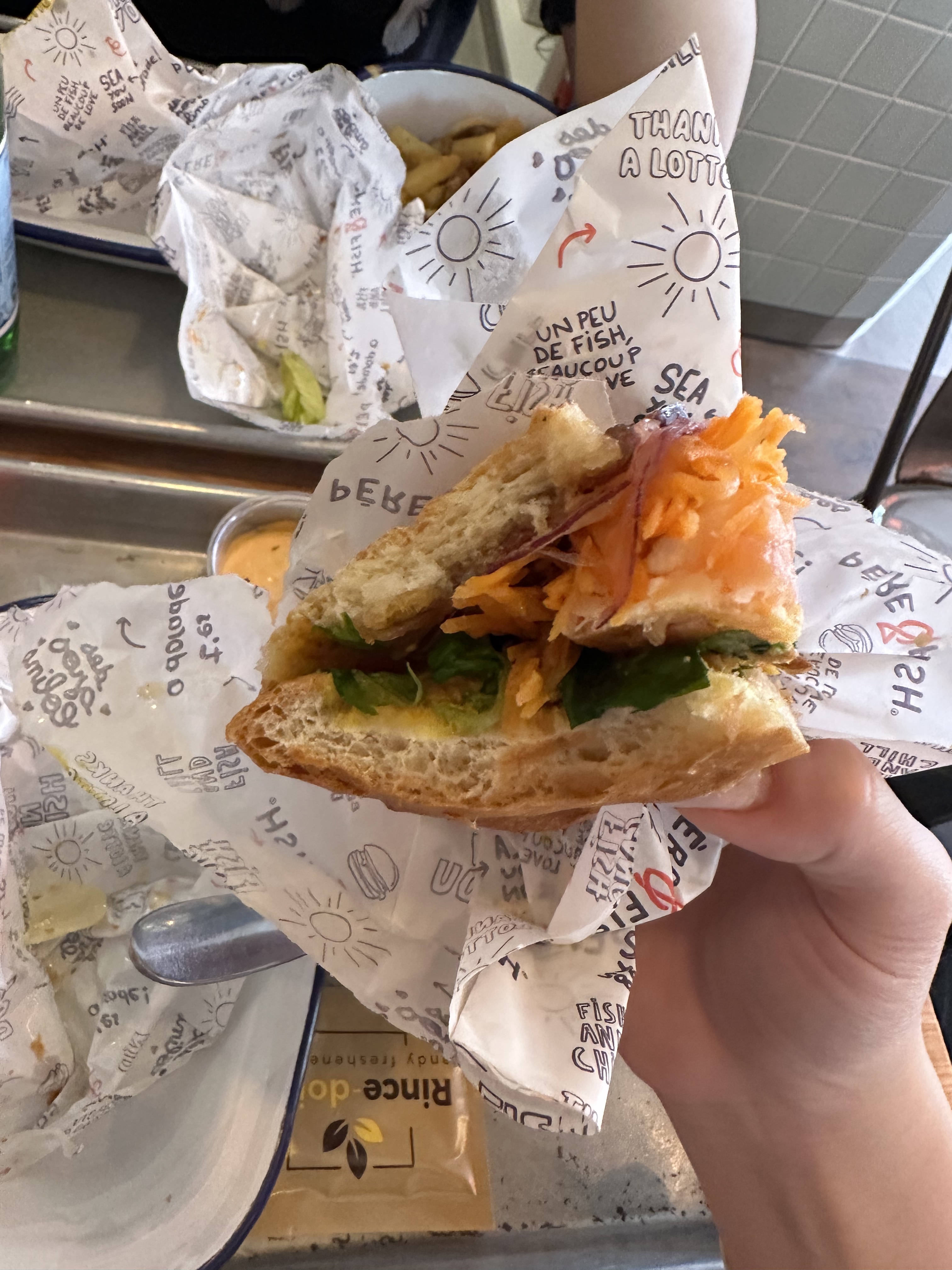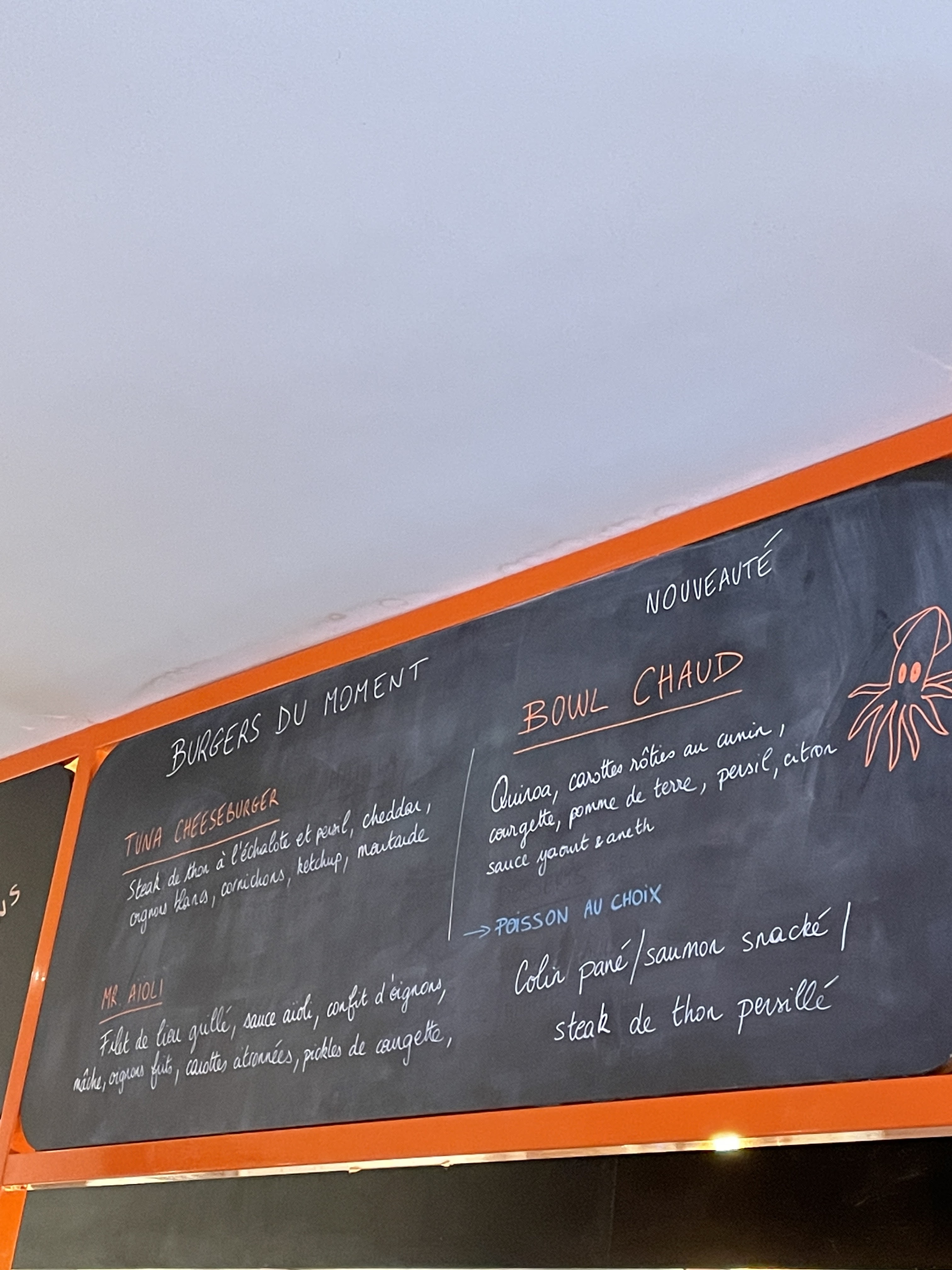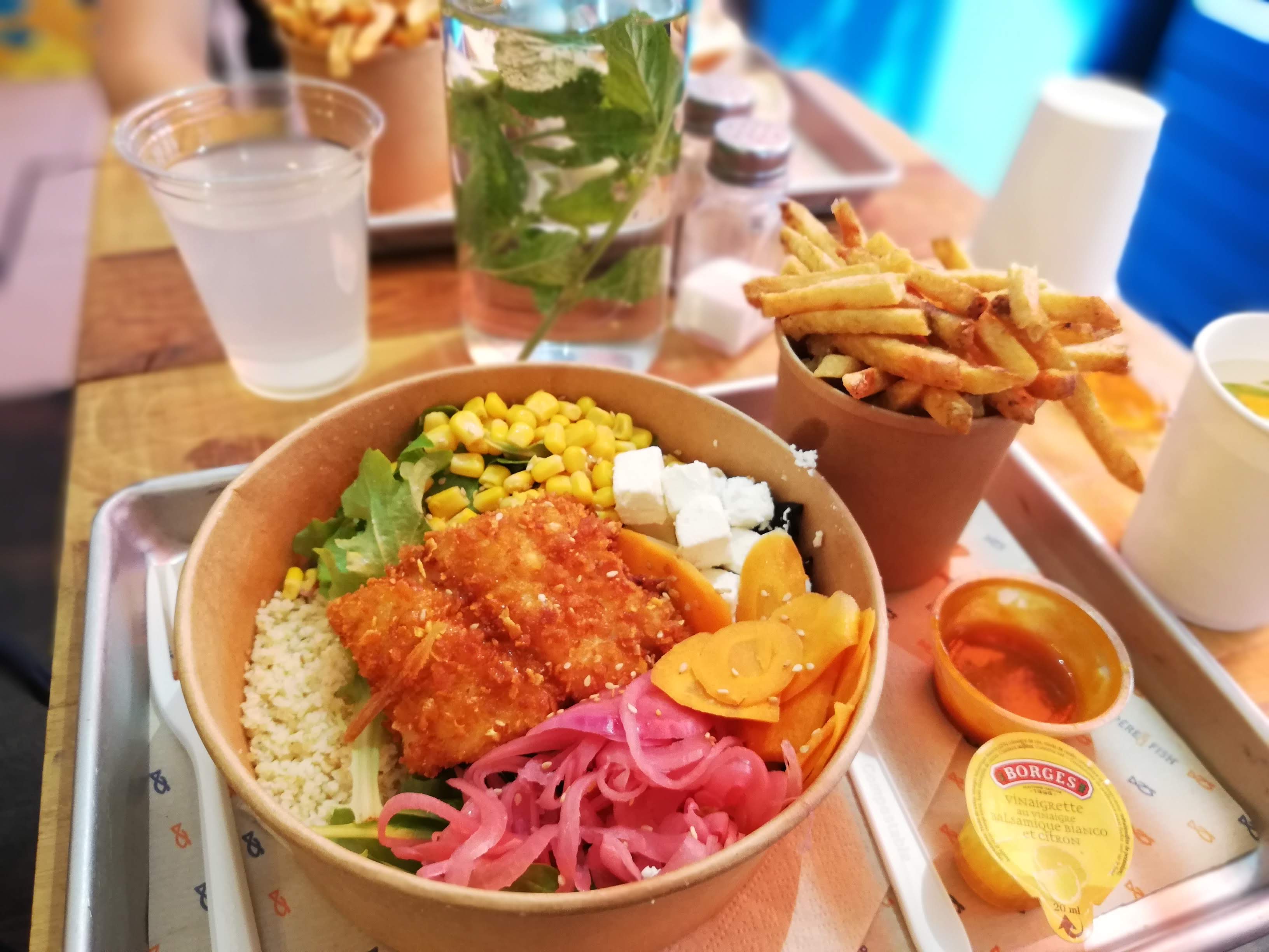 Franchement gros coup de cœur !!! Je m'attendais à un fast food amélioré mais c'est bien + que ça. Ici on fait attention à la qualité des produits (poissons extra frais) mais également aux recettes. J'ai pris un burger au saumon qui était divin !!!! J'étais également avec un ami qui a choisi un burger à base de poisson blanc qui était vraiment délicieux !! Ils proposent également des salades et poké bowls. Je recommande les yeux fermés