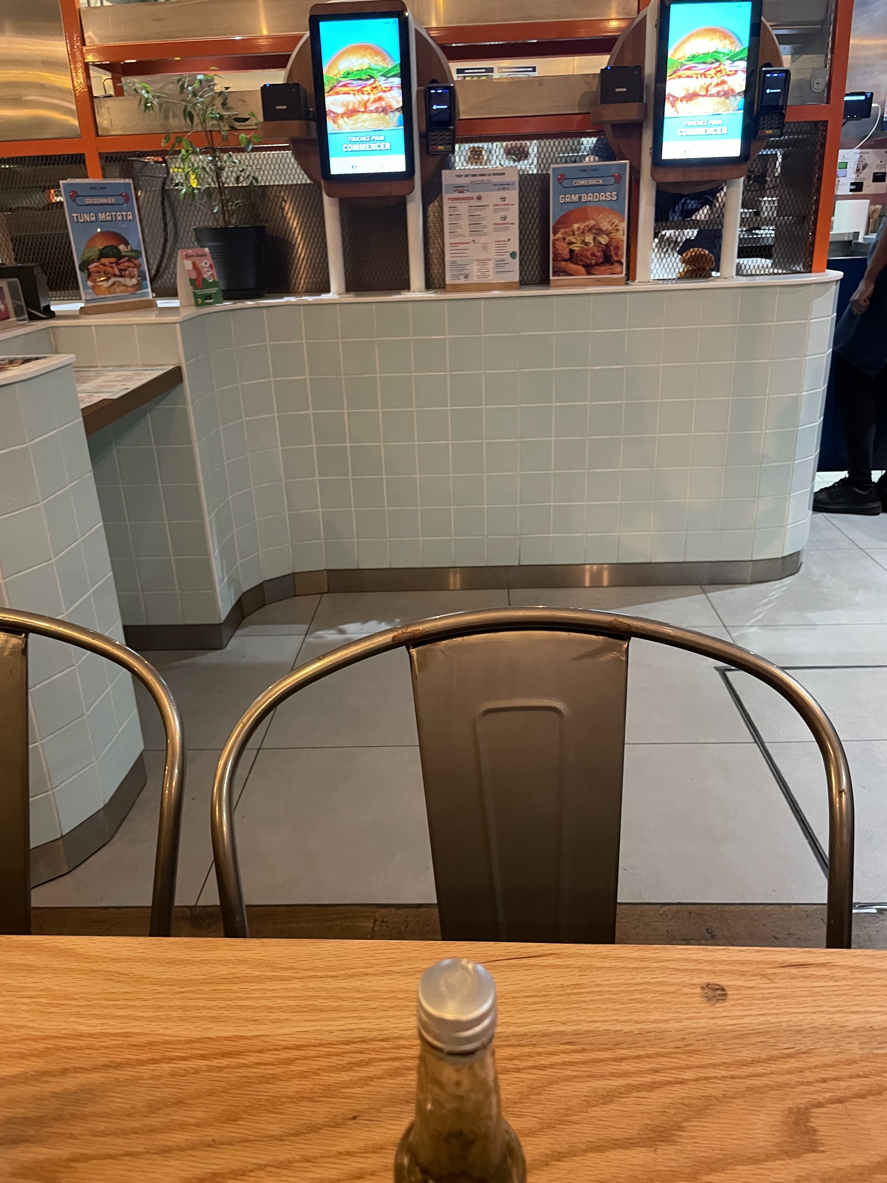 Service rapide grâce aux système de bornes très efficace. Les gambas panées du Gam’badass sont bien croustillantes et les garnitures du burgers très bonnes, surtout la mangue épicée. Bon rapport qualité prix.