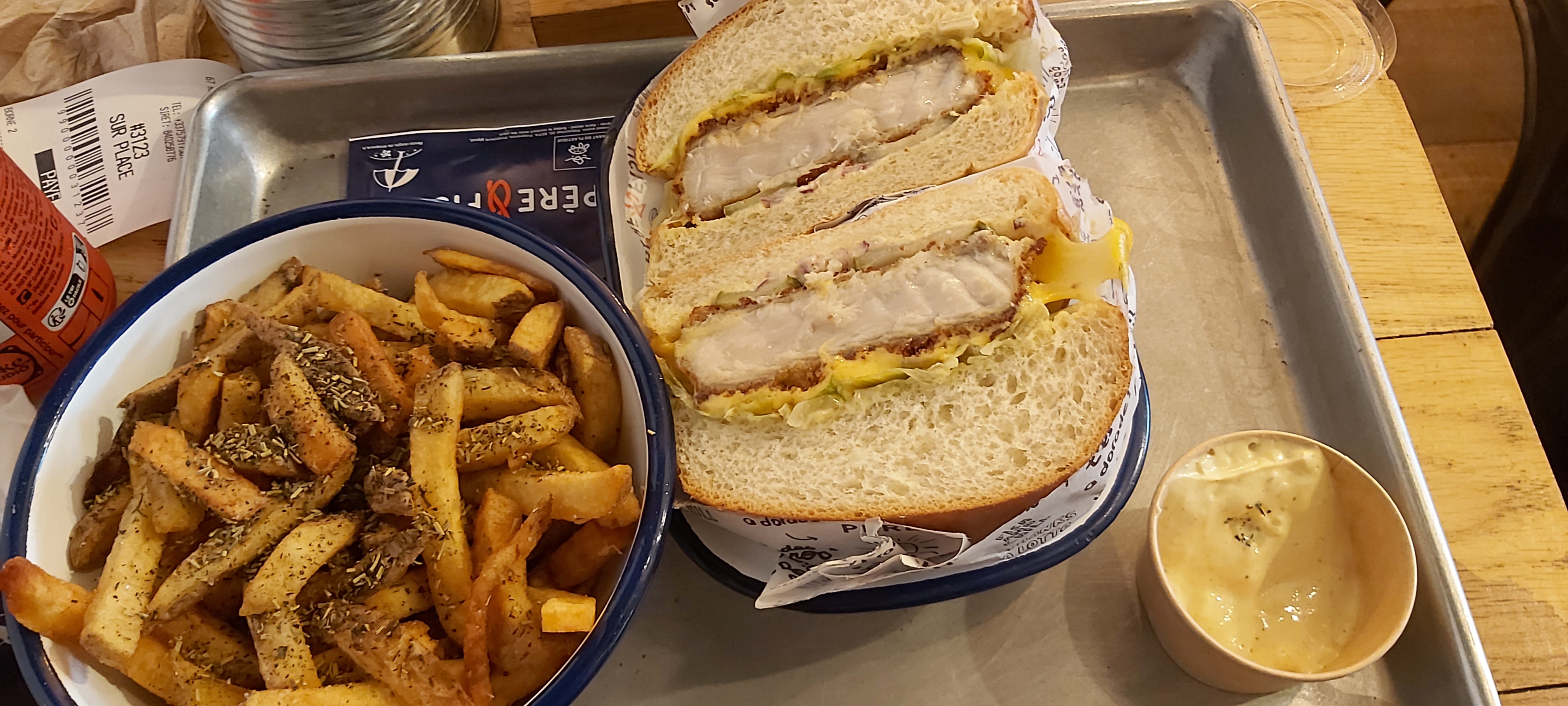Super expérience à Père & Fish, j'ai mangé un burger et des nuggets de poissons. C'était un régal. J'ai aussi adoré le thé glacé maison pas trop sucré et le cheese cake YUMMY