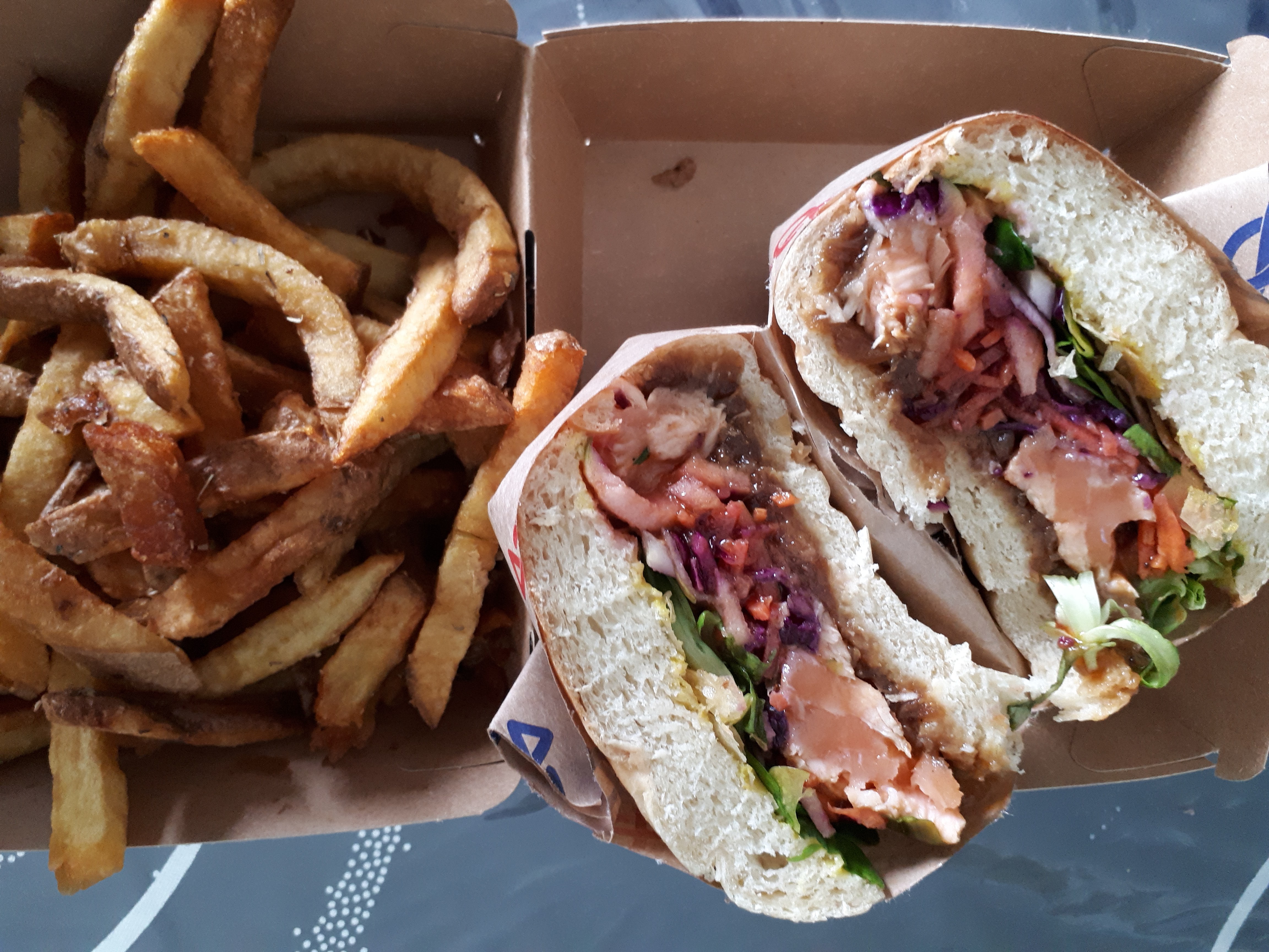 C'est pas première fois que nous achetions dans cette enseigner jamais déçue pour les bugers poissons, poké bowl, frite maison ,limonade aussi ,produits frais et de qualités ,juste les frites maison de cette fois ci pas comme d'habitude(un peu déçue pour ça,trop cuit limité cramé)mais je vous recommande vivement quand même cette établissement pour manger du bon burgers poissons 🙂👍.