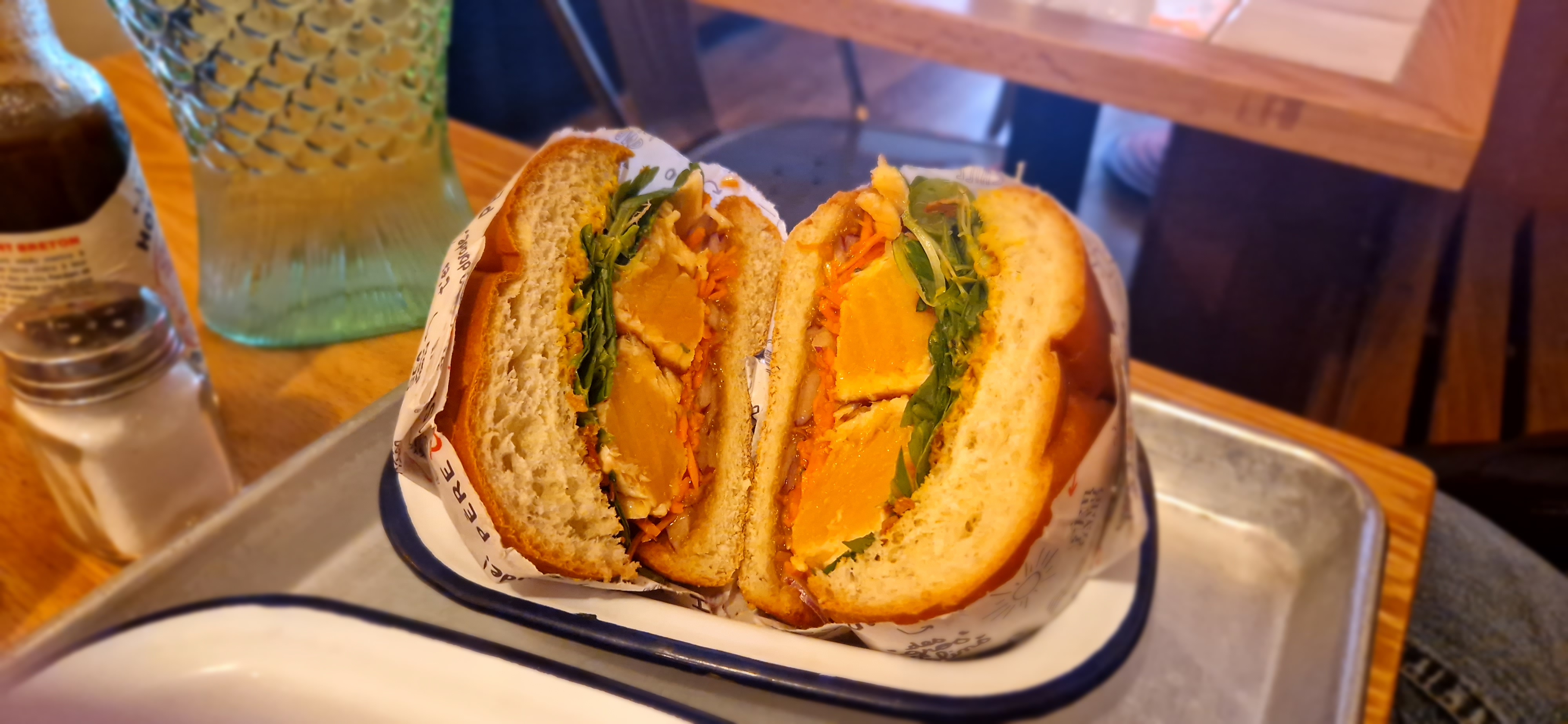 Accueil vraiment charmant chez Père & Fish ce qui ajoute un supplément d’âme inattendu pour des burgers de poisson vraiment excellents. La fraîcheur est garantie et le choix suffisamment étendu pour qu’on y revienne assez souvent