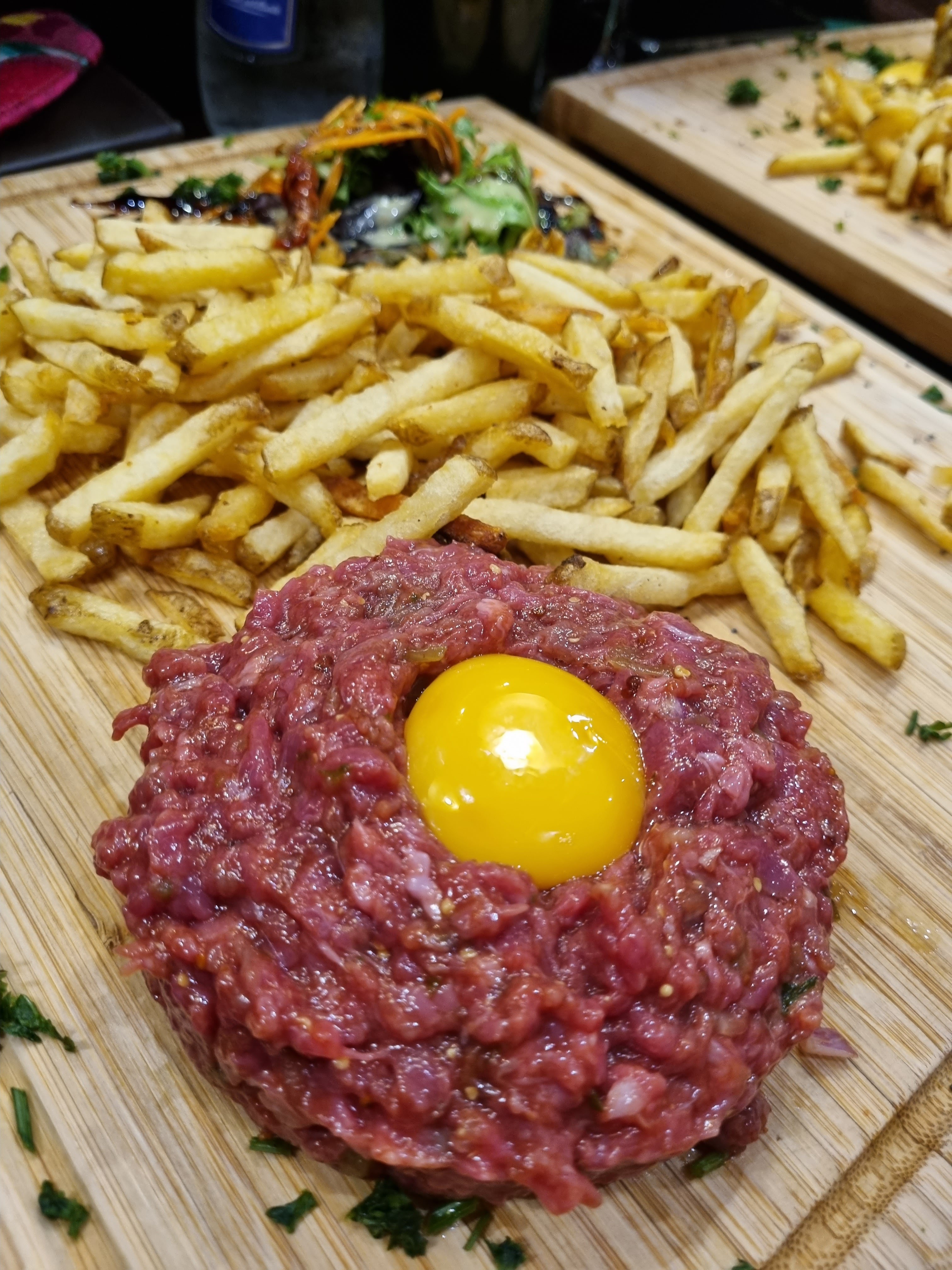 J’adore l’endroit parfait personnel agréable et j’ai adoré le tartare de bœuf le meilleure tartare de bœuf que j’ai mangé avec leur sauce, accompagné de cocktail maison sans alcool un délice! Je recommande mais juste mieux faut réserve pour être sûr d’avoir une table. Merci beaucoup pour ce délicieux 🤤 tartare de bœuf ❤️