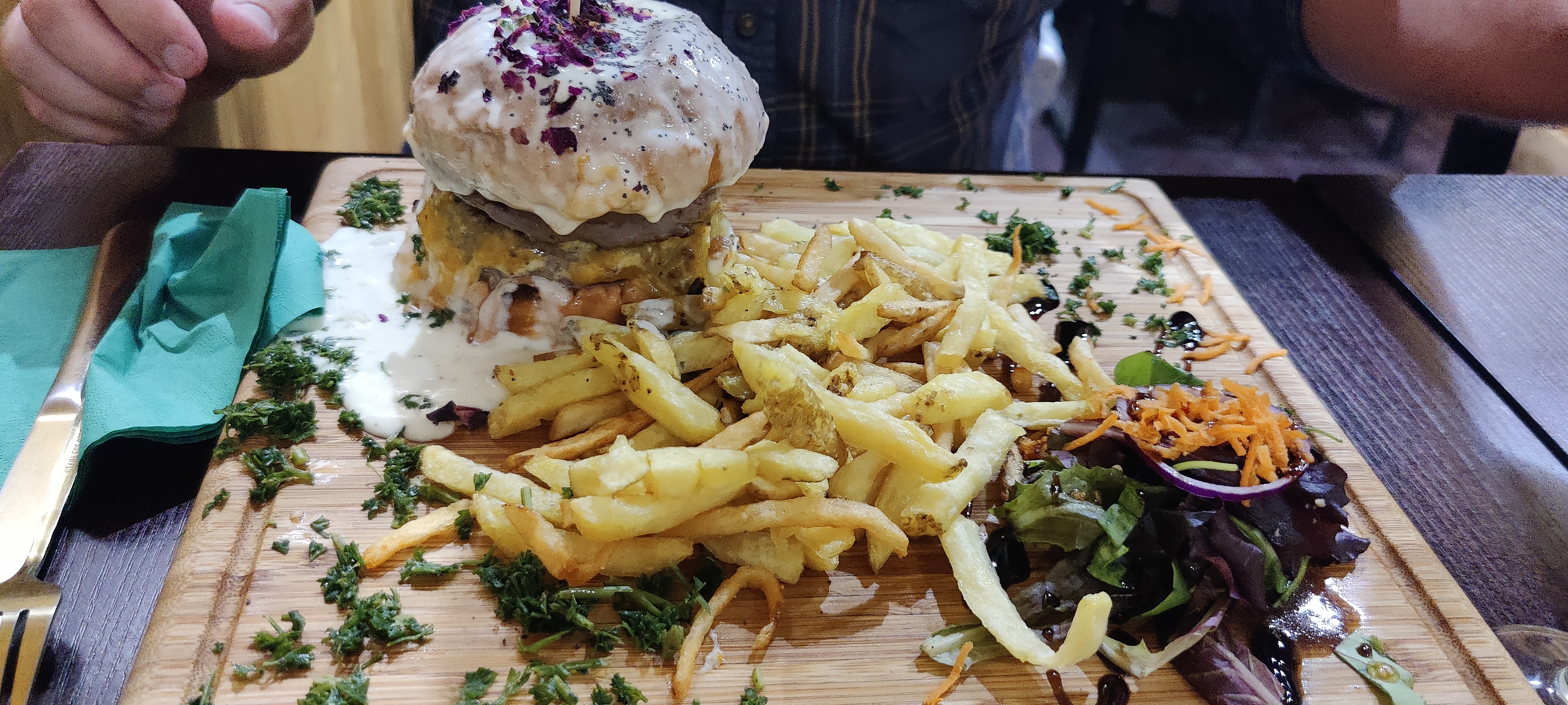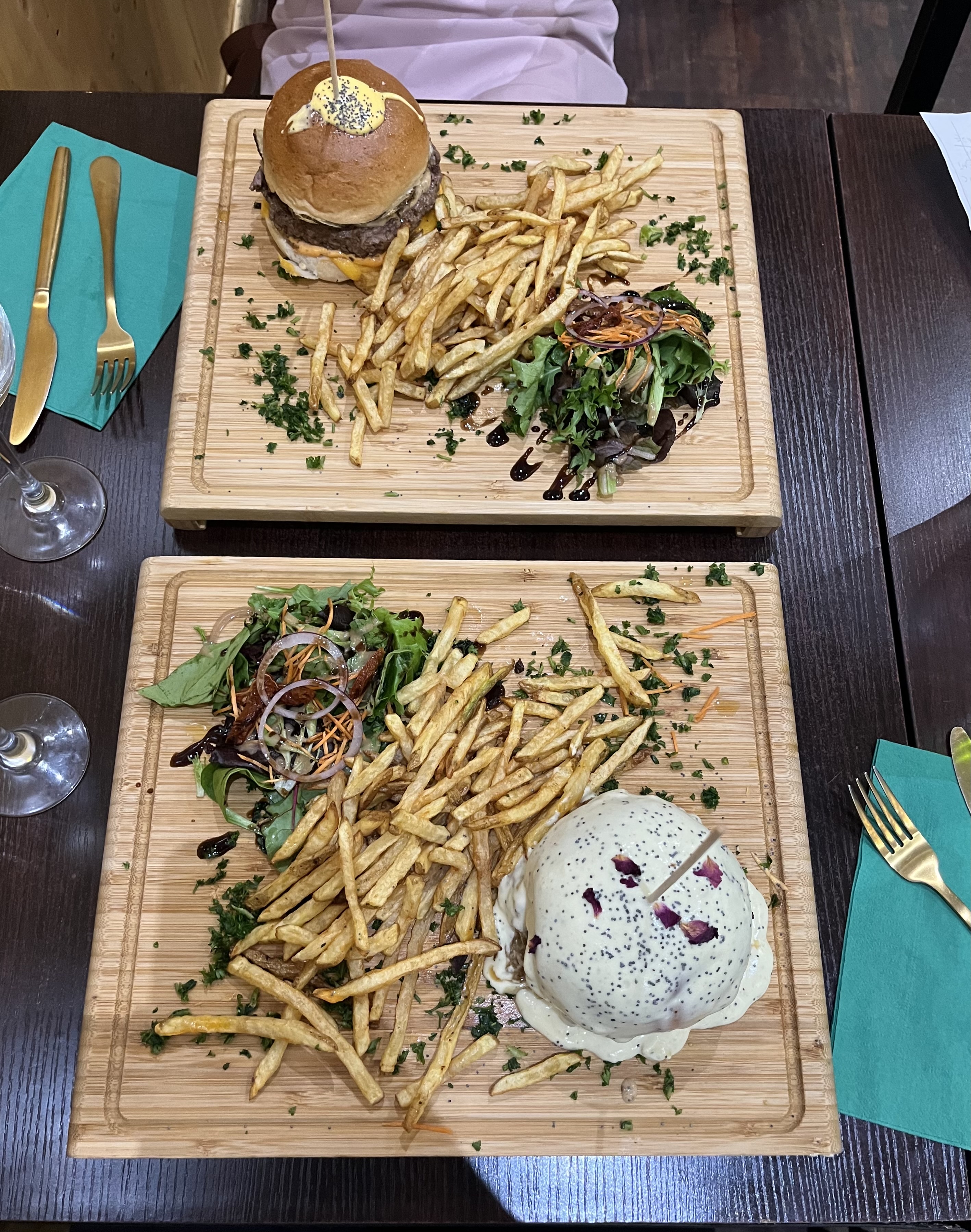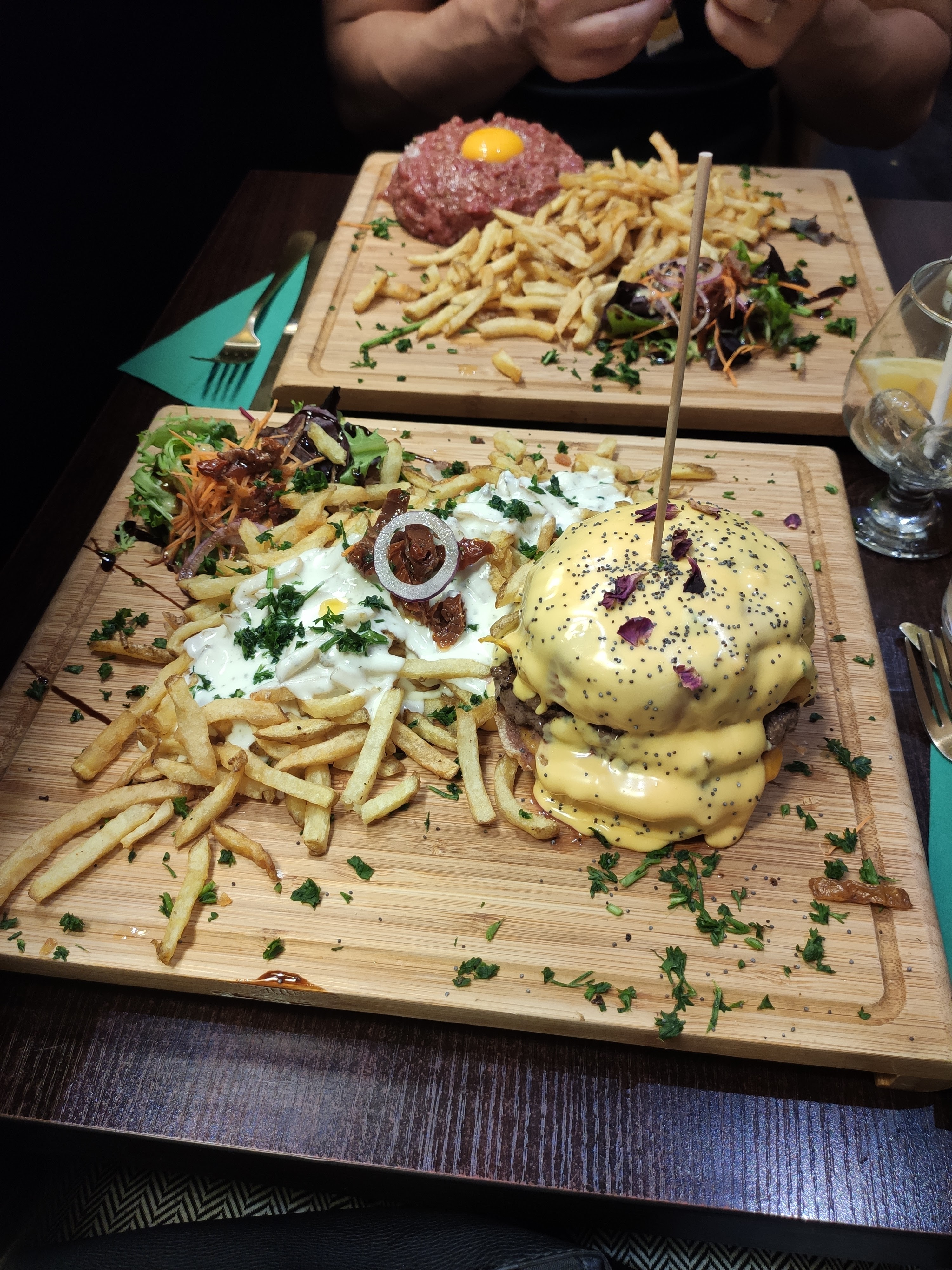 La nourriture était vraiment incroyable. Burger Cheddar et Tartare saumon rien à dire, en plus s'est bien présenté et très généreux.