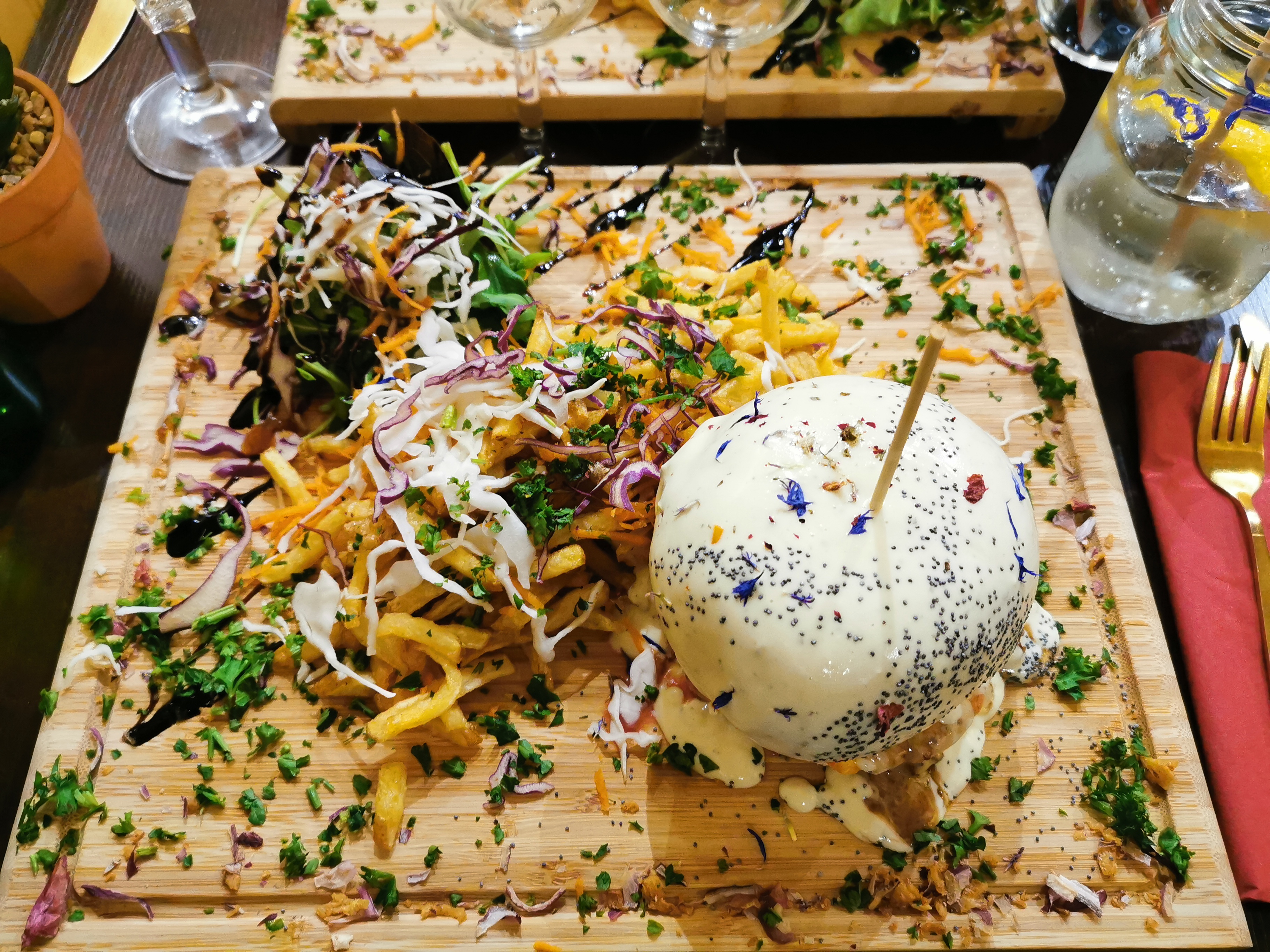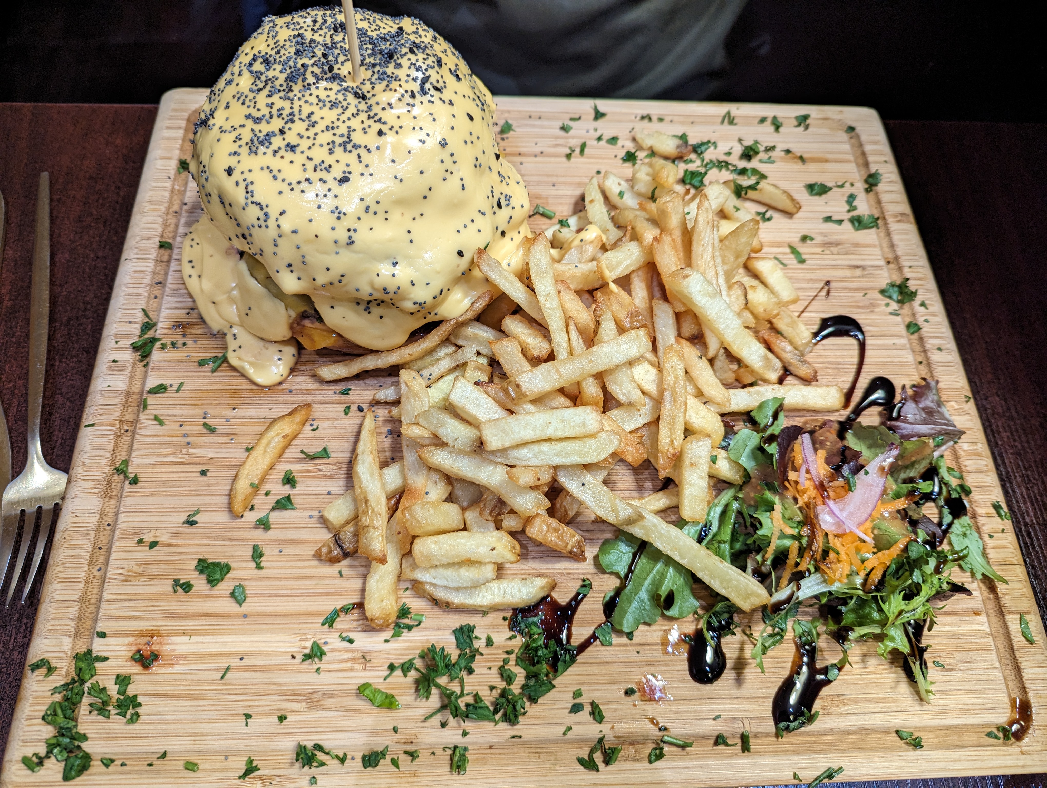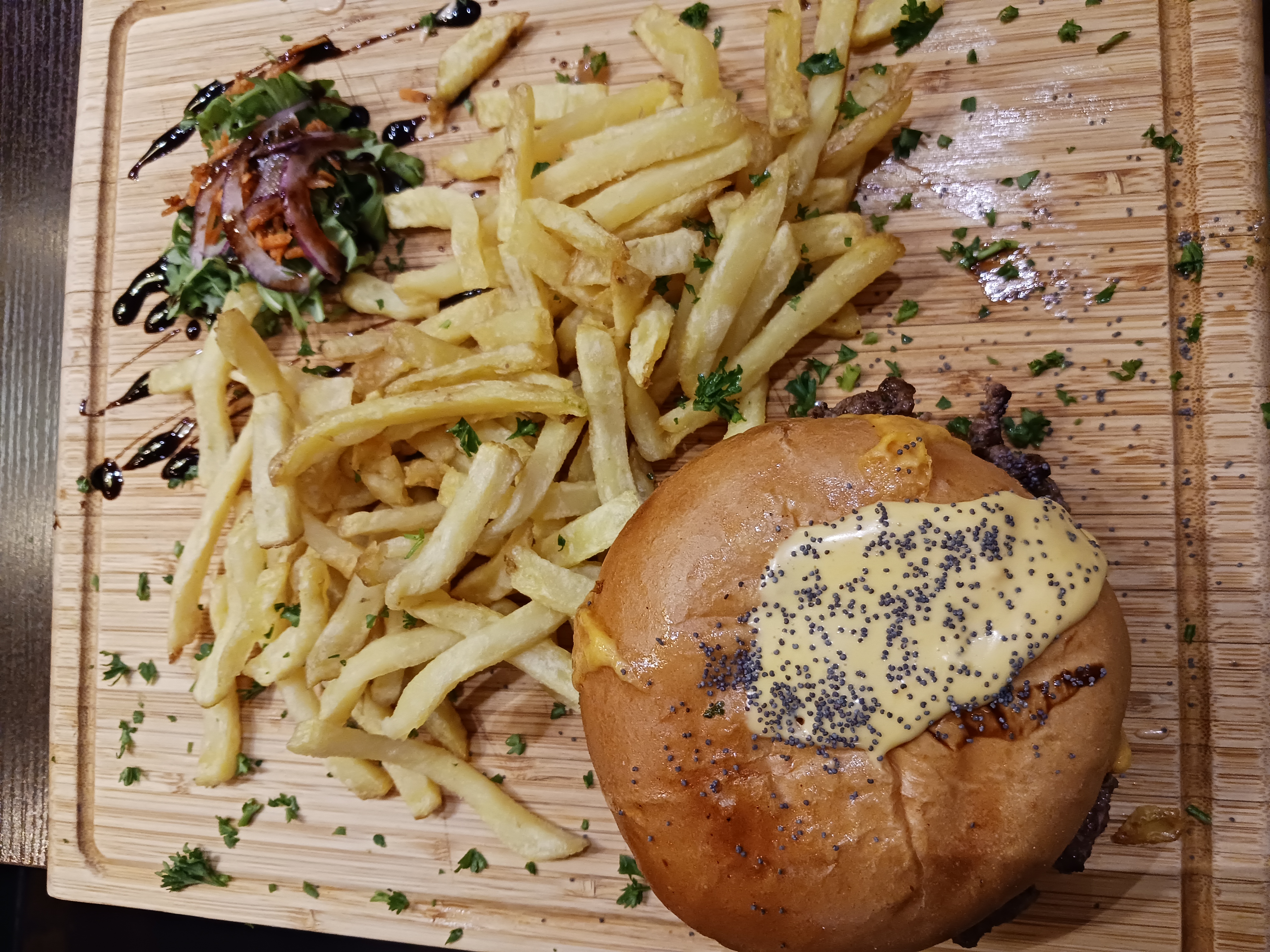La nourriture était vraiment incroyable. Burger Cheddar et Tartare saumon rien à dire, en plus s'est bien présenté et très généreux.