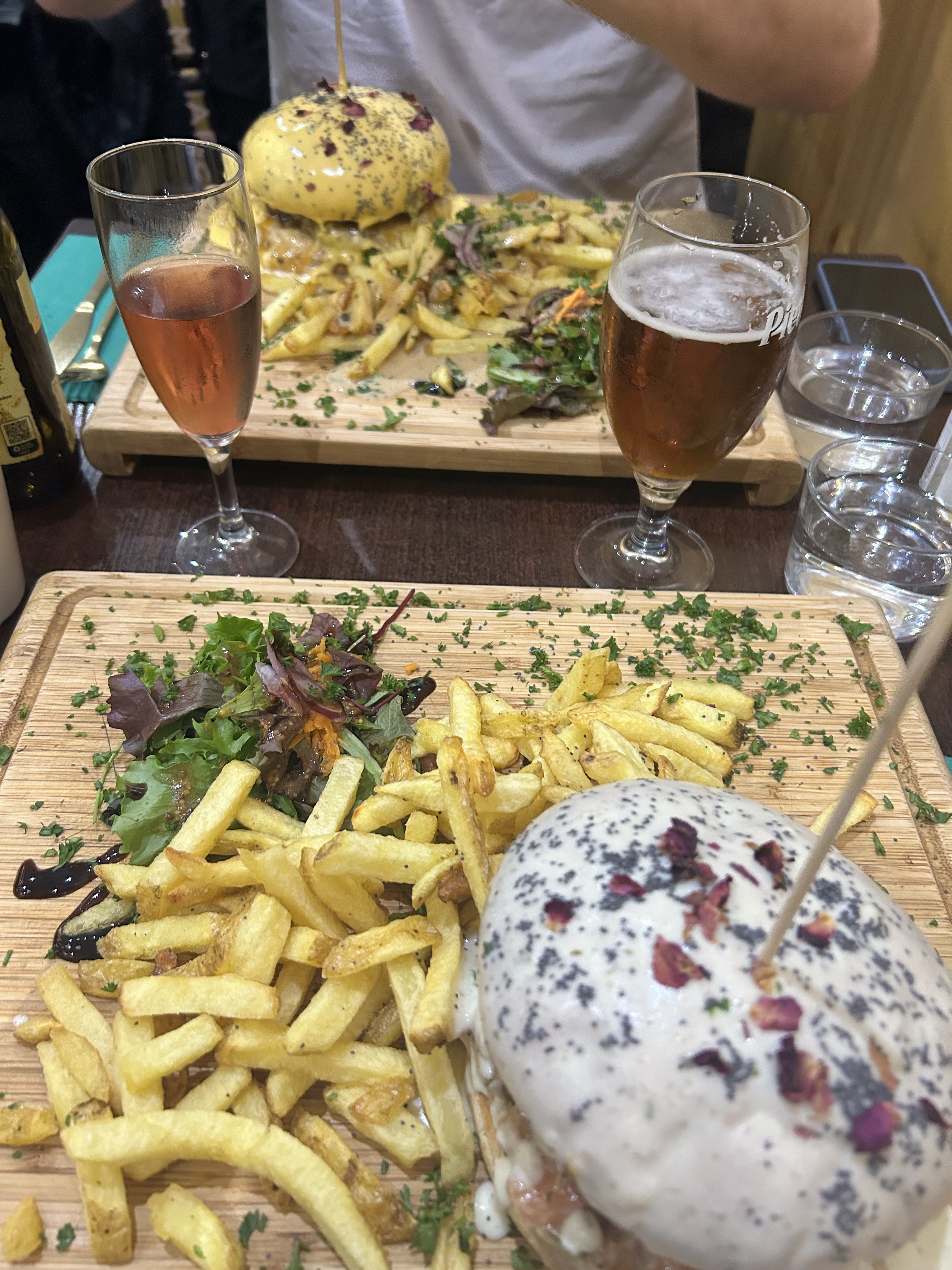 Bonjour et merci pour cet avis qui est parfaitement écrit, aussi vos photos sont magnifiques 💯💯💯🥇🥇🥇🥇 Juste une petite information à ajouter, c'est que nous avons mis en place des plats à emporter qui commence à 8 € et le plat le plus chère est à 26 € pour le burger tour Eiffel. Pour les boissons nos méga sirops, quand même 1/2 litre😅 à 2.90 et les softs en bouteille 33cl en verre en effet à 4€. Pour la fraîcheur du burger végé, ce serais une très bonne idée je pense que l'ont ajoute une tranche de tomates. Si vous comptez revenir faite moi le savoir je vous le ferais tester en prem's et bien sûr je vous l'offre avec grand plaisir, car ce sera sûrement un best seller😎🥇🥇 Merci pour votre message que je prend avec sérieux et qui va nous permettre d'être encore plus performant 🏆🥇🥇🙏🙏,