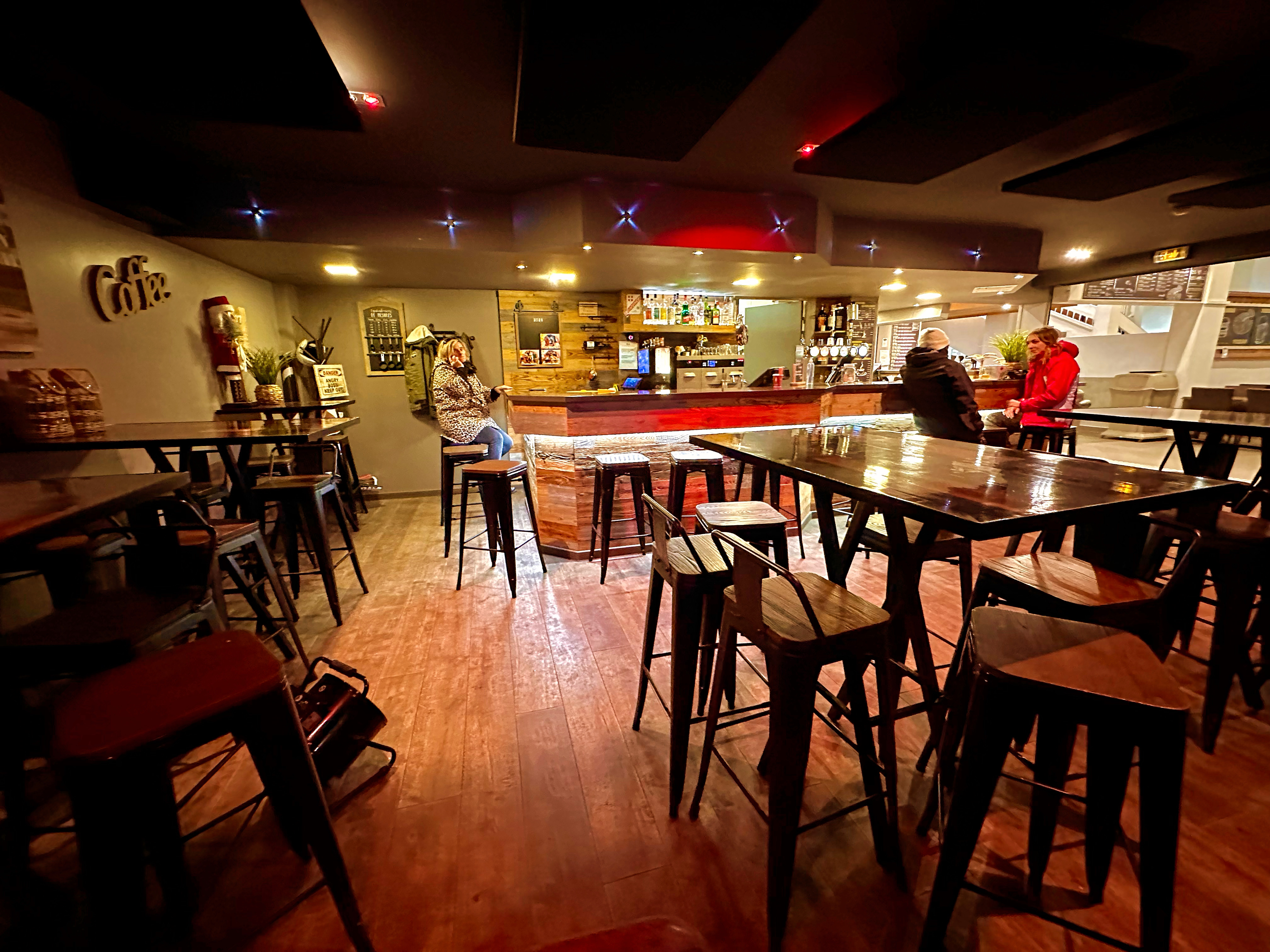 Service déplorable On a commandé 5 boissons, les 3 premiers servis ont eu le temps de boire leurs verres avant que les deux vins chauds soient servis… Enfin, vins chauds… cubi de vin rouge chauffé à la vapeur, un morceau d’orange et de citron, de la cannelle… et des grains de café! (Pourquoi???) Bref, on les a bus parce qu’on les avait payés, mais on ne reviendra pas.