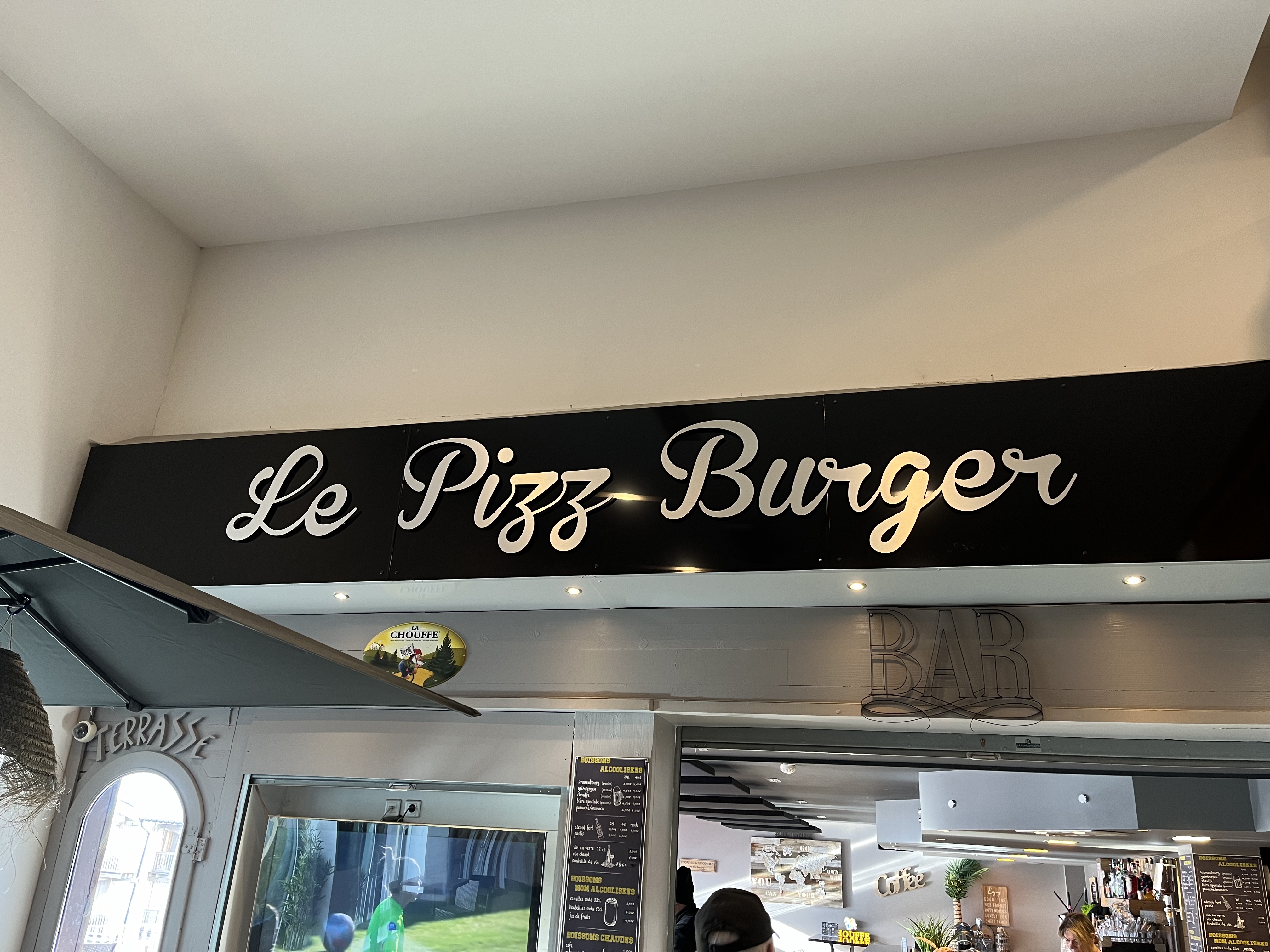 1 lieu de bonne humeur, très convivial, 1 bon accueil et un très bon rapport qualité prix pour ce Pizz Burger sur Val Thorens, Je ne comprends pas les quelques messages posant problème sur l'accueil, Rien à dire ou à reprocher sur ce sujet, vous avez dû faire une connerie 😁😁