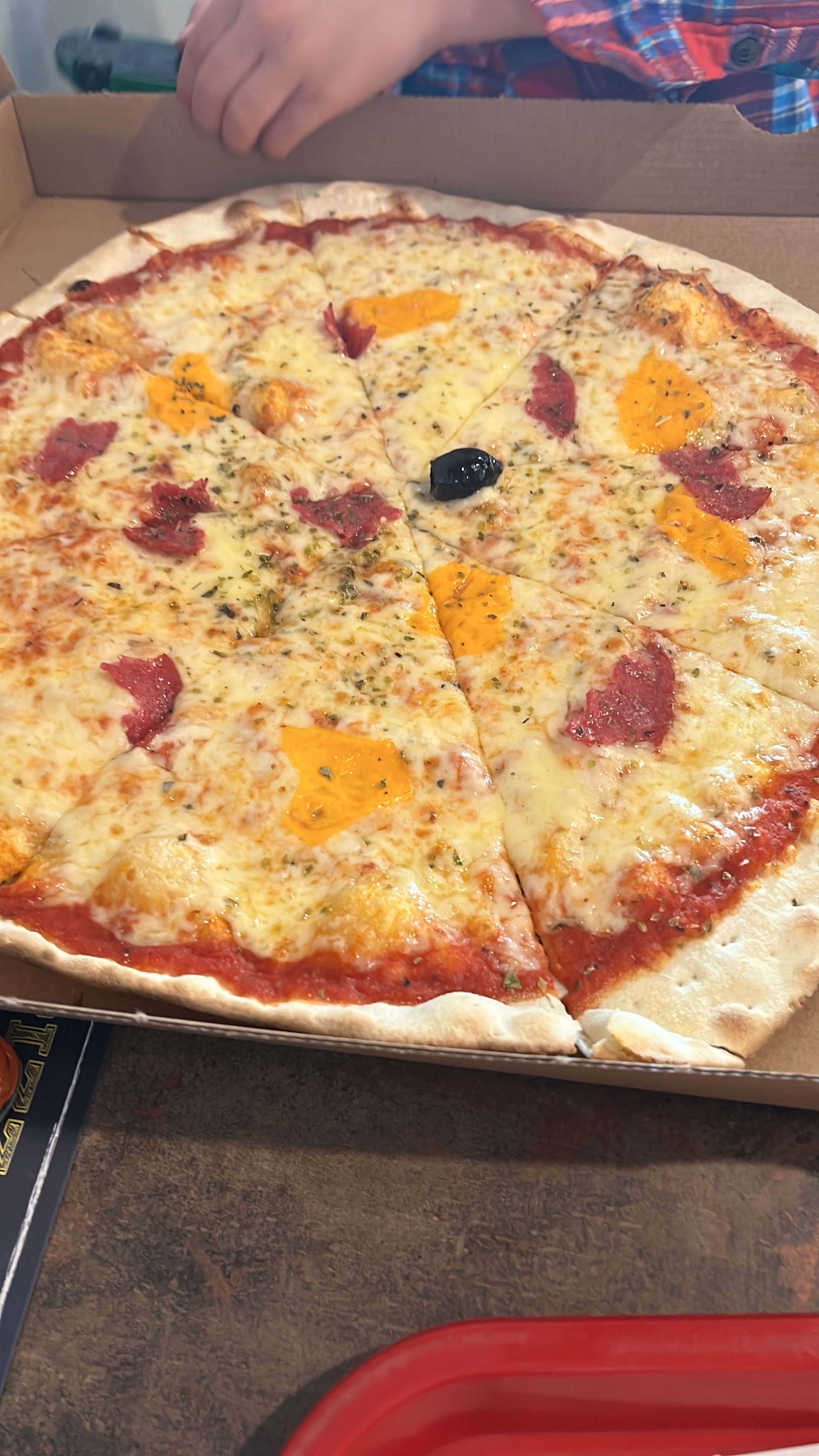 Pizza pate trop fine meme pas une olive entiere une rondelle au milieu