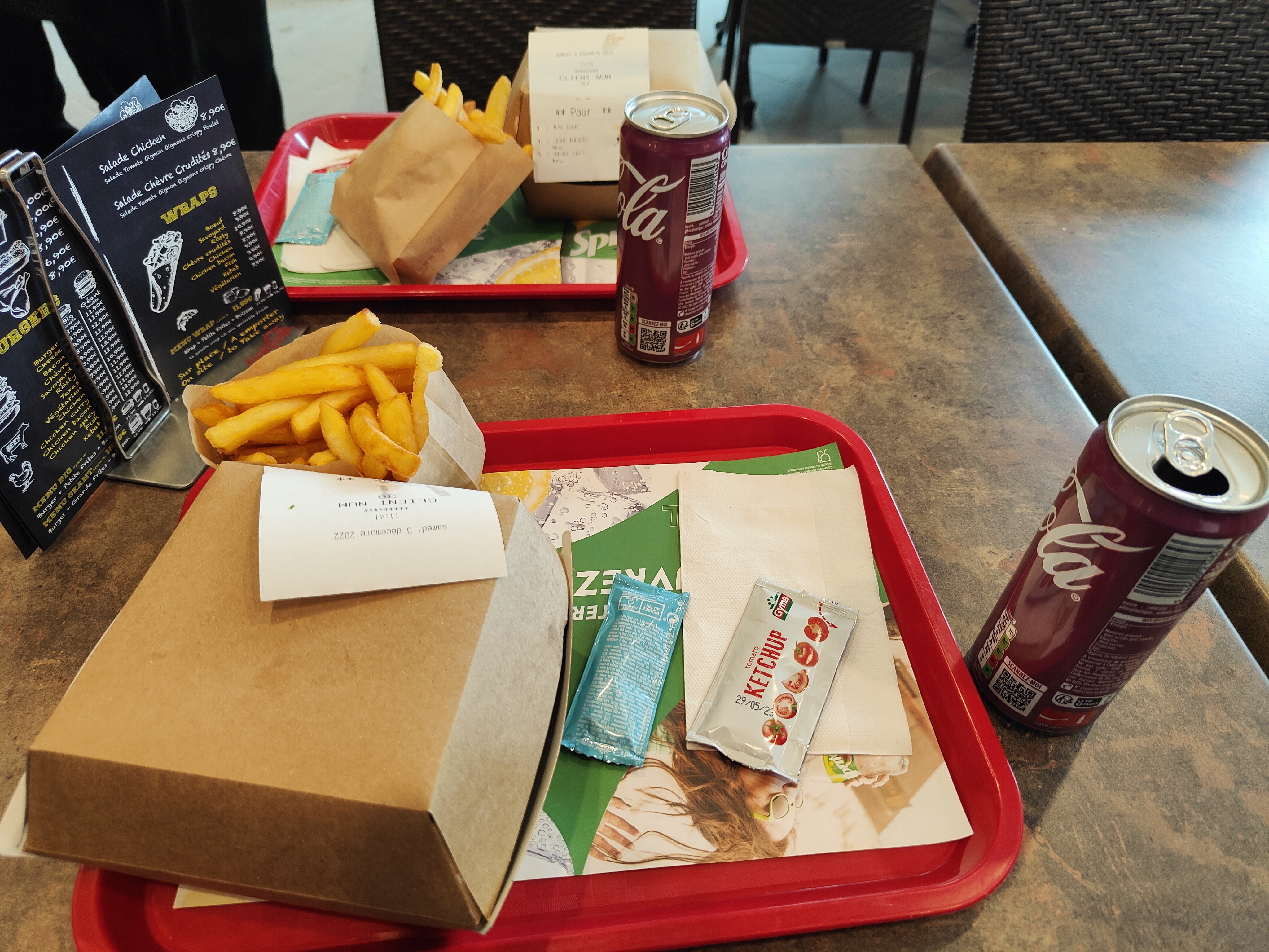 1 portion de frites surgelées + 6 nuggets surgelés + 6 wings surgelés= 27€ ! Et les sachets de sauce à 10 centimes pièce... très cher pour cette qualité!