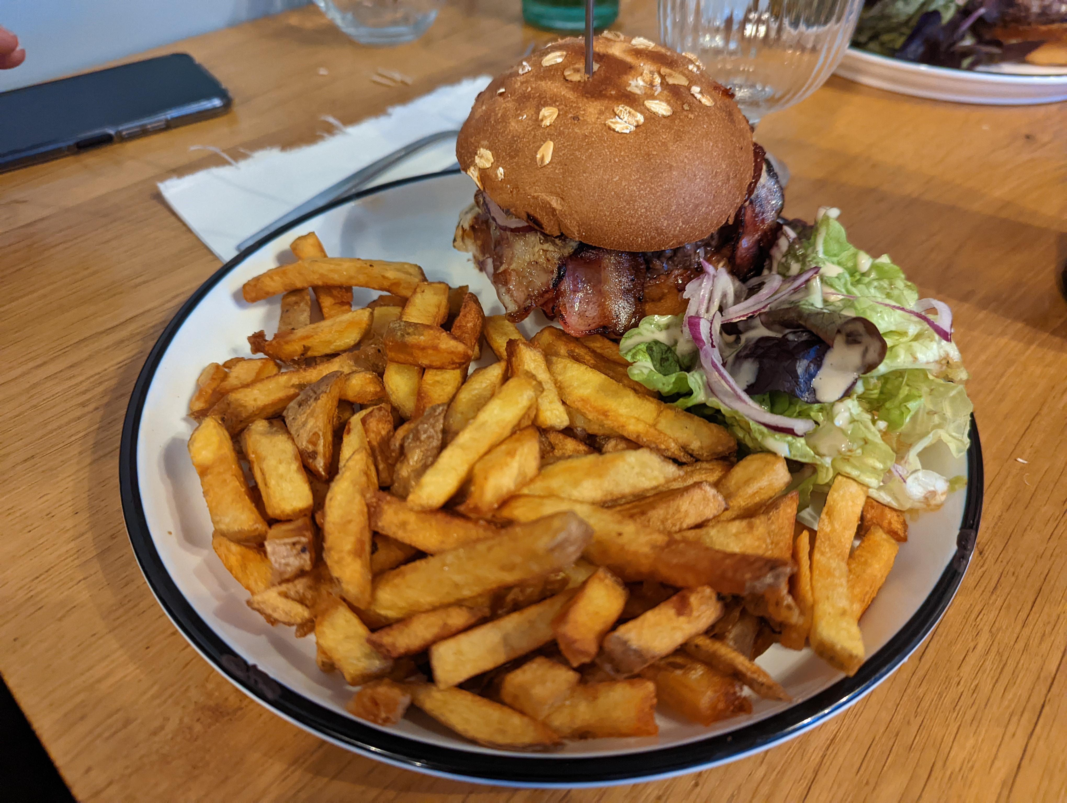 Oh là là, quel régal ! Les burgers proposés par les deux (jeunes) cuisiniers (talentueux) sont faits avec autant de goût que de soin. Viande hachée sur place, sauces maison, poivrons grillés explosifs, buns artisanaux. Et des frites maison délicieuses. Que je ne regrette pas cette halte. La prochaine fois à Dinan, ce sera clairement le plan A !
