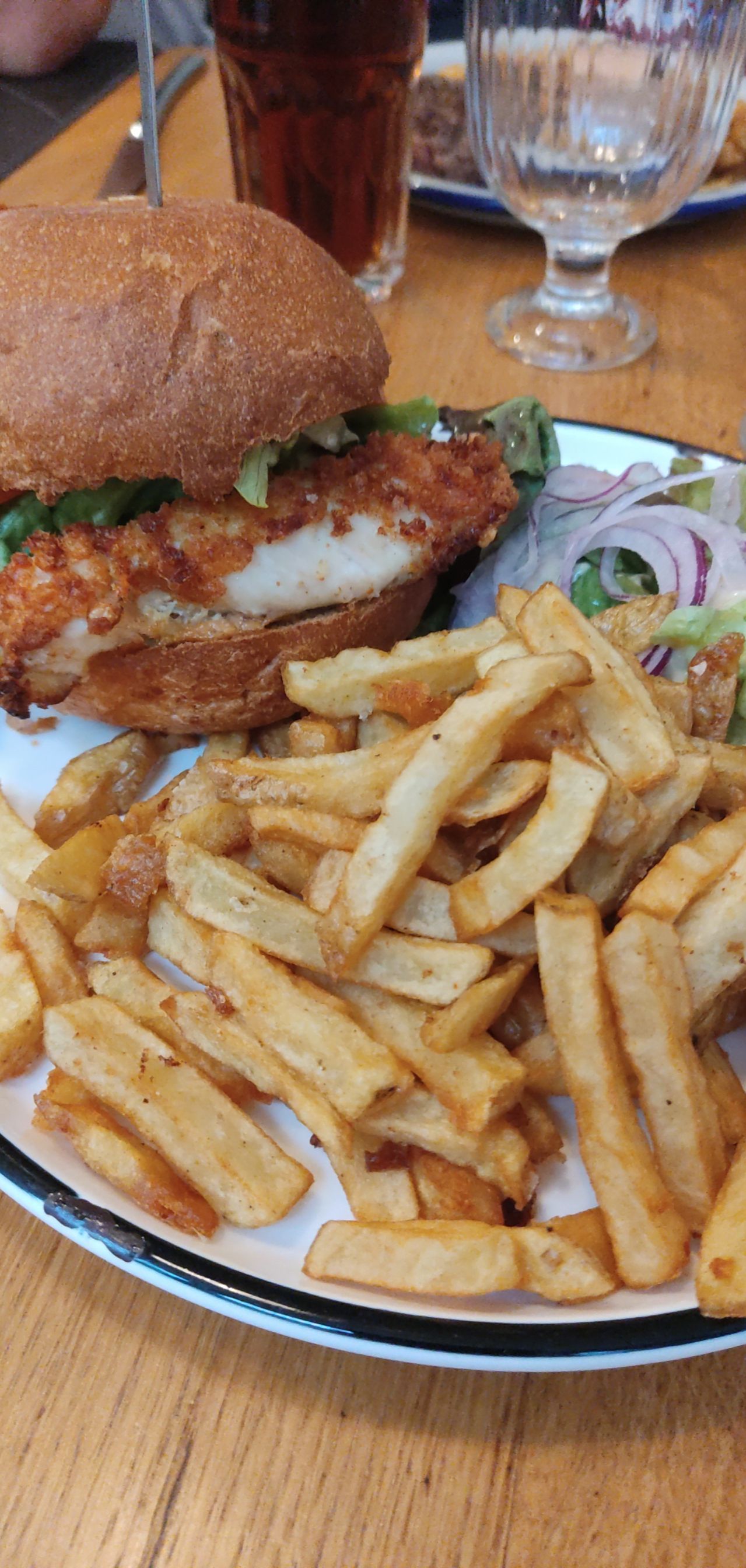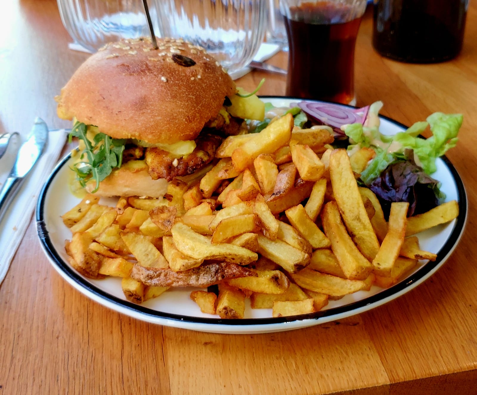 Le cadre est très sympathique et les prix sont raisonnables. En revanche, le service s'est particulièrement mal passé lors de notre venue. Nous avons dû attendre presque 1h avant d'être servis (ce qui apparemment est exceptionnel). Les frites maison étaient bonnes, j'ai été moins convaincue par le chicken burger qui était très sec. Mauvaise surprise à la fin du repas...nous avons trouvé une mouche morte 🪰 au fond de notre carafe. C'est très dommage !