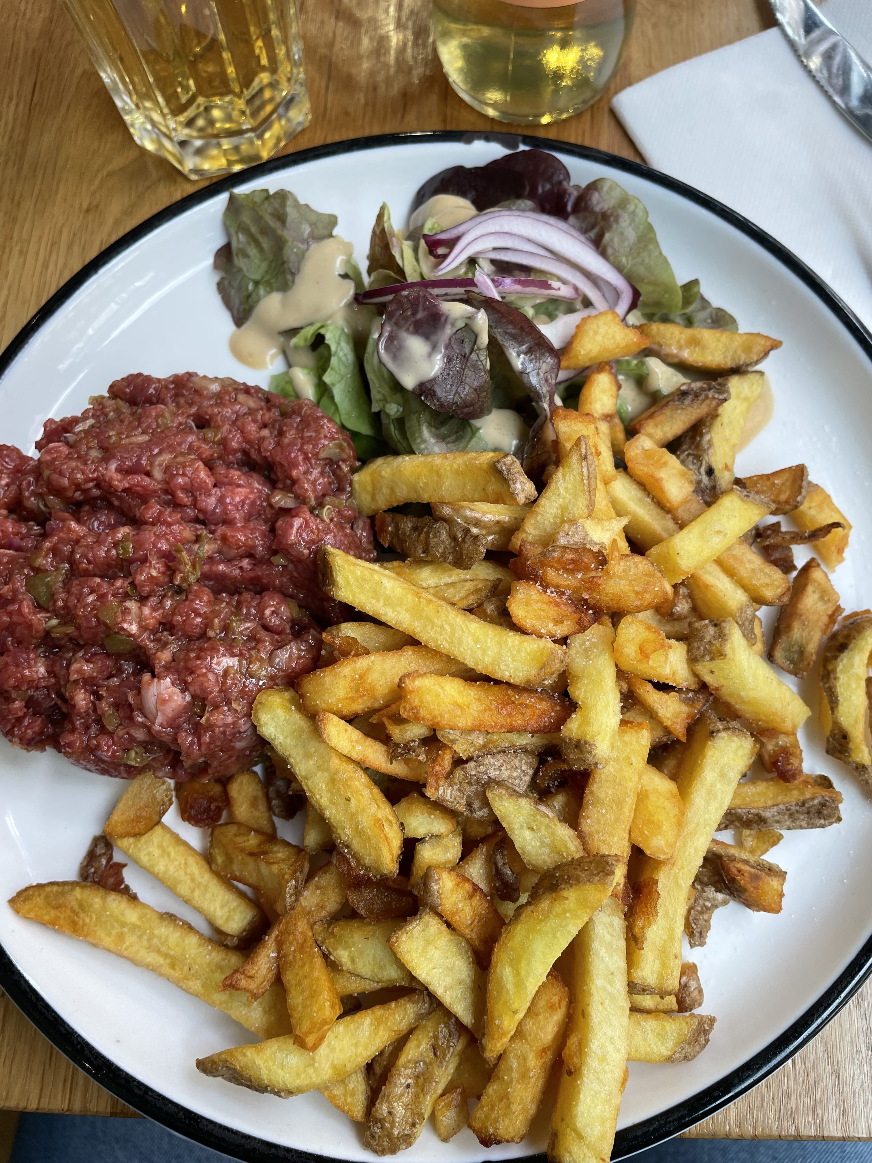 Un restaurant excellent, la viande est divinement préparée et goûteuse, les burgers originaux sont excellents, le fromage de chèvre est délicieusement fait, les frites maison exquises et le service impeccable et accueillant, y compris quand on vient avec un toutouchien ! (La petite gamelle d'eau apportée en même temps que la carte sans qu'on l'ait demandée qui fait plaisir !)