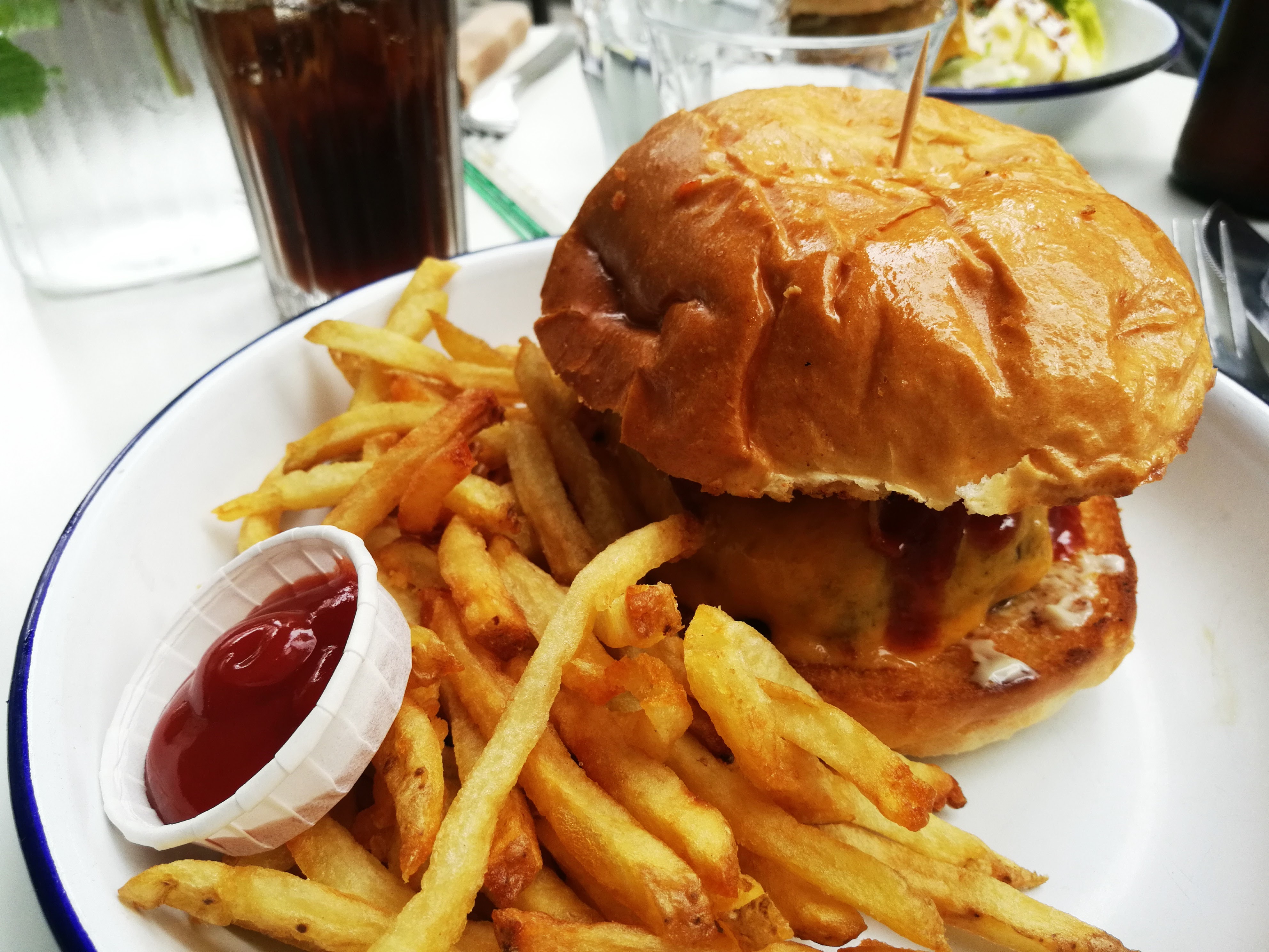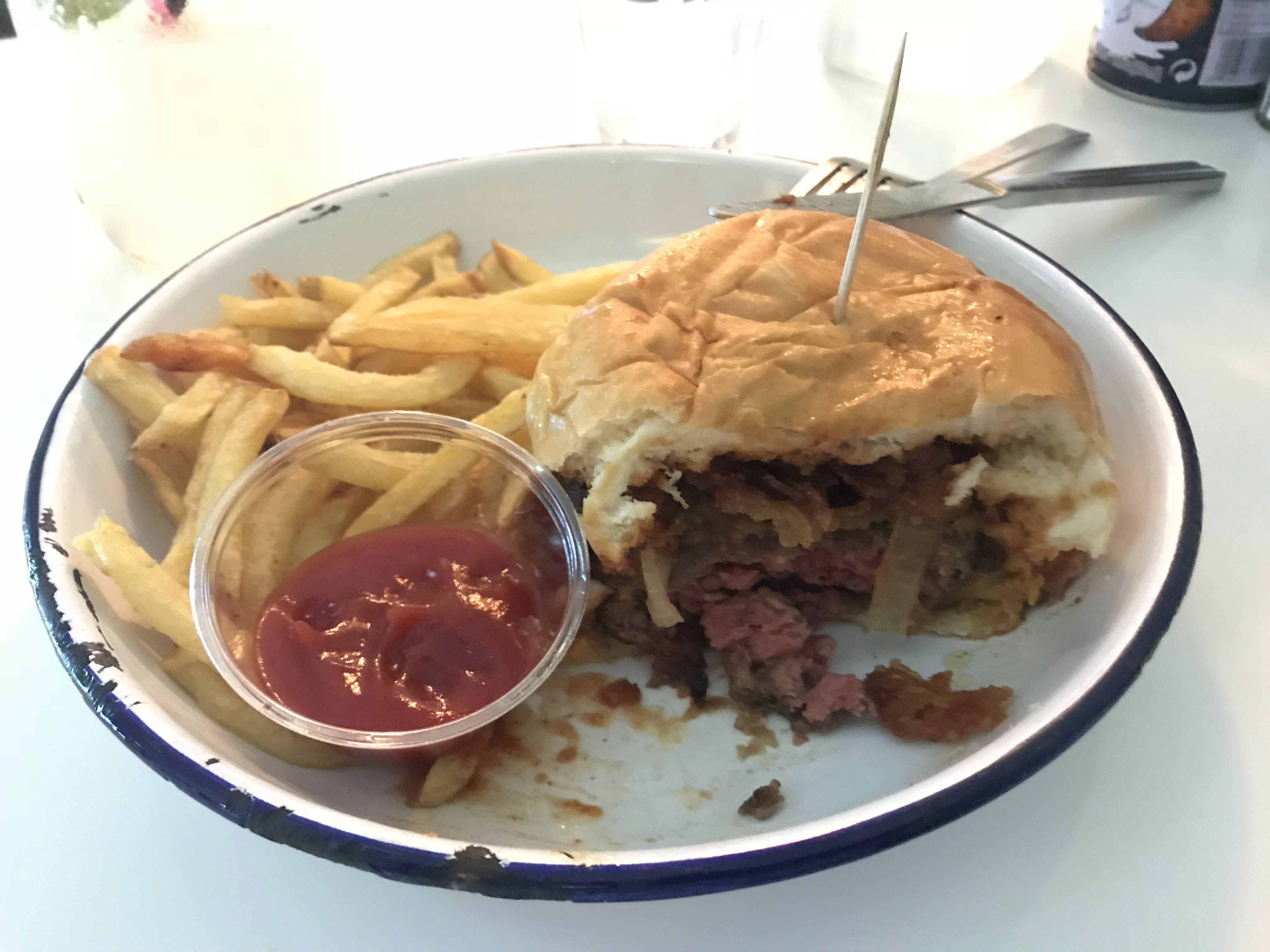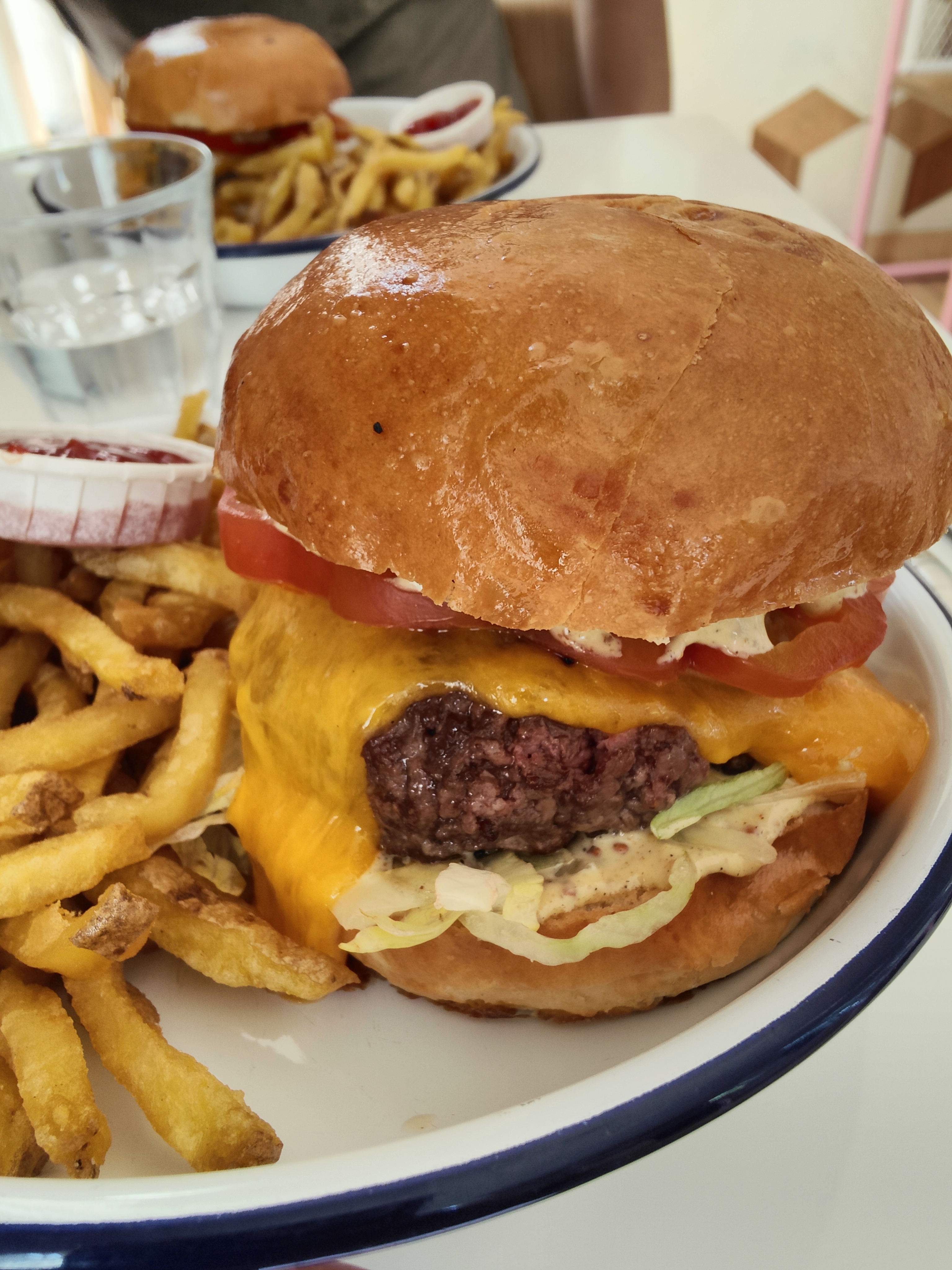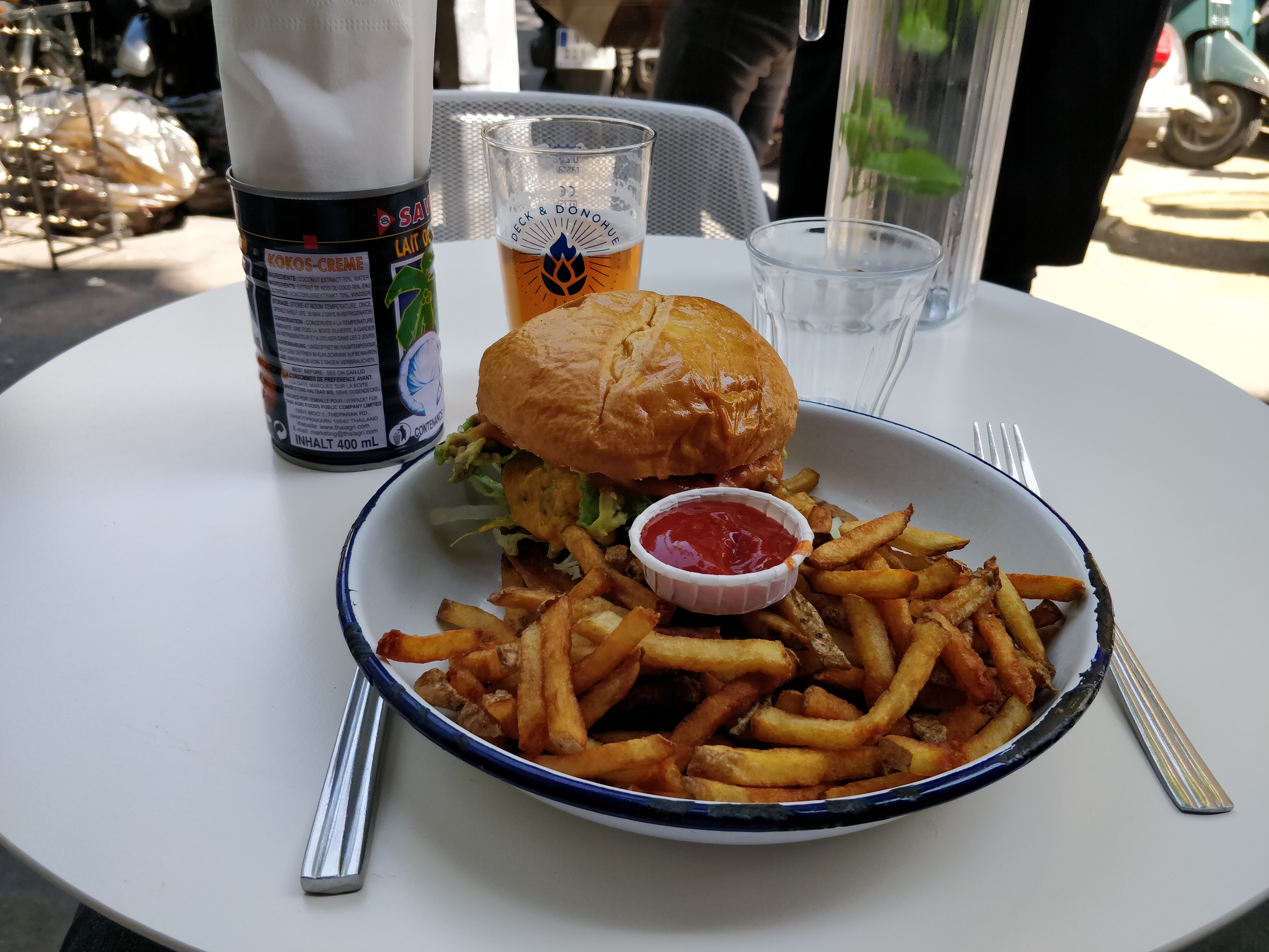 TASTEFULL, Super bon, tout sens le fait maison, viande délicieuse, poulet délicieux, pain délicieux, bière délicieuse, oignons délicieux, le ketchup bof. Oui c'est pas aussi équilibrer qu'un bagel au saumon mais terrible ! A oui la musique est super aussi, et l'intérieur plus tôt funky. Prix ? 2 Burgers, 2 frites, deux boissons, 45e. TOP, le petit plus, une rue calme avec petite terrasse.