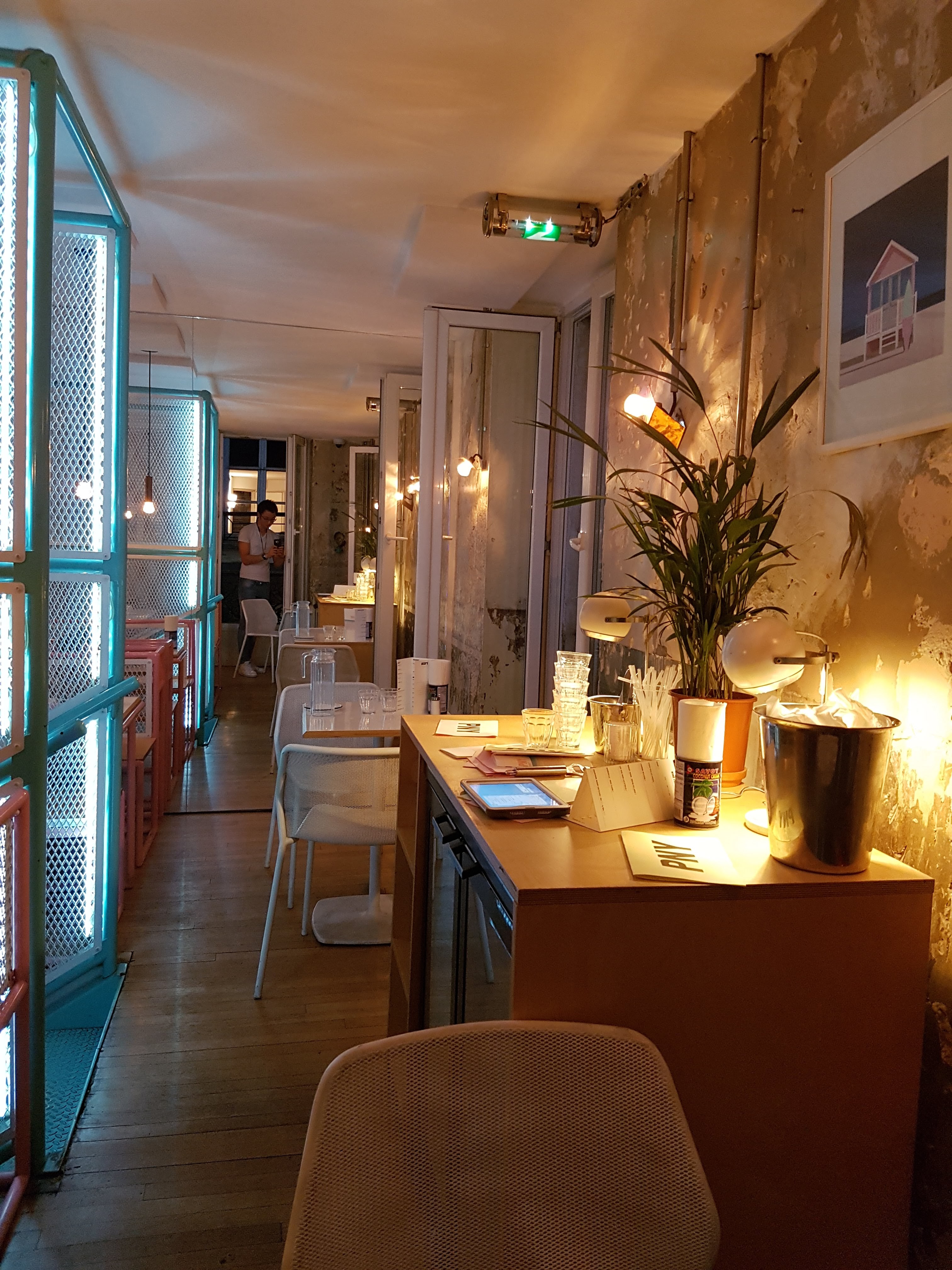 Restaurant avec un jolie décor esthétique. Menu lunch à 16€ (hors WE) burger, salade/fries, et une boisson soft. PS : ils prennent les tickets restaurants