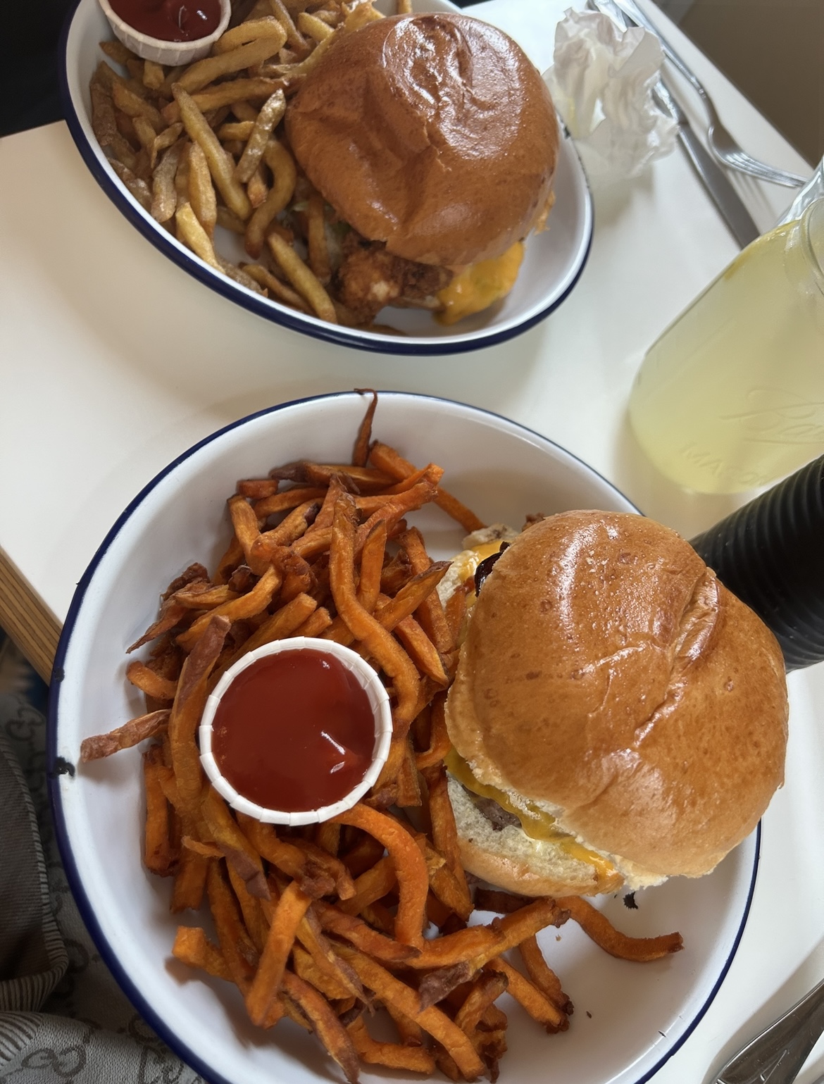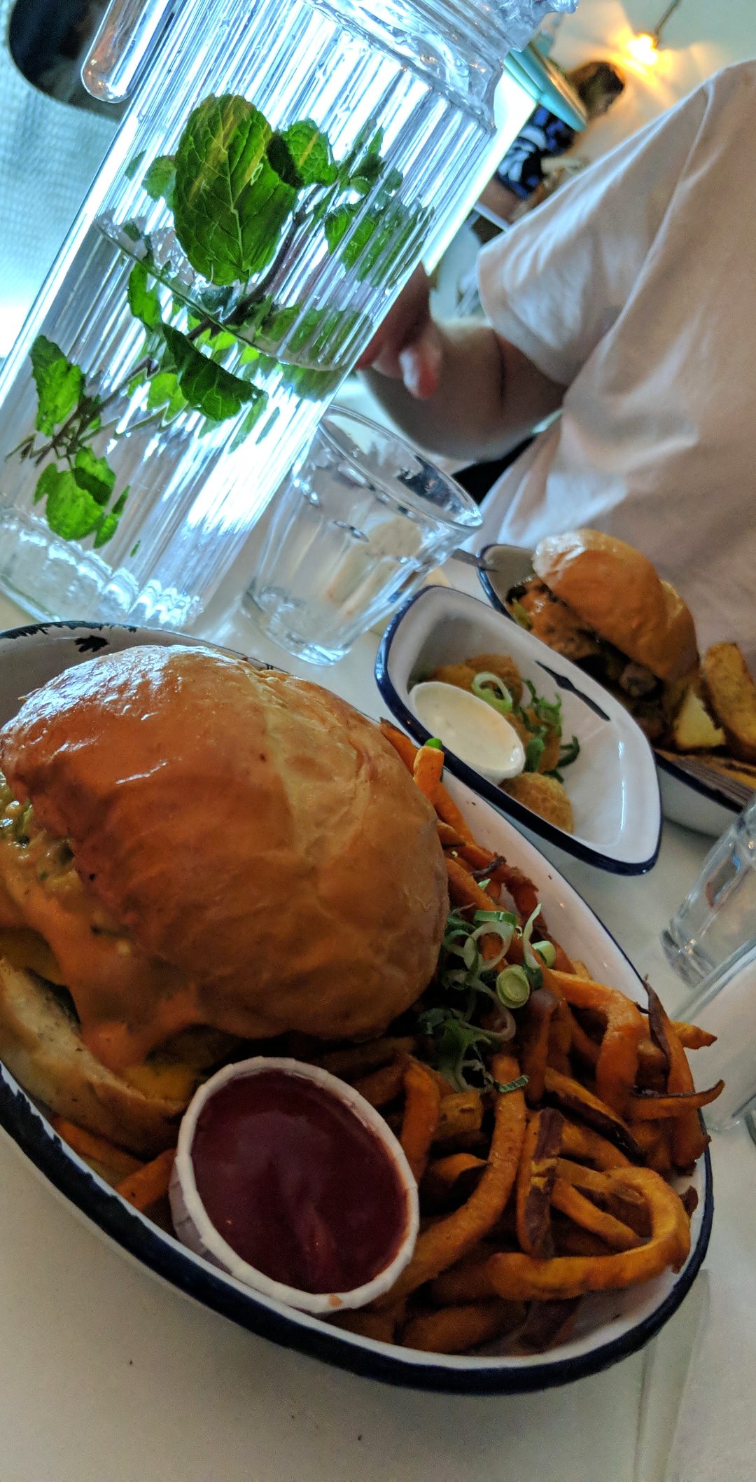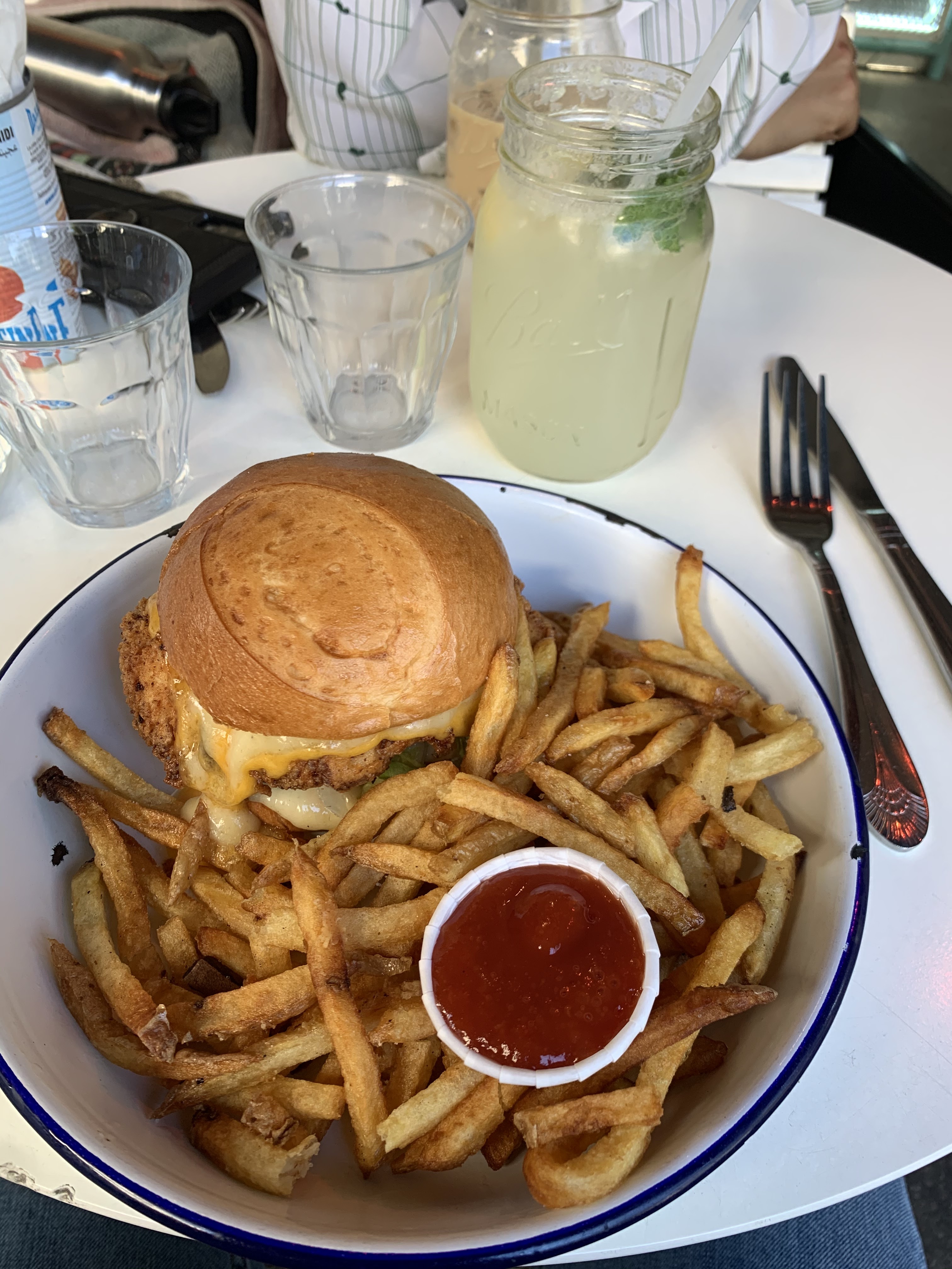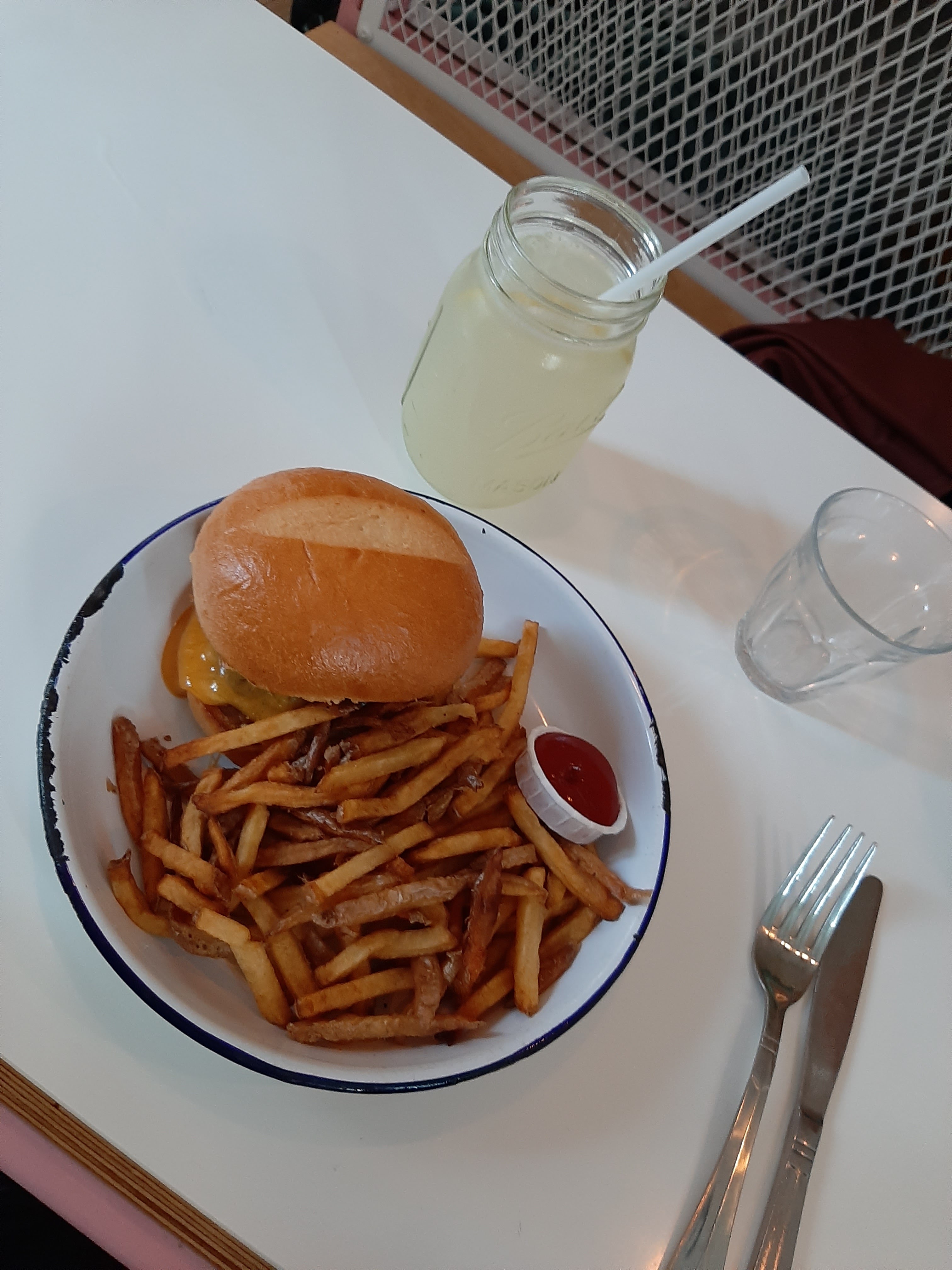 Bonne expérience burger ! Possibilité de demander sans sel pour les frites MAISON et qu'ils n'en mettent pas sur le steak aussi 😉 le tout accompagné de leur thé glacé jasmin, pamplemousse et graines de basilic, plutôt sympa sympa 😊 En tout cas j'ai bien aimée et bien mangée, assiettes plutôt généreuse comme vous le voyez! Et ils font aussi des frites à la patate douce, à essayer peut être la prochaine fois 😋