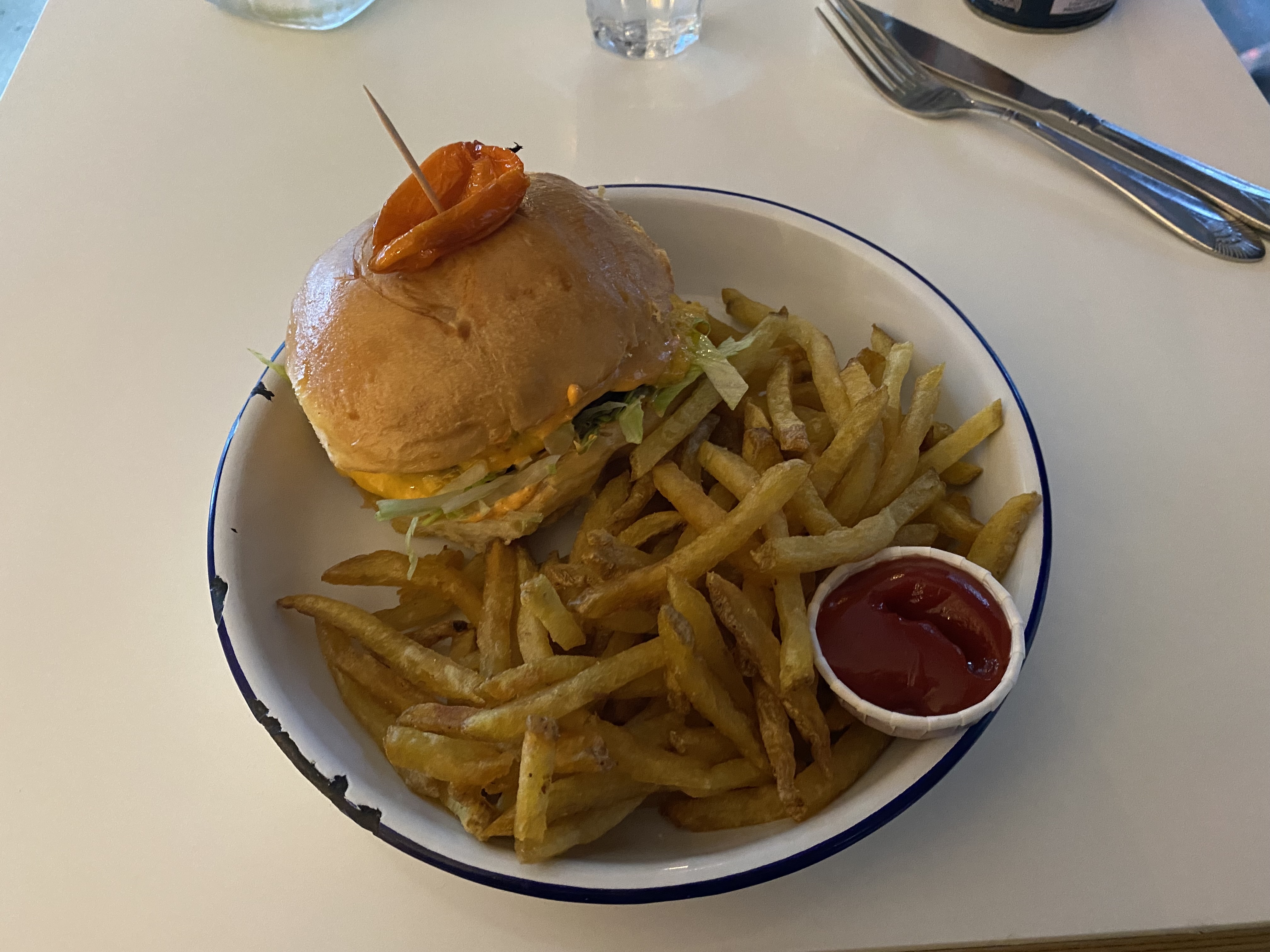 Burger super bon! Je recommande. très sympa option vege Beyond burger! (Petit moins sur les frites qui ont gout plus d’huile que de patate) Service... peut faire mieux. A peine souriant et aimable. On a essayé à plusieurs reprises de changer de place car on était placés à côté des toilettes et des cuisines super bruyantes... alors que le restau était plutôt vide, personne n’a su répondre à notre requête. Prix élevé mais cuisine de qualité.