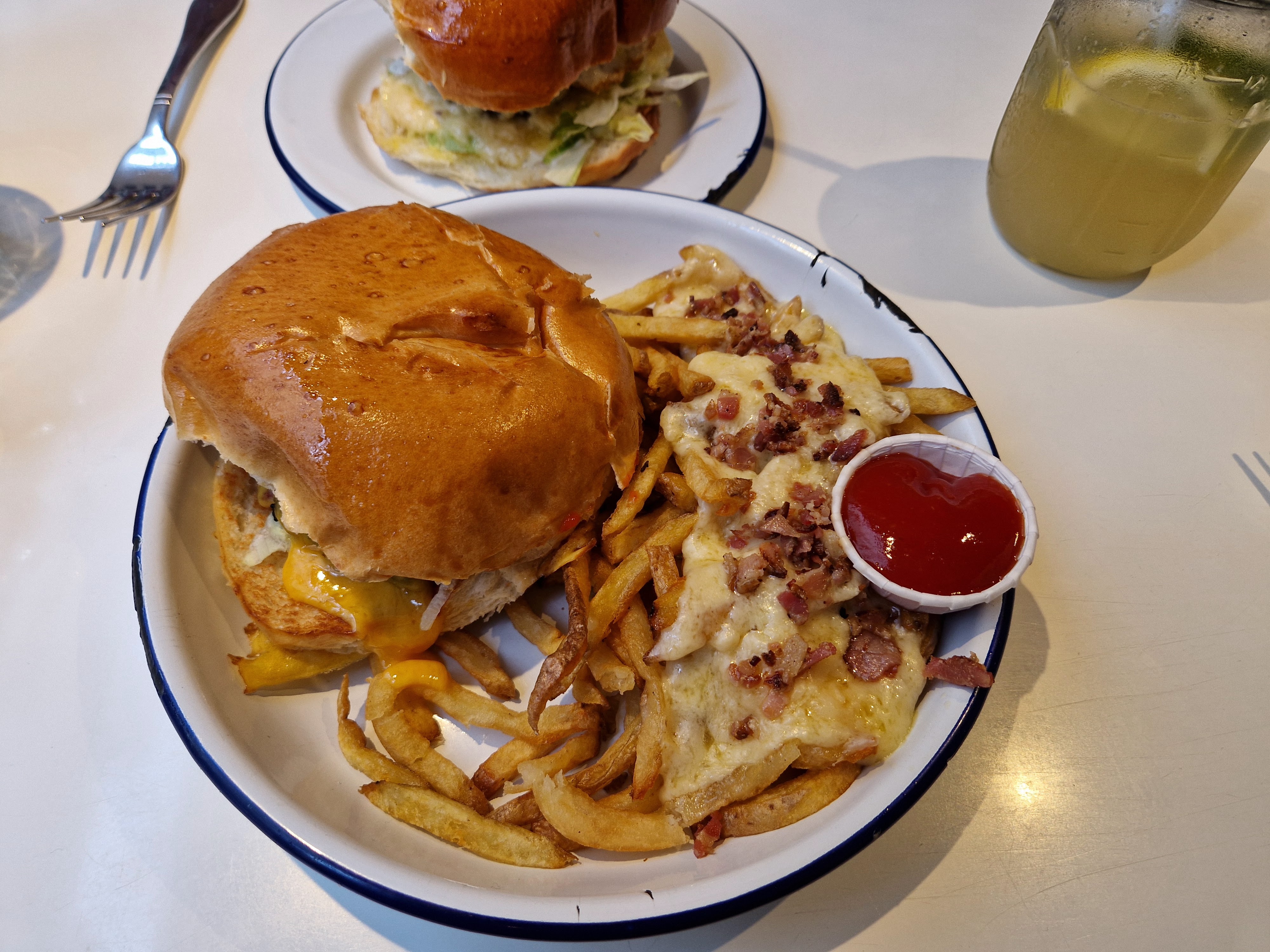 Le gras, c'est la vie. Très bon burger au poulet pané, pas étouffant du tout. Le pain est moelleux, la sauce est bonne. Les loaded fries sont... chargées ! Bon choix de bières en bouteilles. Service rapide. Je reviendrais si l'occasion se présentait.