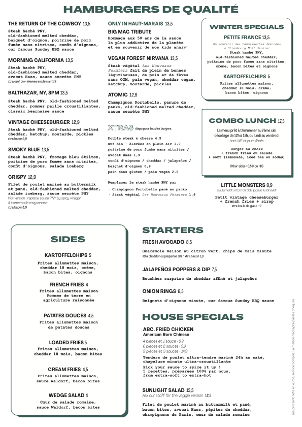 Les burgers PNY sont excellents, c'est indéniable. L'option végétarienne est également un véritable atout et c'est pour cette raison que nous commandons régulièrement dans ce restaurant. Toutefois, si je ne remets pas en question le travail des cuistots et la qualité de la nourriture, je suis très étonnée par l'attitude et le manque d'implication des serveurs présents : plusieurs fois des oublis de sauces payantes dans le sac, des oublis du sac sur le comptoir alors qu'on te demande spécifiquement d'attendre dehors et qu'on te l'apportera (de fait, trop tard c'est froid). Cela arriverait en période de rush ce serait compréhensible, mais ce n'est pas le cas. Au vu du prix du burger, j'estime que la qualité du service est tout aussi importante que son goût : il existe aussi plein d'autres bonnes adresses dans le quartier ;)