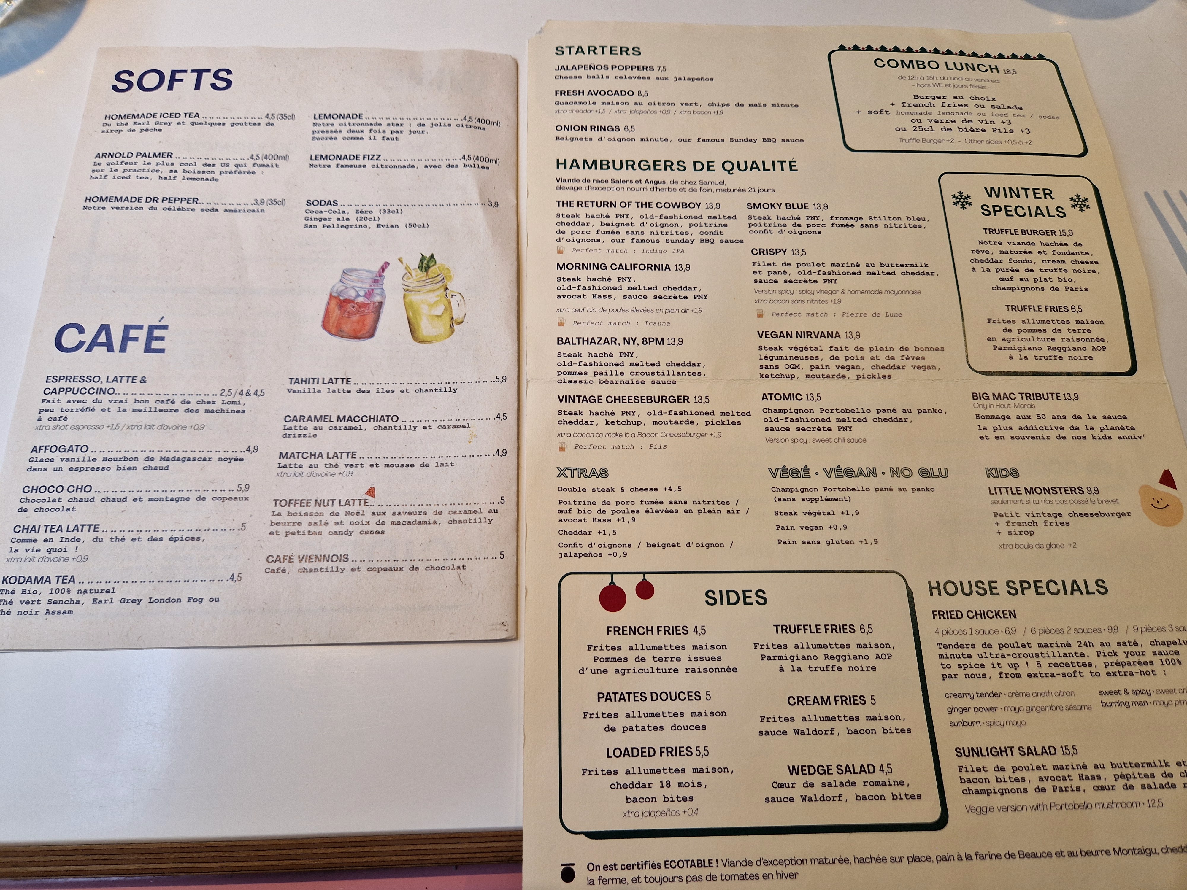 Je suis passée par hasard avec ma fille nous y avons déjeuné dimanche midi j'ai pris un goodbye Californie et ma fille un crispy avec une frite à partager et une iced Coffee nous avons tt simplement adoré ! Allez y les yeux fermés