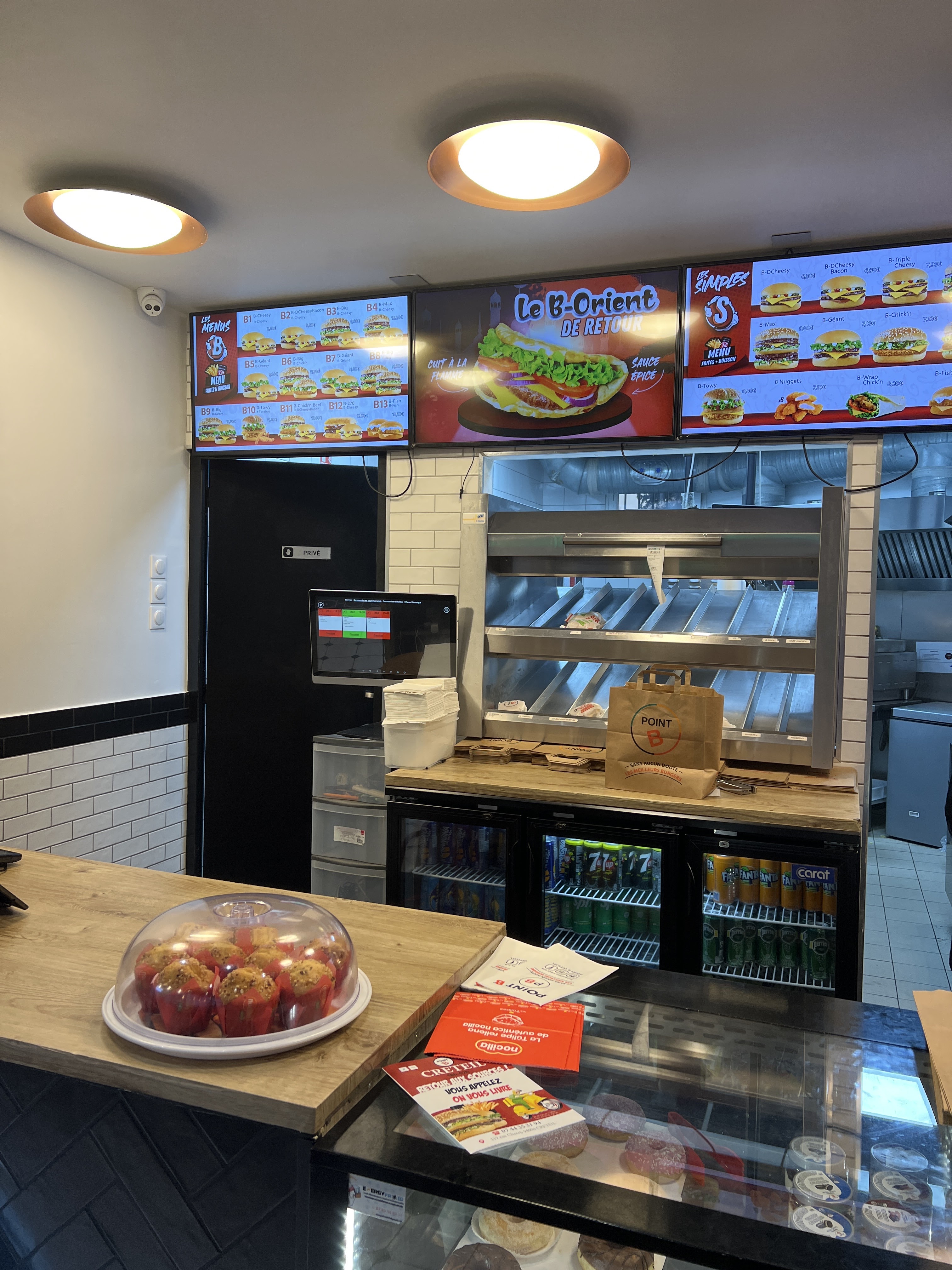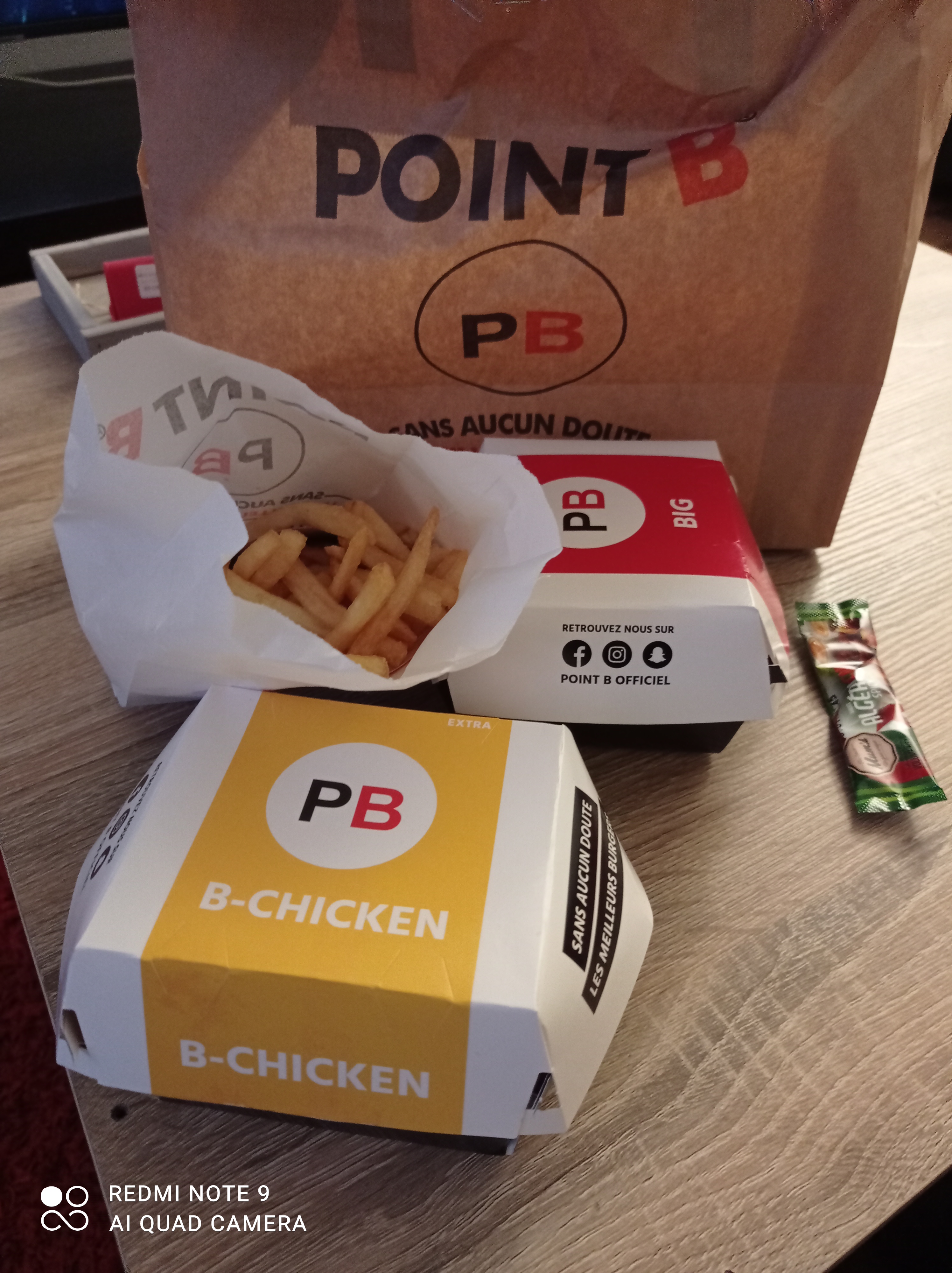 Enfin un POINT B à la hauteur de celui de la Villette... Meme pas terminé le paiement de ma commande que j’étais déjà servi, burger chaud et frites excellente. Clin d’œil au deux patrons pour les 8 nuggets offert 💪🏻
