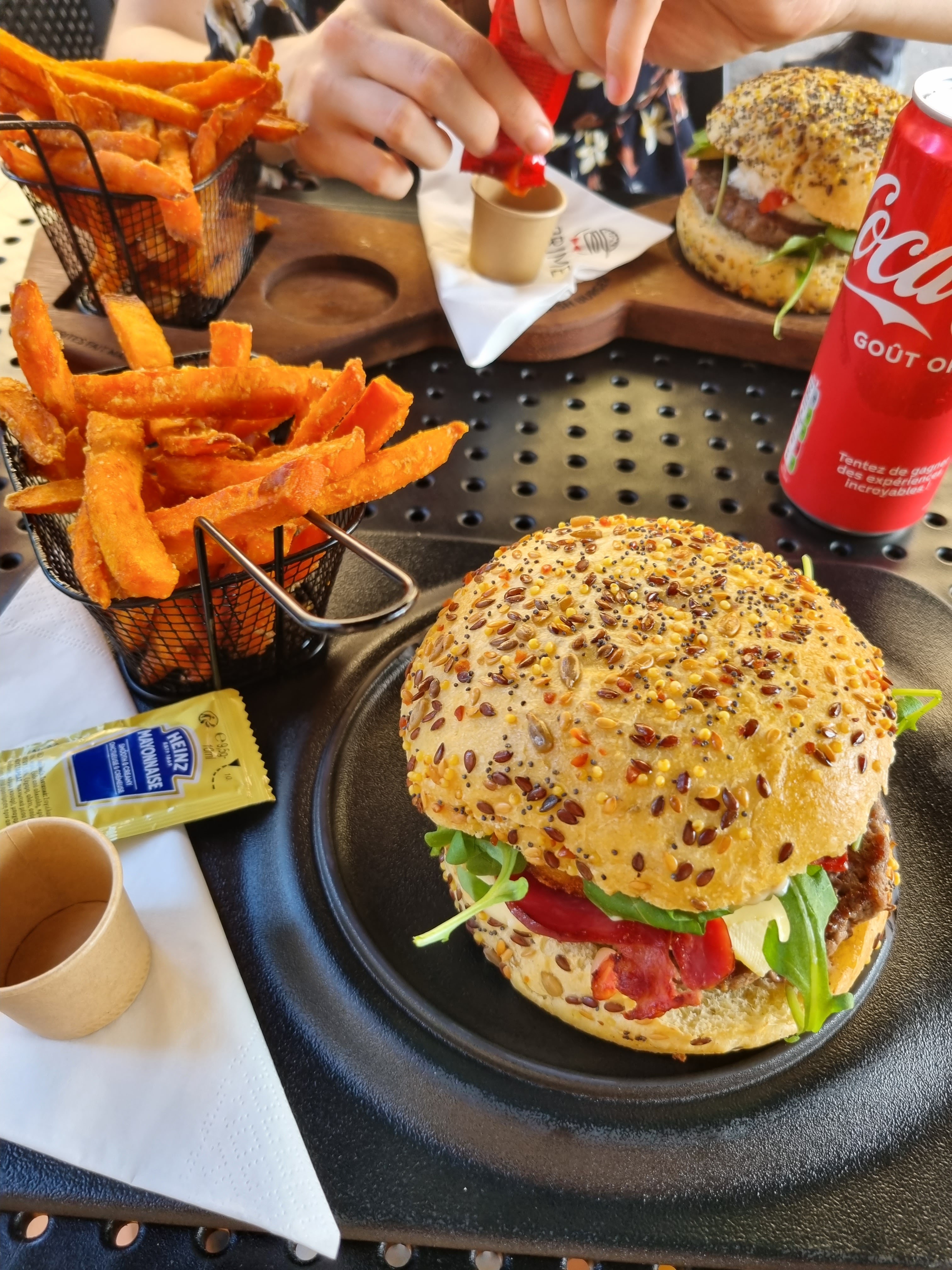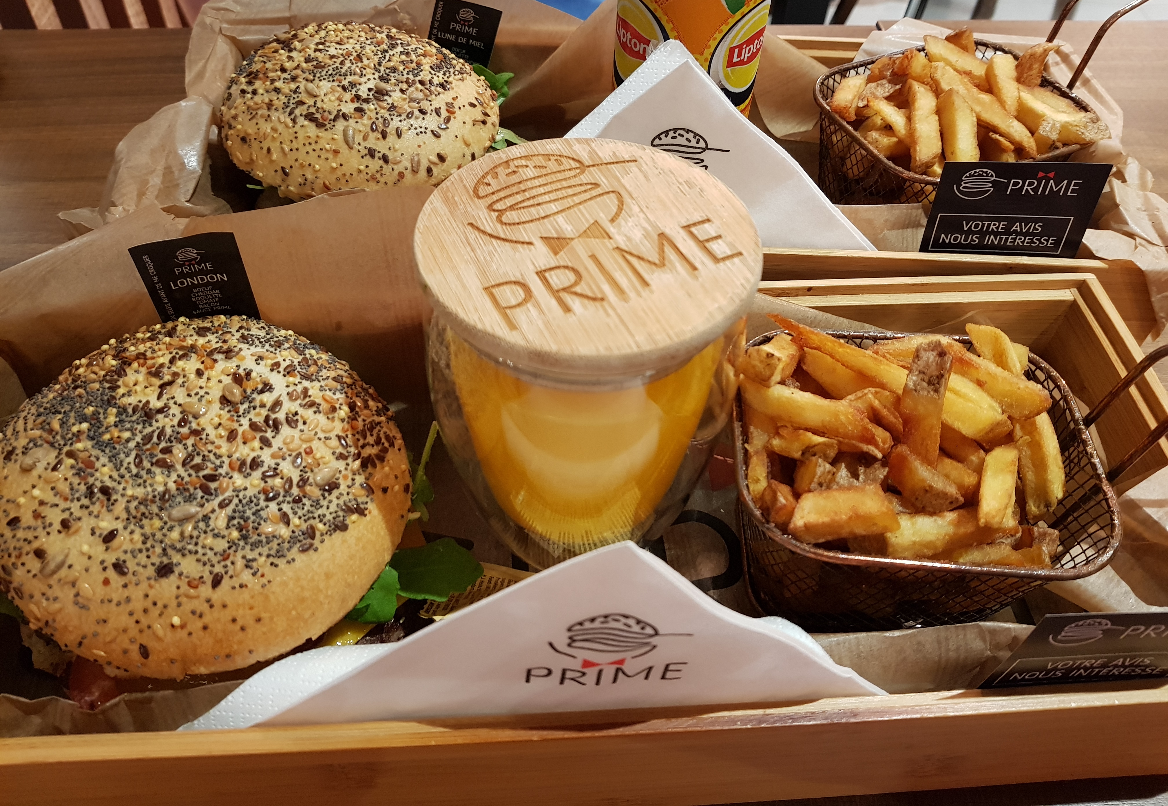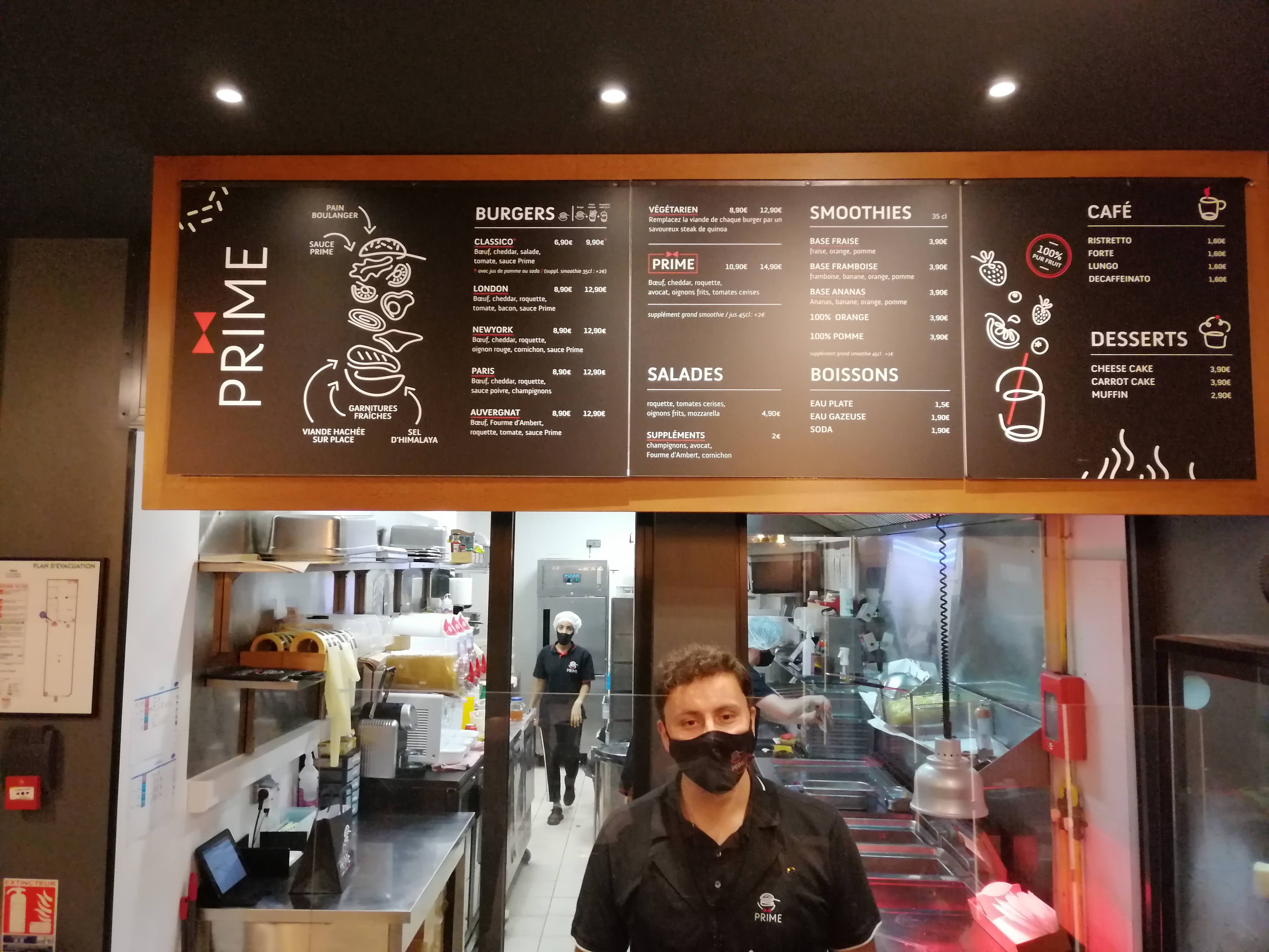 Alors prime, je connaissais de nom, mais n'avait jamais été et franchement superbe accueil, des produit de qualité, défient les fast food. Pour un prix équivalent mais bien meilleur, on sent le bon pain brioches, les frittes qualitatives, petit bémols pour le smoothie pas ouf ouf en plus on soit choisir entre ça ou la boisson on peut pas avoir les deux autrement faut payer, mais les ptis bonbon kréma sympa. En bref, vaut le détour on y retournera.. souvent et bientôt pour au moins tout goûter. Des bisous 👌
