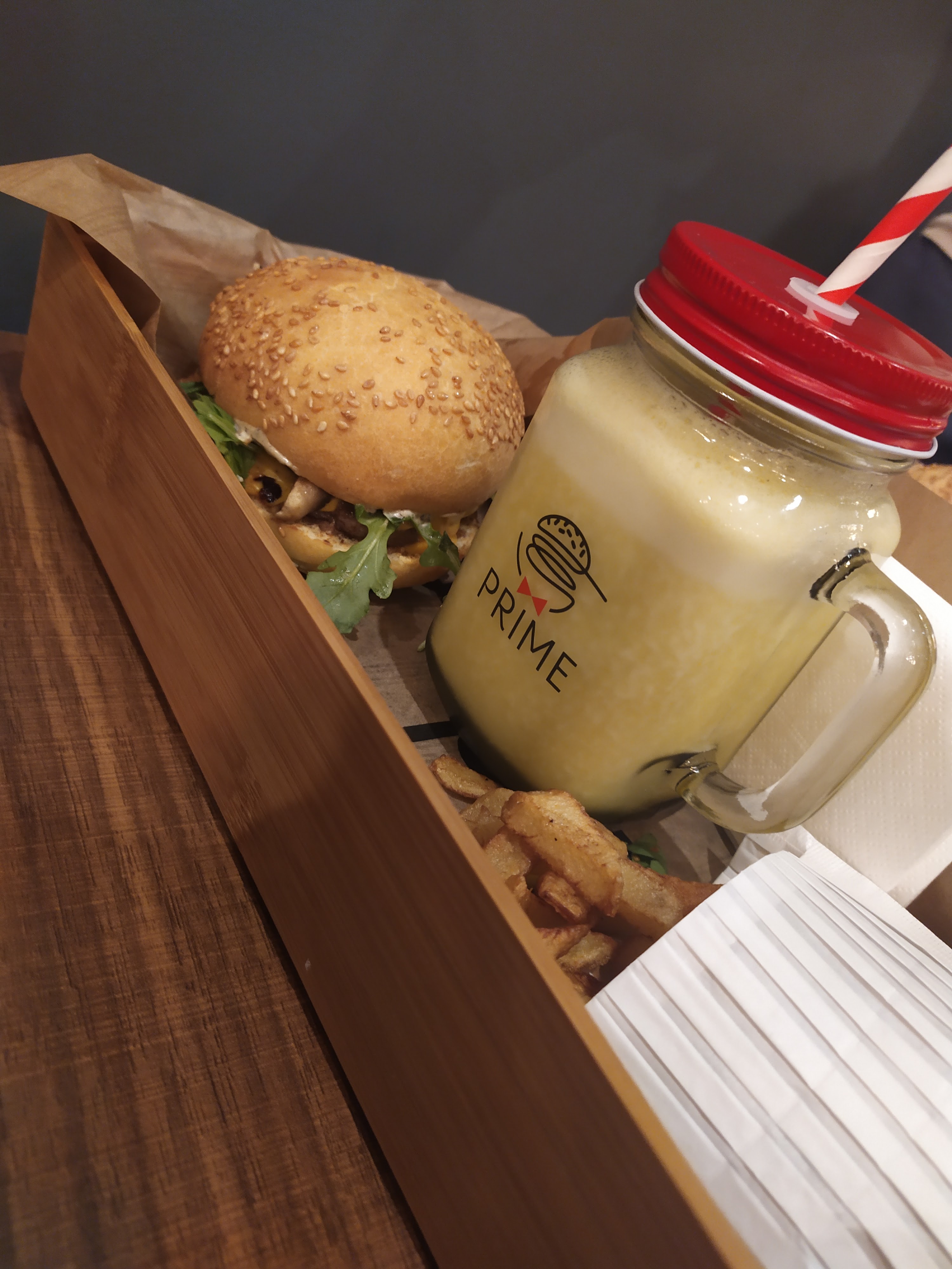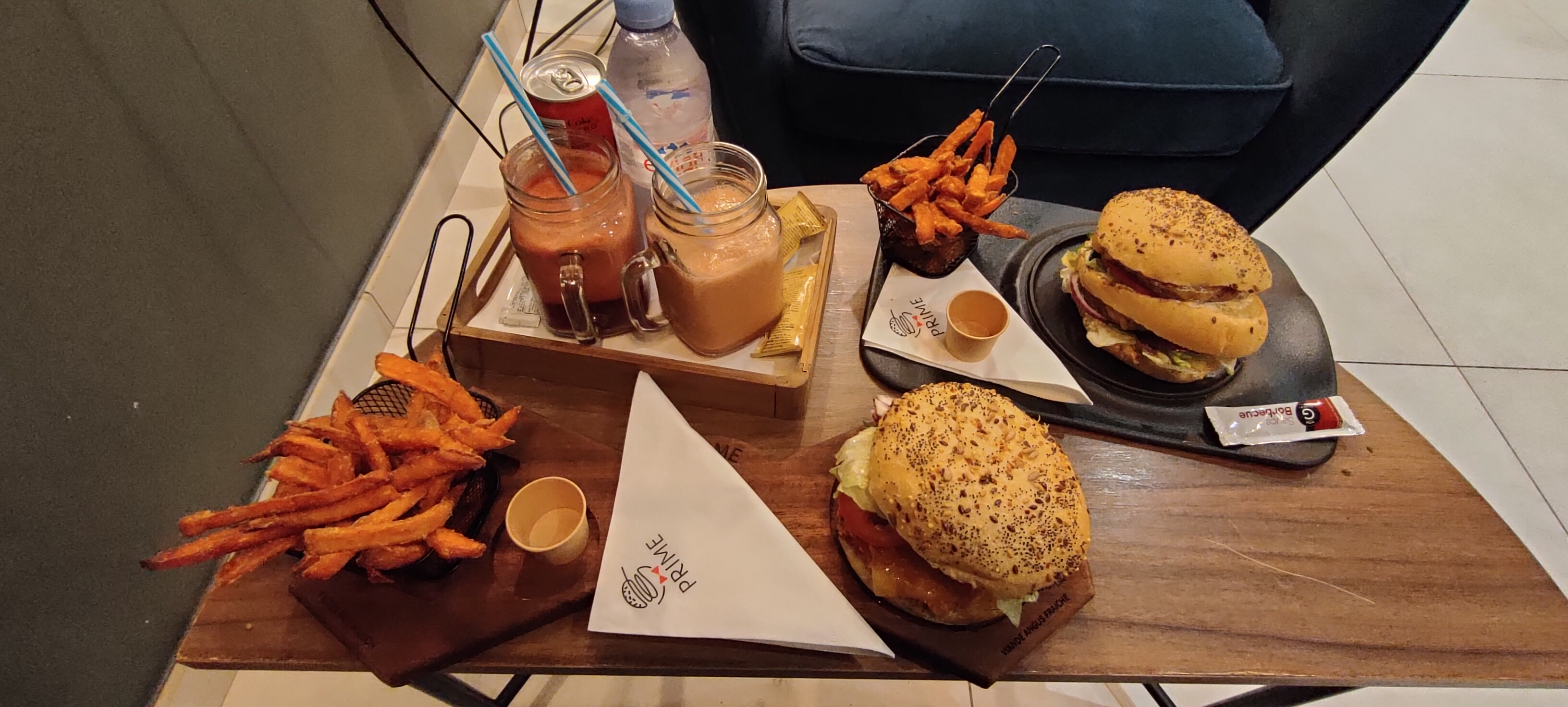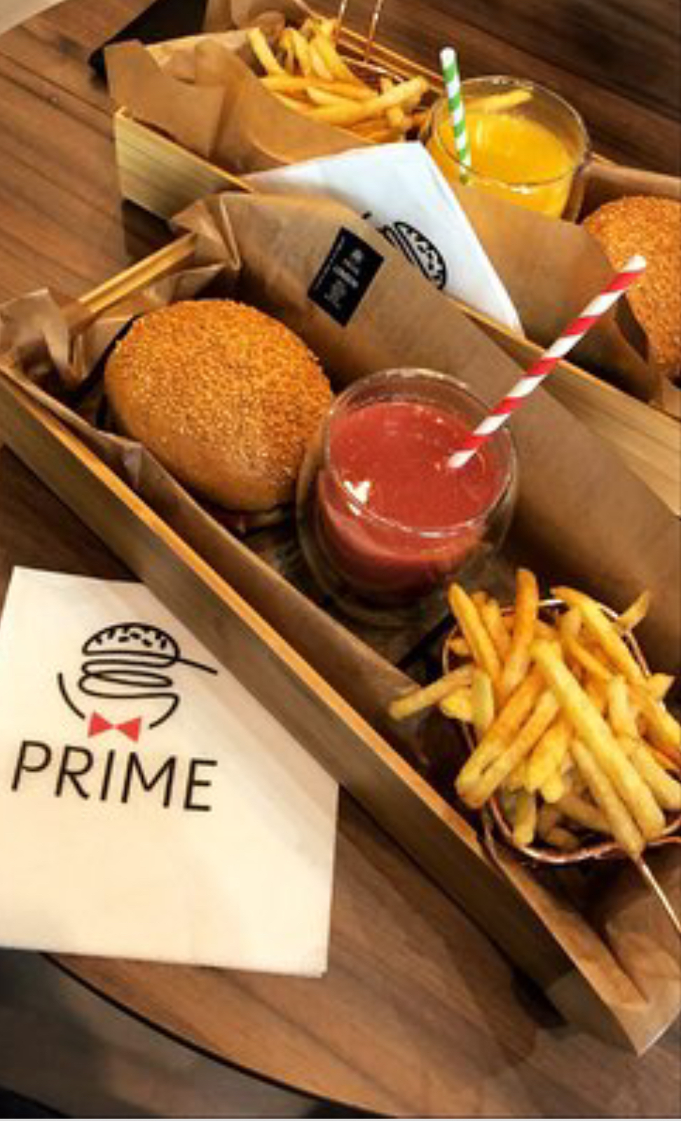 Burgers excellents ! C’est ma deuxième visite chez prime et je reviendrai. Nous avons été très bien reçu serveurs sont aux petits soins. Produits de qualité frais pains burger maison, tout était parfait jusqu’à la décoration du restaurant et la présentation des plats (sous cloche avec fumée pour le burger « prime » ) les smoothies sont délicieux. Je recommande vivement cette endroit !