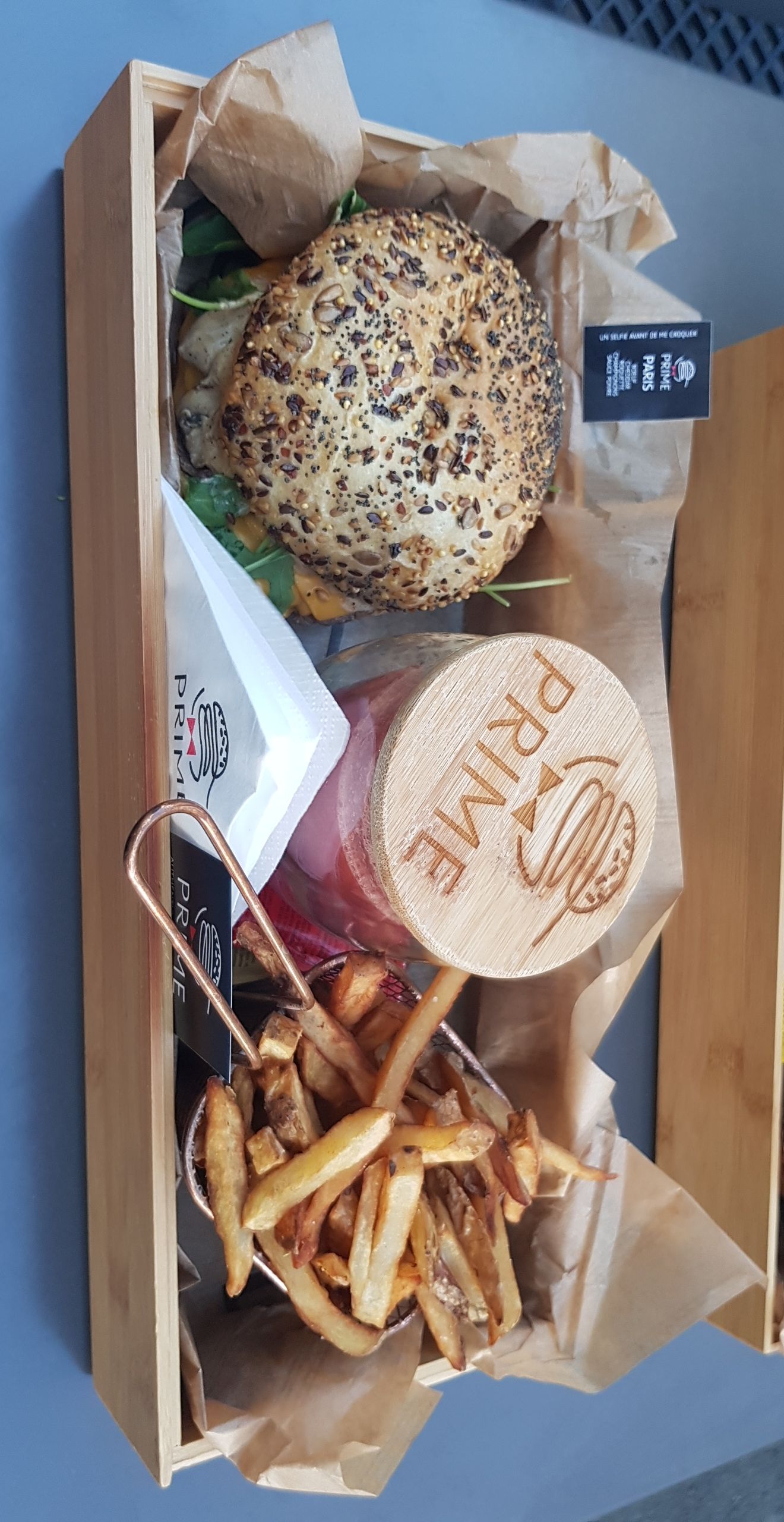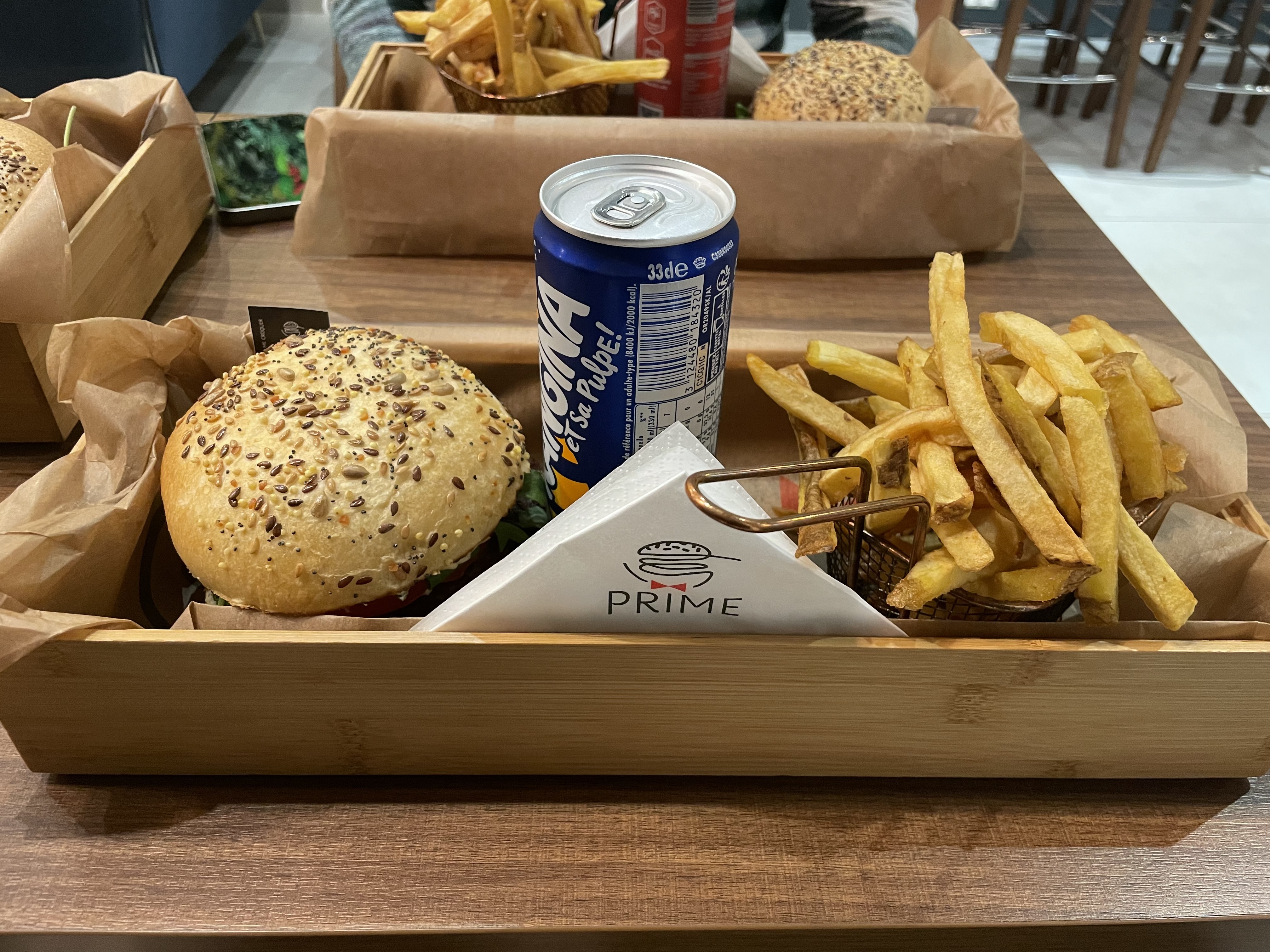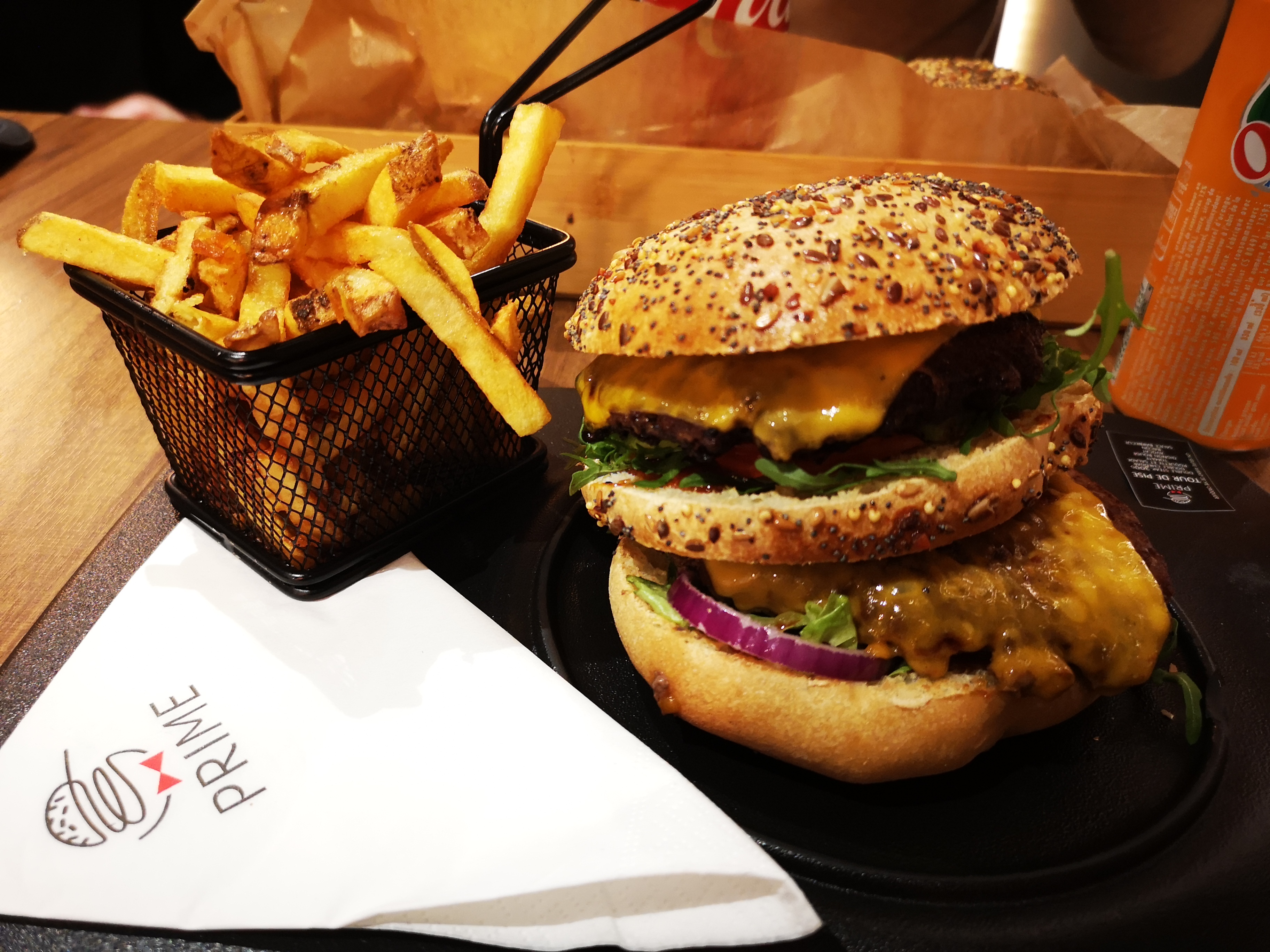 Super accueil, très bon burger, frites très bonnes, cuites comme il faut. Le restaurant est très sympa et apporte une atmosphère agréable. Un service au top. Je ne comprend pas les critiques négatives au sujet de ce restaurant, soi-disant une copie d’un autre. Quelques idées seraient pareils et alors, McDo, burger king et compagnie dans le fond on tous le même concept et pourtant personne ne crie au plagiat. En tout cas je recommande “Prime” sans aucun soupçons de doute.