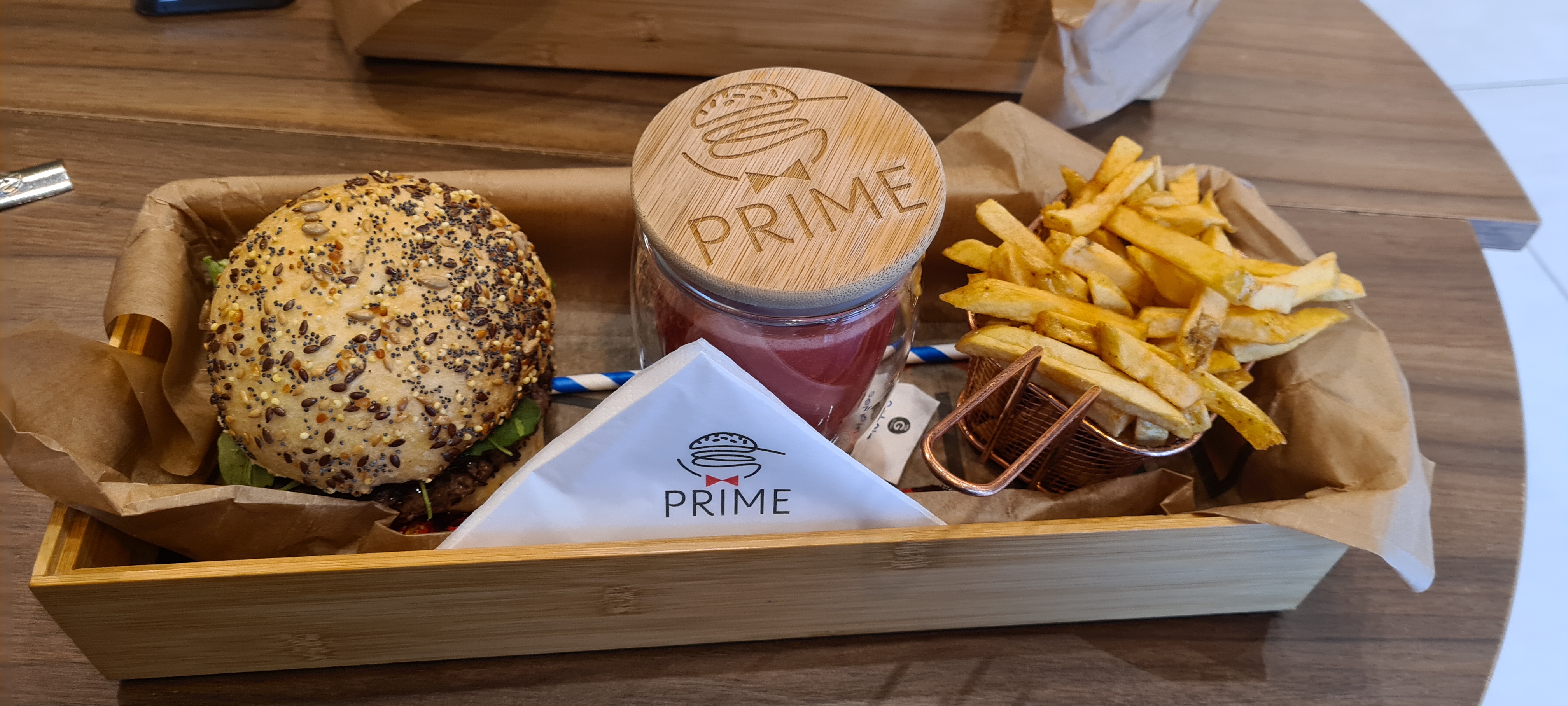Je suis assez déçu par ce restaurant! Prime ressemble comme deux gouttes d'eaux au restaurant Made : on pourrait presque dire que Prime a copié le concept et la carte de Made. Les prix sont relativement élevés. Pour exemple, il faut payer un supplément pour avoir un smoothie. En comparaison avec Made, le smoothie est compris dans le menu et les menus sont plus abordables.Je ne conseille pas forcément ce restaurant pour les amateurs de burgers.