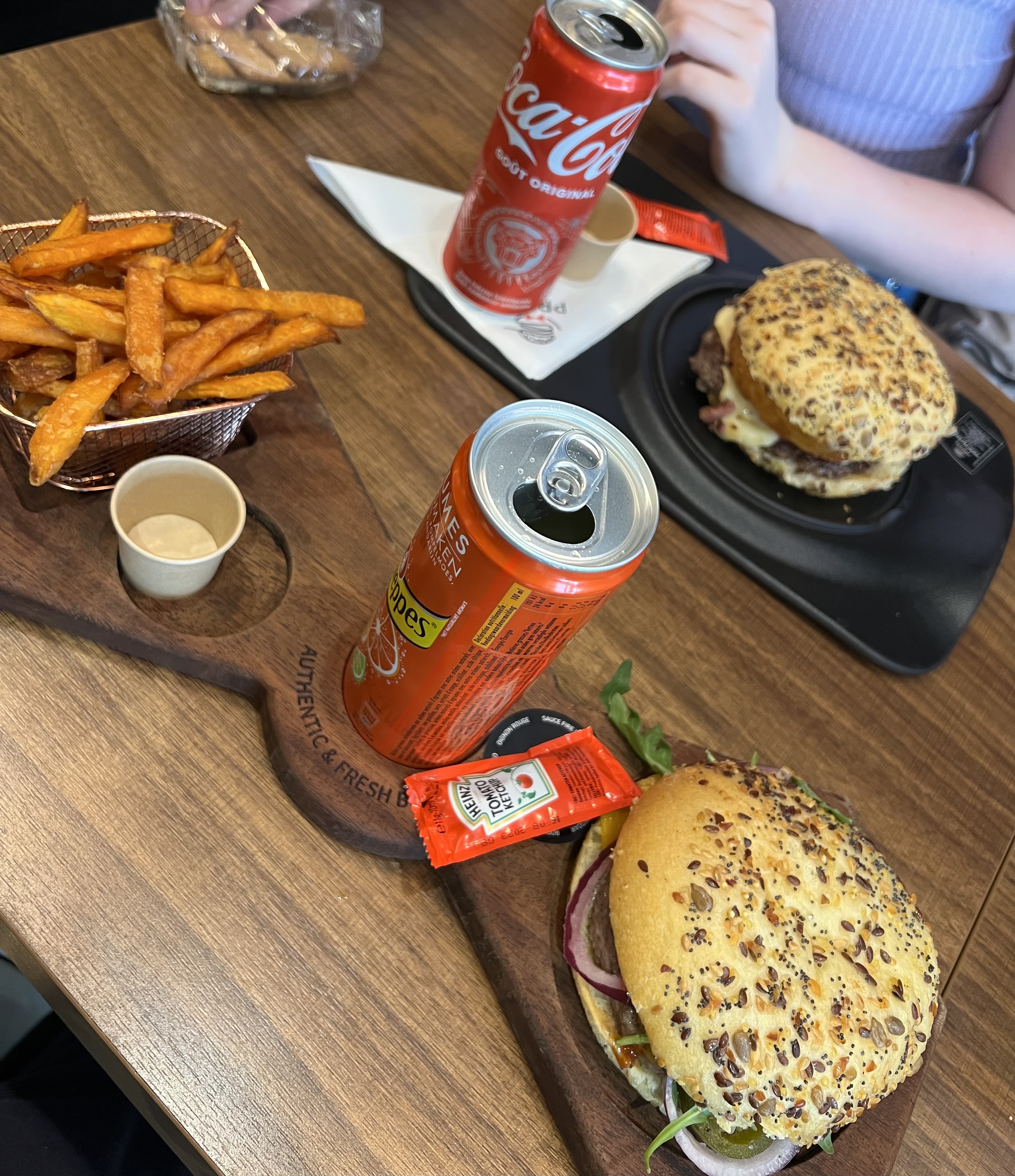 Très bon petit resto ! Cuisson idéale de la viande et la présentation plutôt jolie pour les burgers et les plateaux en bois. Le service est assez rapide et le personnel est très bien (ils ont proposé d'apporter le repas à ma mère puisqu'elle était avec une attèle, merci encore !), bref un service au petit soin et et généreux. Pour finir, l'ambiance du restaurant est moderne et conviviale (lumière, musique, ...) et le rapport qualité/prix est largement respecté ! Très bon boulot, continuez ainsi ! PS : Je pense revenir à l'avenir ! 😋