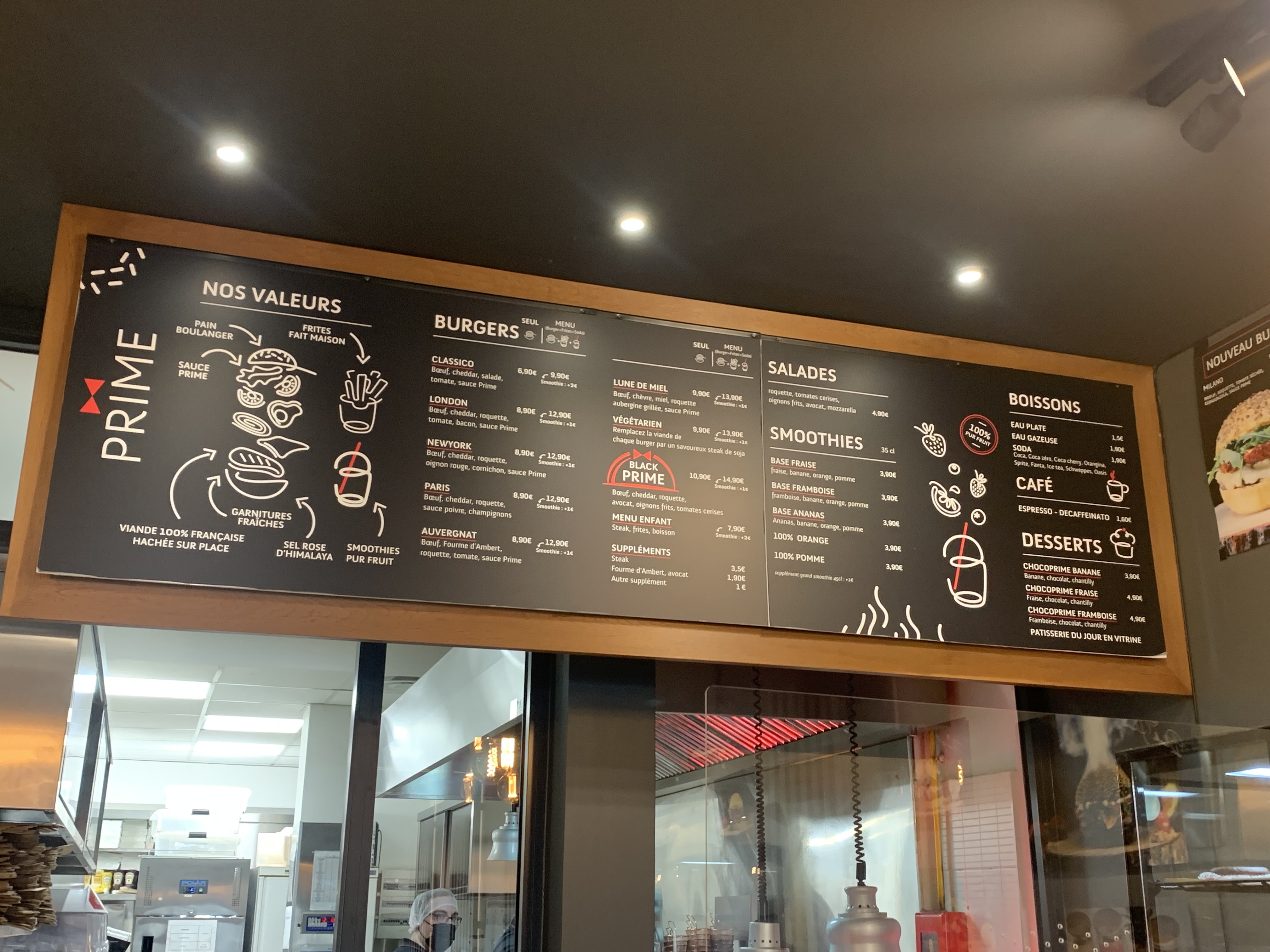 Bonjour Marie, Nous tenons à vous présenter nos plus sincères excuses pour l'incident que vous avez rencontré lors de votre visite dans notre restaurant. Nous regrettons profondément les désagréments que cela a pu causer à vous et votre famille. Nous comprenons votre déception concernant la longueur de l'attente et le manque de contact avec notre personnel. Nous nous excusons sincèrement pour ces problèmes et nous prenons note de vos commentaires pour améliorer notre service à l'avenir. Nous tenons à souligner que nous avions effectivement une personne absente ce jour-là, ce qui a impacté notre service. De plus, nous avons été confrontés à un nombre de commandes en livraison plus élevé que prévu, ce qui a rallongé les délais de préparation. Nous souhaitons également clarifier un point important. Nous tenons à préciser que nos produits ne sont pas simplement des produits simples à préparer. Au contraire, nous accordons une grande importance à la fraîcheur et à la qualité de nos ingrédients. Prime se distingue par la préparation de nos plats à la commande en utilisant des produits frais. Contrairement à certains autres établissements, nous ne nous contentons pas de faire un simple assemblage d'ingrédients pré-préparés. Notre viande est 100% Angus fraîche, préparée spécialement à la commande. De plus, nos frites maison sont préparées selon la méthode belge, avec une première et une deuxième cuisson, afin d'obtenir des frites croustillantes et savoureuses. Nous sommes fiers de la qualité de nos produits et de l'attention que nous portons à chaque étape de leur préparation. Nous comprenons également vos préoccupations concernant le rapport qualité-prix. Veuillez noter que malgré l'inflation forte des matières premières, nous avons fait le choix difficile de maintenir un rapport de qualité-prix déséquilibré. Cela signifie que nous avons pris la décision de limiter les augmentations de prix afin respecter la devise de notre concept "Le luxe accessible à tous". Nous croyons fermement que nos clients méritent de savourer des plats de haute qualité sans compromis, et nous nous engageons à maintenir cette approche malgré les défis économiques actuels. En ce qui concerne les photos de burger avec fraises et framboises, nous vous présentons nos excuses pour la confusion causée. Il est regrettable que ces options ne soient pas disponibles au moment de votre visite. Nous ferons en sorte d'actualiser notre menu afin d'éviter toute confusion à l'avenir. En dépit de ces problèmes, nous tenons à souligner que vous êtes toujours le bienvenu chez Prime. Nous apprécions vos commentaires et nous nous efforçons continuellement d'améliorer notre service et de vous offrir une expérience positive. Nous espérons que vous nous donnerez l'opportunité de vous accueillir à nouveau et de vous montrer les améliorations que nous apporterons à notre service. Votre satisfaction est notre priorité absolue. Cordialement, La direction