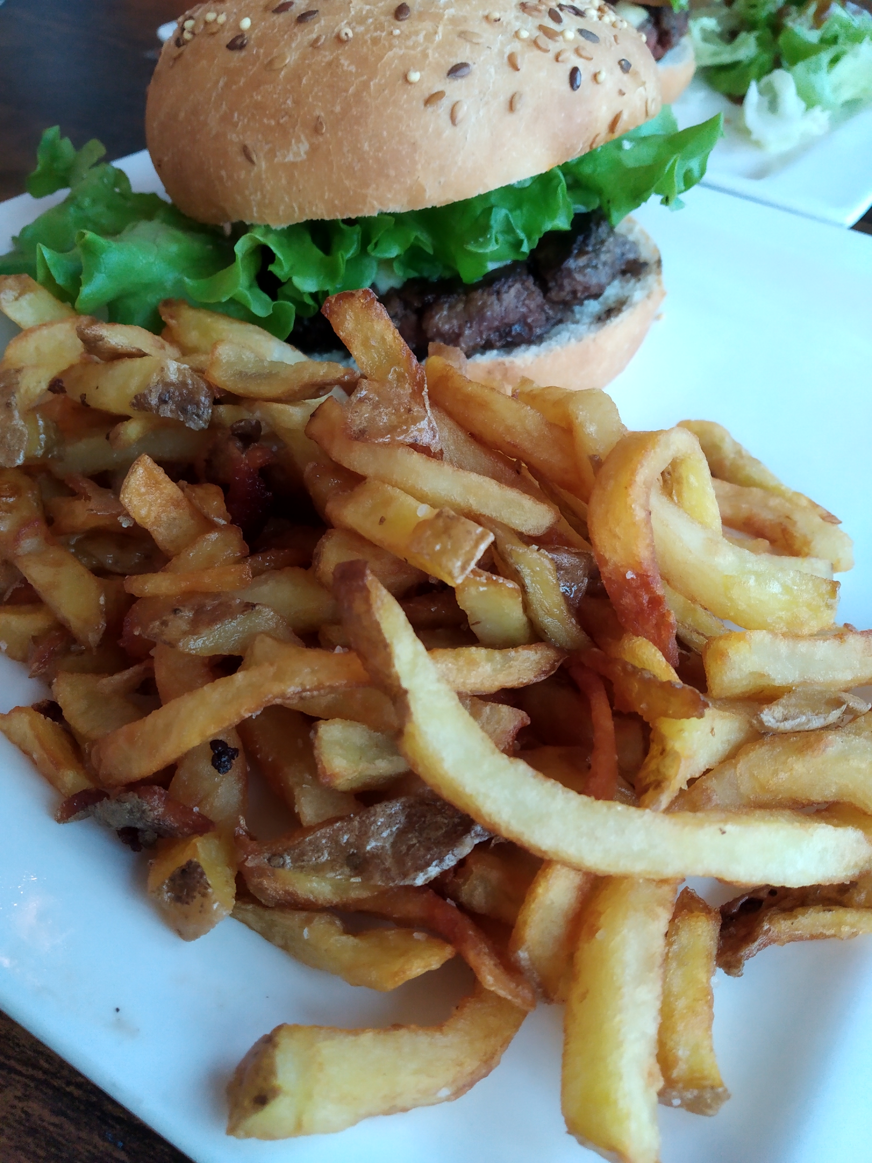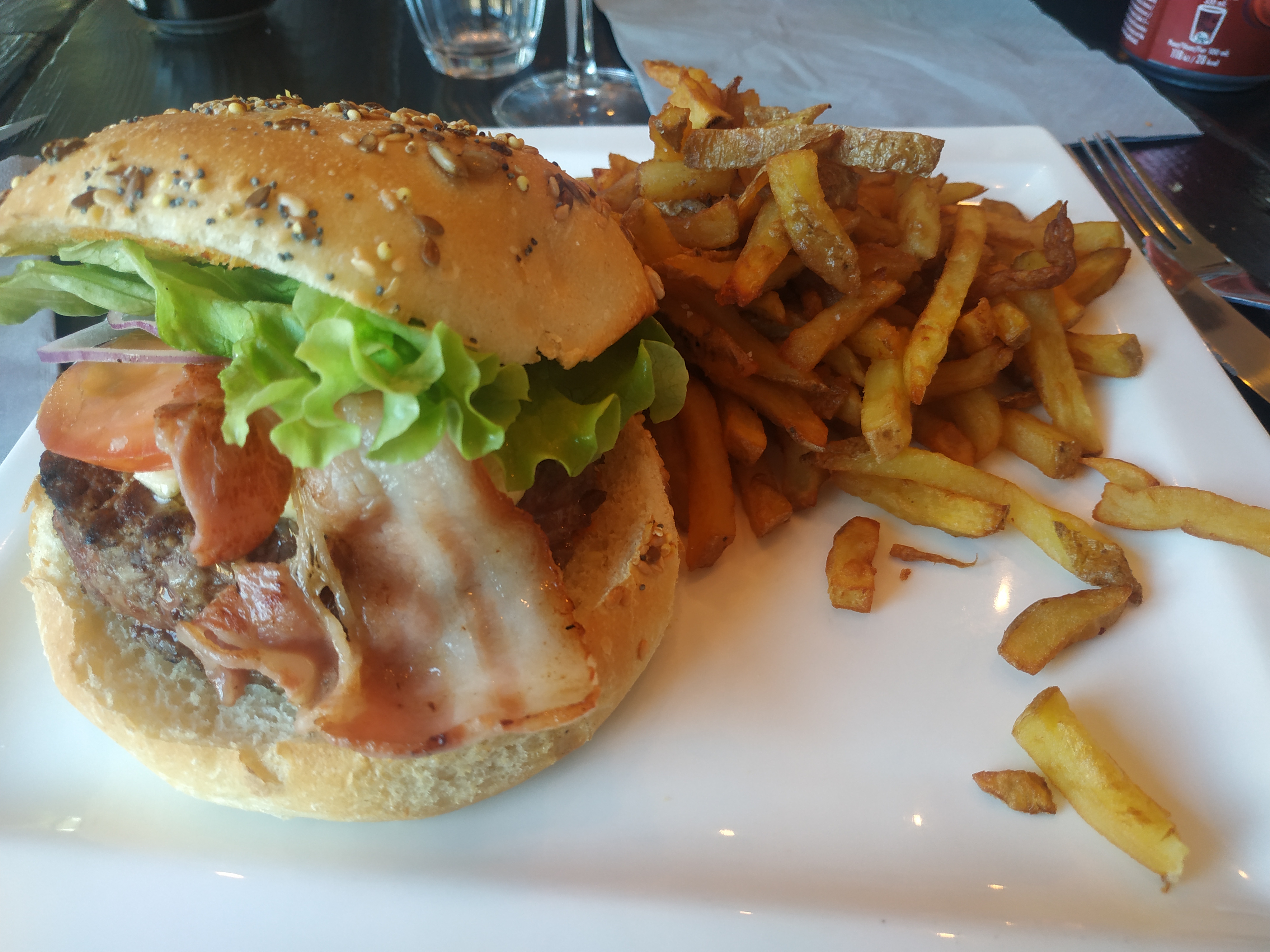 Burger avec du vrai pain à burger, viande très bonne et cuisson irréprochable. Les frites sont également très bonne, pas sèche ni grasse, je pense qu'il s'agit de frites maison. Nous n'avons pas été déçu et nous le recommandons.