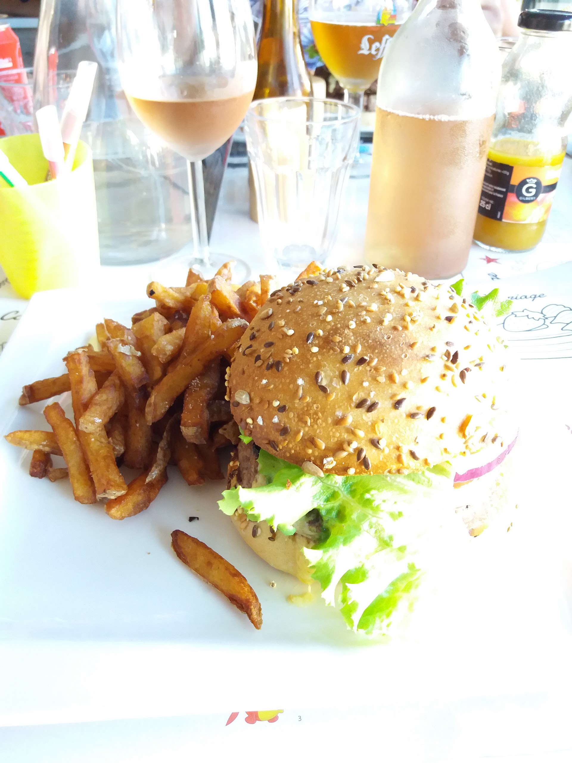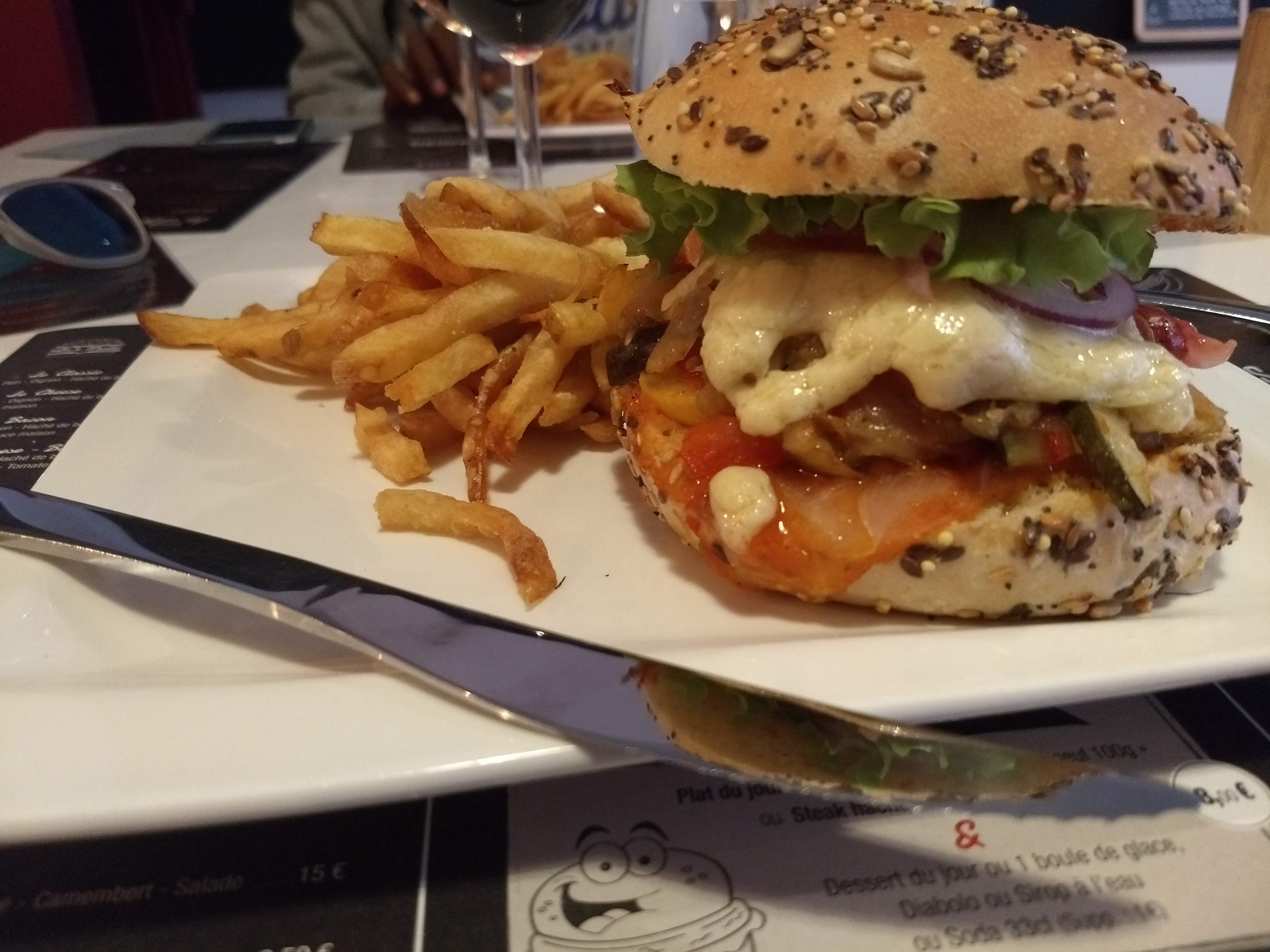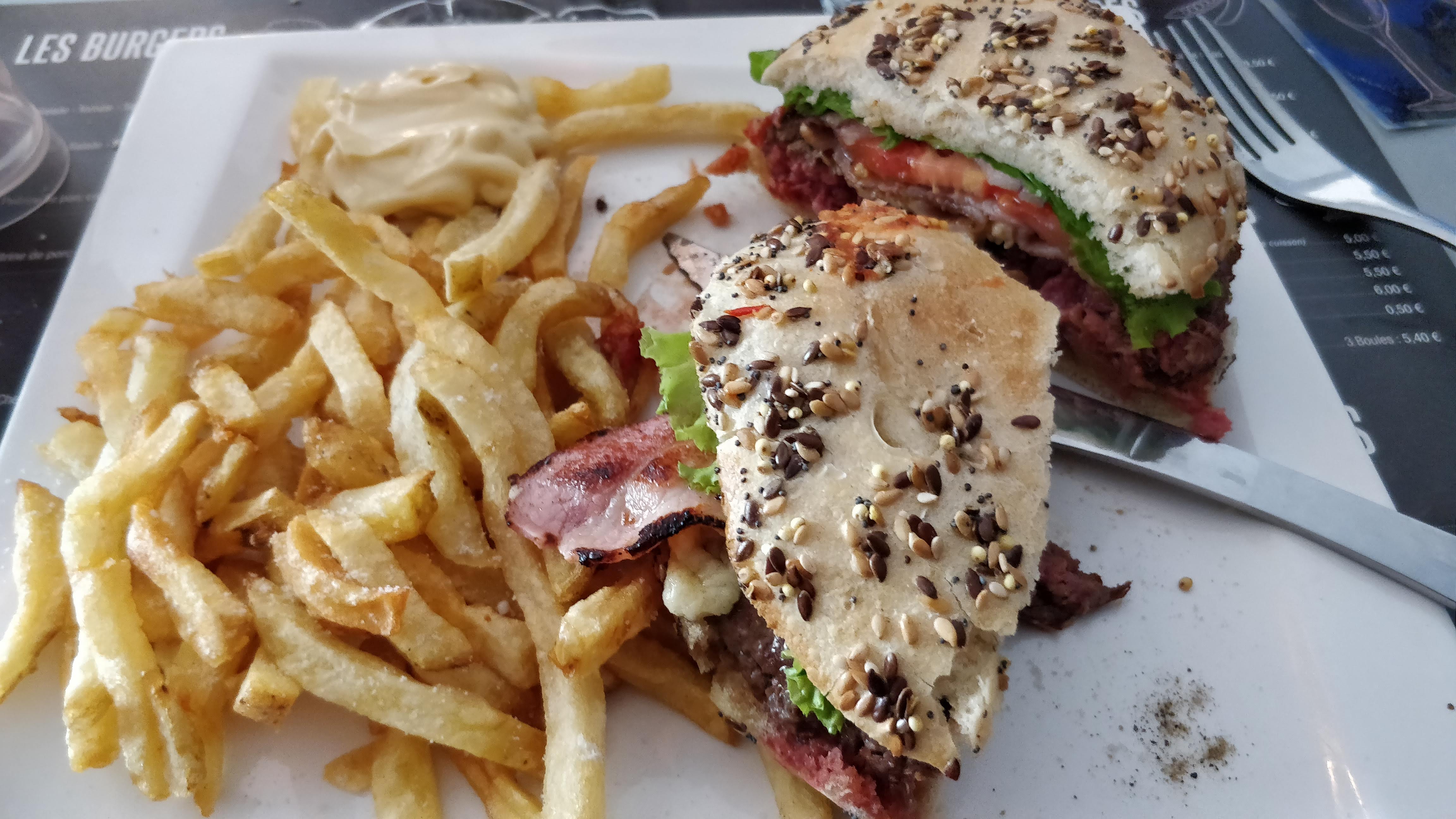 Burger copieux avec d'excellentes frites maison merci pour ce moment agréable