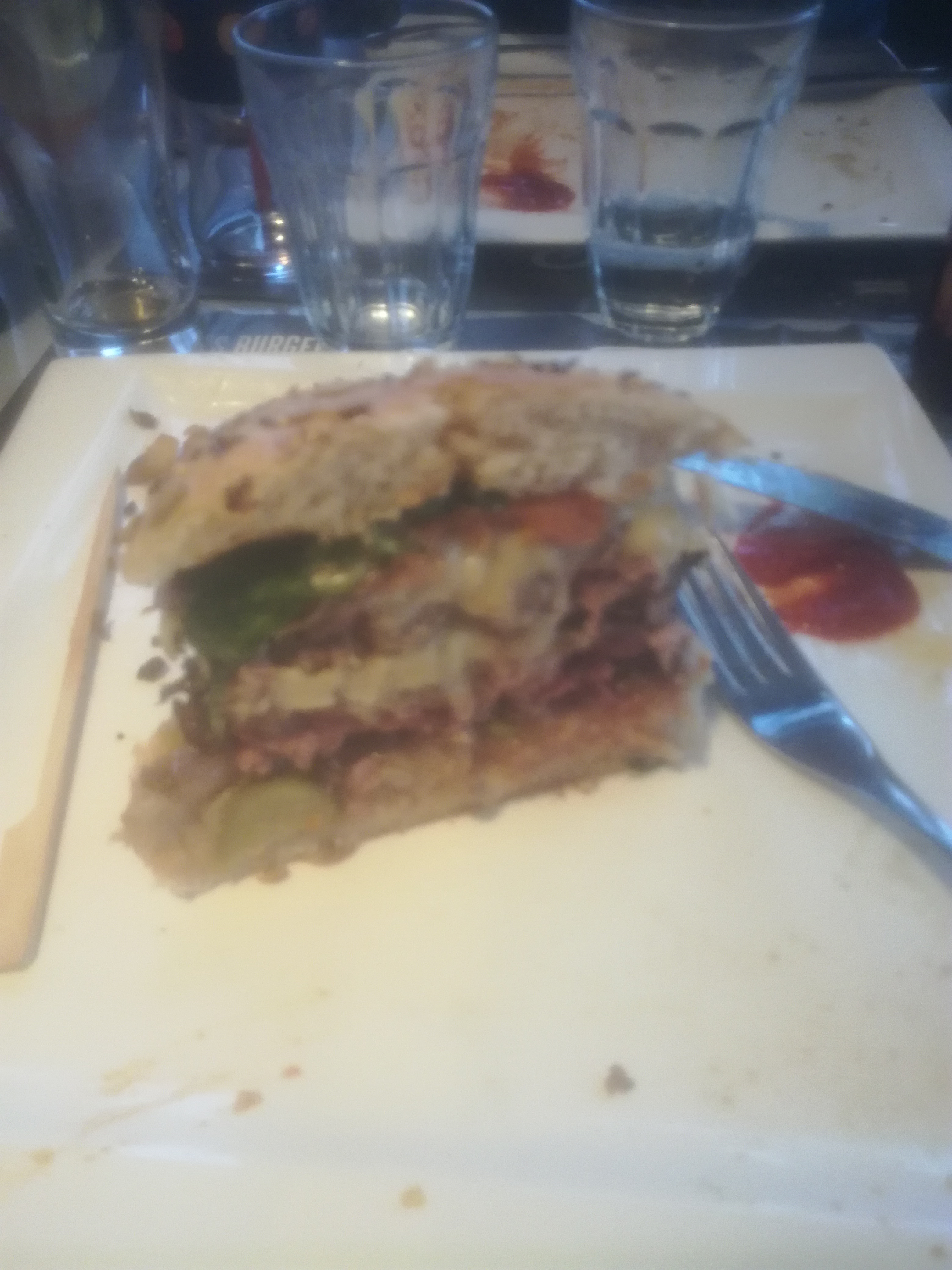 Très très bon hamburger bien copieux (avec camembert miel délicieux) . Échange malencontreux de steack (pas la bonne cuisson) dans l'un des hamburgers, vite corrigé et avec en prime un geste pour compenser ce petit contretemps. Bonne ambiance. Service rapide et souriant. Des jeux pour les enfants.