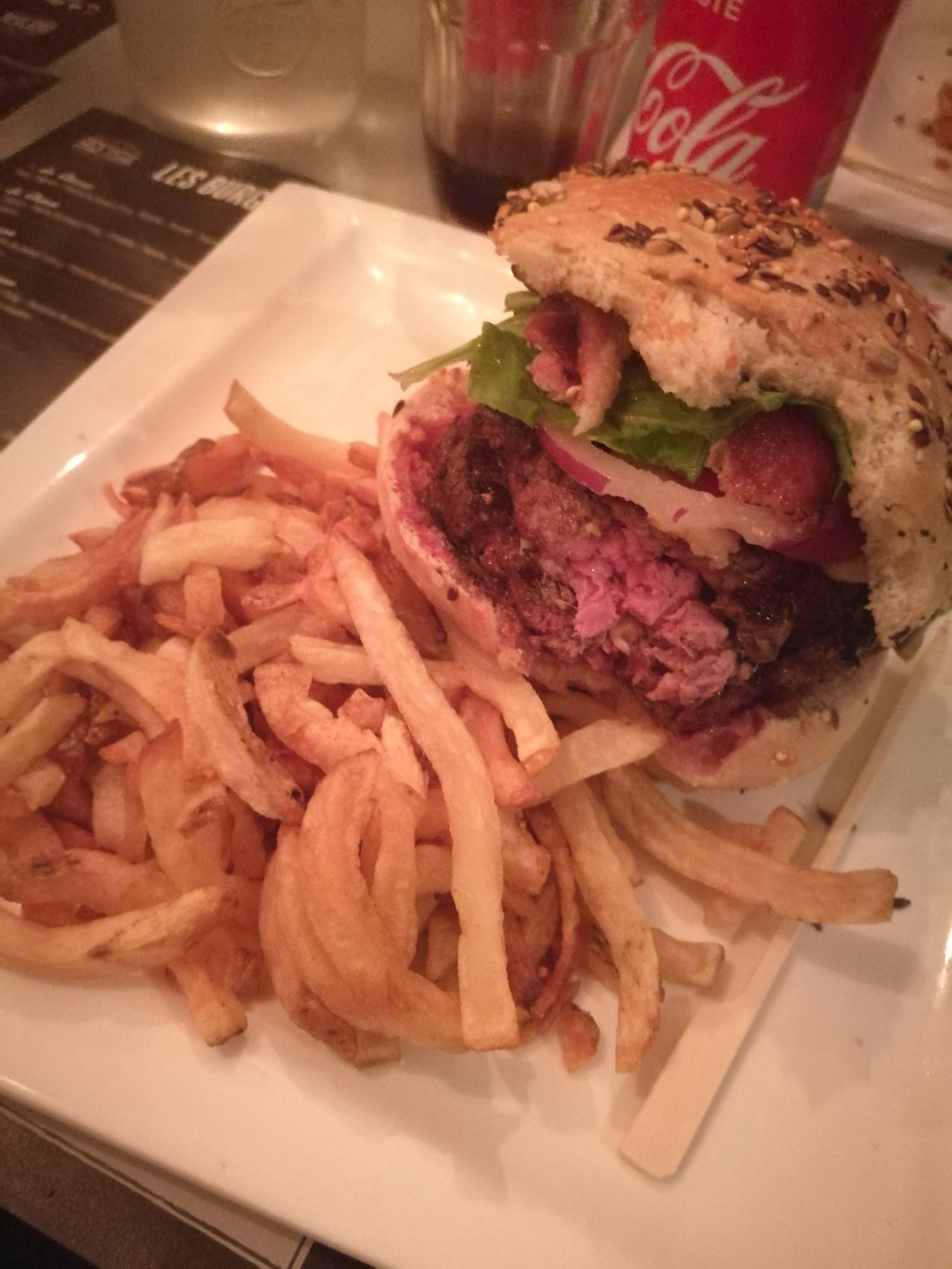 Burger et frites excellents ! Très généreux pour le prix .