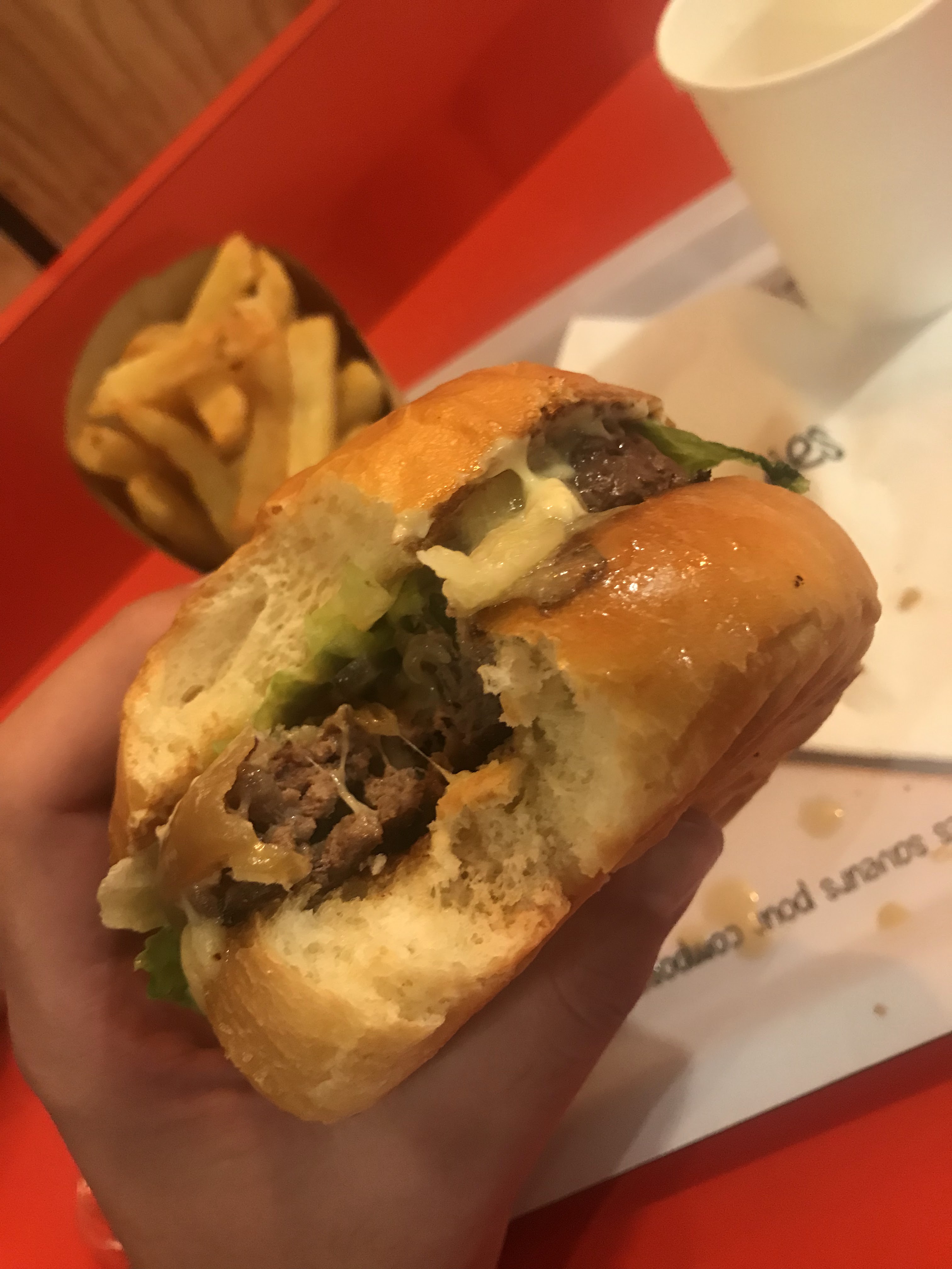 Les burgers sont évidemment gourmands, grâce au fromage notamment. Les frites sont très bonnes. L’endroit est cool, et on est bien accueilli. Le concept est vraiment bien !