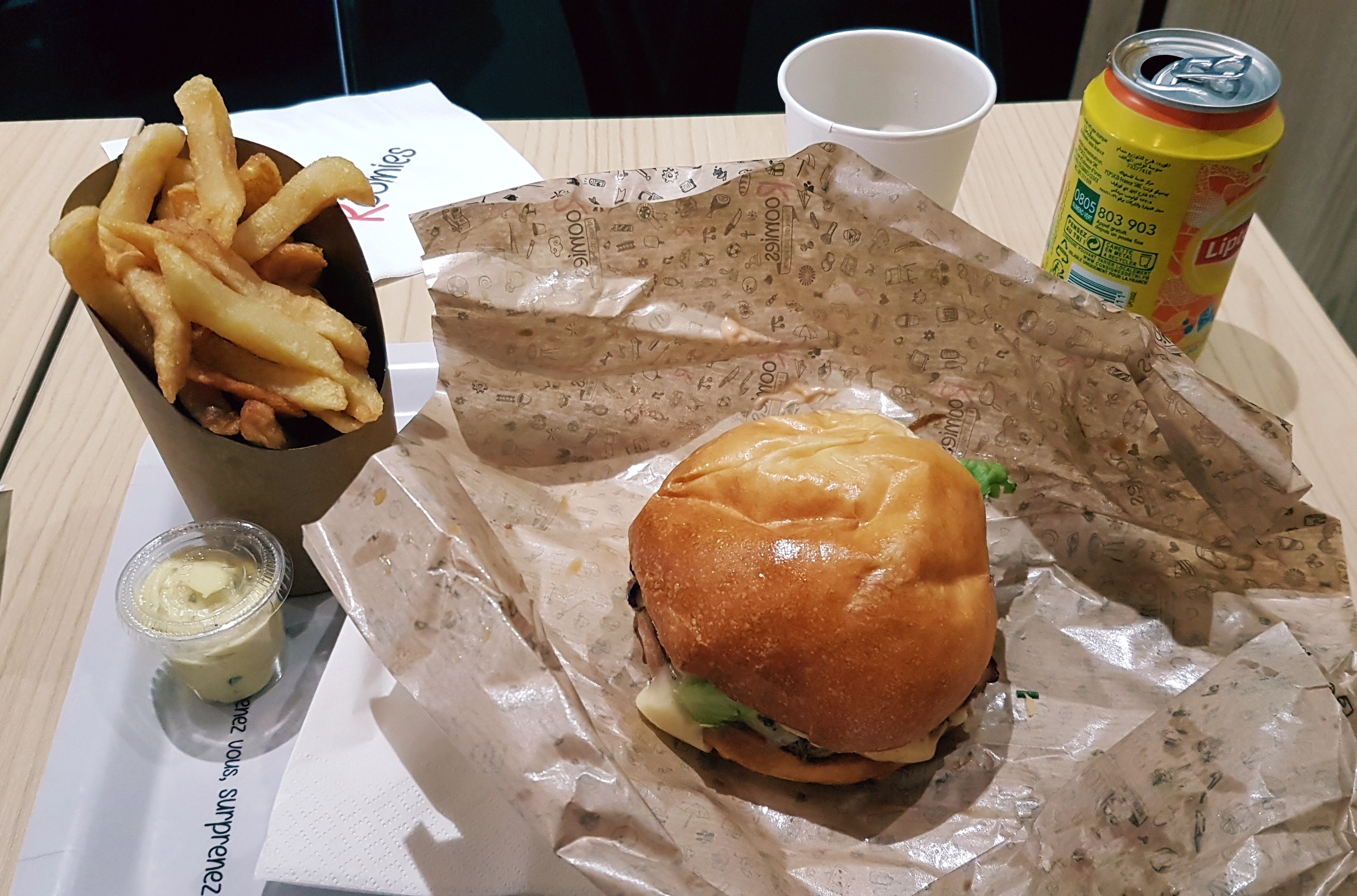 Le burger était bon, pour ça pas de problème. MAIS j'avais pris en livraison et j'ai eu la joie de découvrir à l'arrivée qu'il n'y avait pas de sauce pour manger les frites ! Non mais vraiment ?