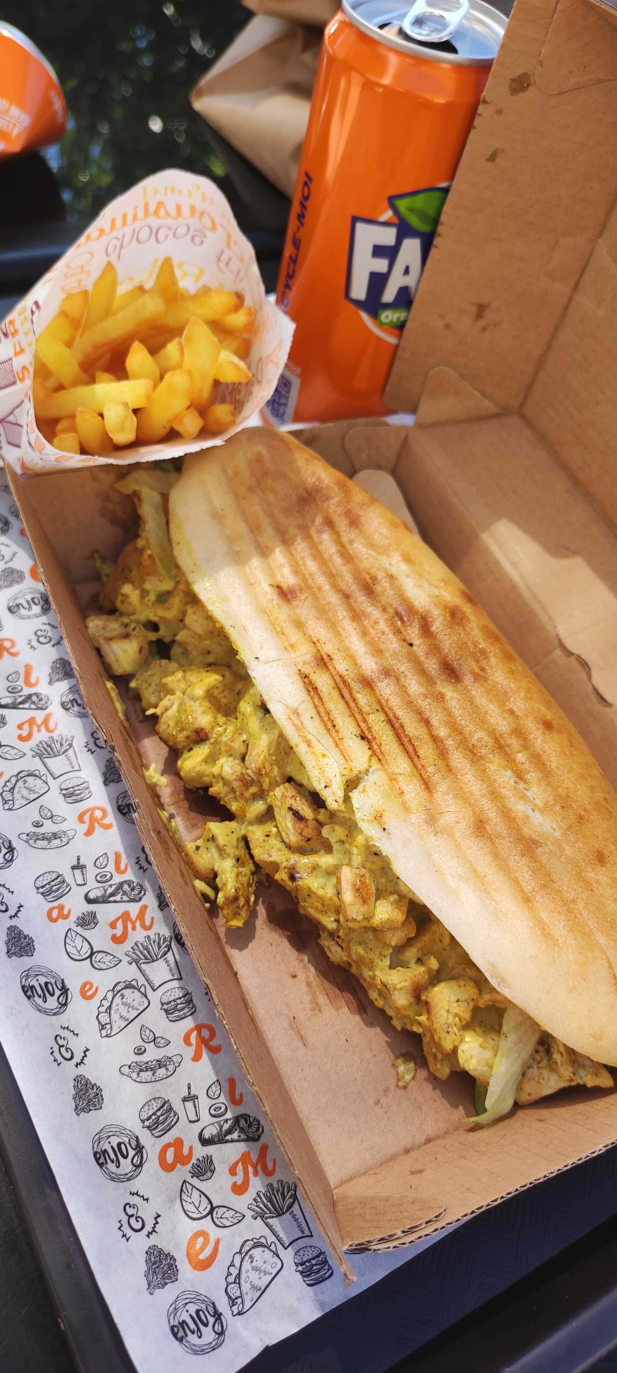Une bonne ambiance au saint de l’enseigne une bonne hygiène de vie, livraison rapide sauf petit bémols sur le kebab curry avec trop de sauce. Viande halal vendeur drôle et très gentilles . Je conseille vraiment