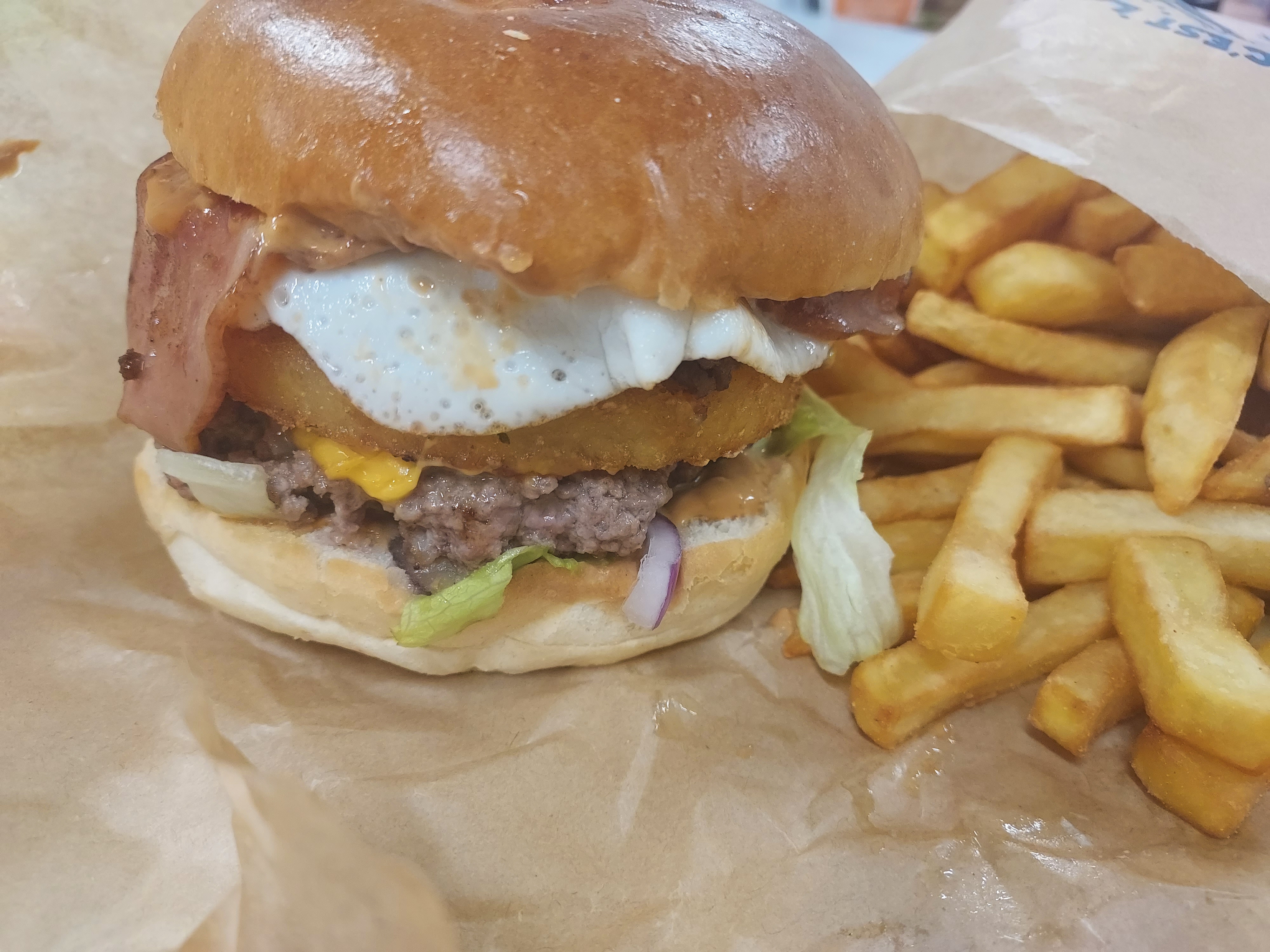 J'ai mangé sur place, un menu burger avec frites et boissin . Le service est extrêmement rapide , on se démène en cuisine pour nous servir ! C'est très bien et très bon . Je reviendrai même avec 20 minutes de route 🍔.