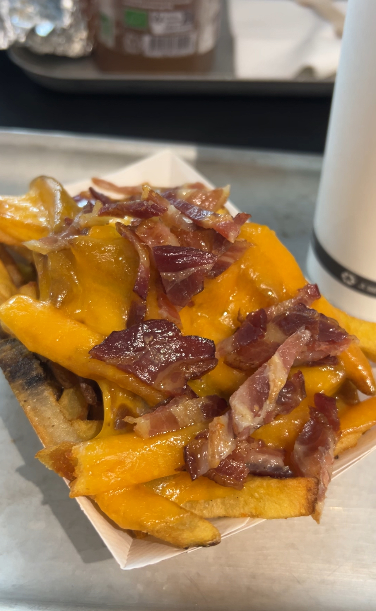 Pas foncièrement mauvais mais les steaks et le bacon étaient trop cuits, sans pour autant être caramélisés, ce qui est normalement l’intérêt d’un smash. 11€50 le cheeseburger seul pour ce rendu fait un peu grincer des dents, d’autant plus quand il faut attendre presque une demie heure pour être servis alors qu’il n’y avait que 2 tables occupées, en comptant la nôtre