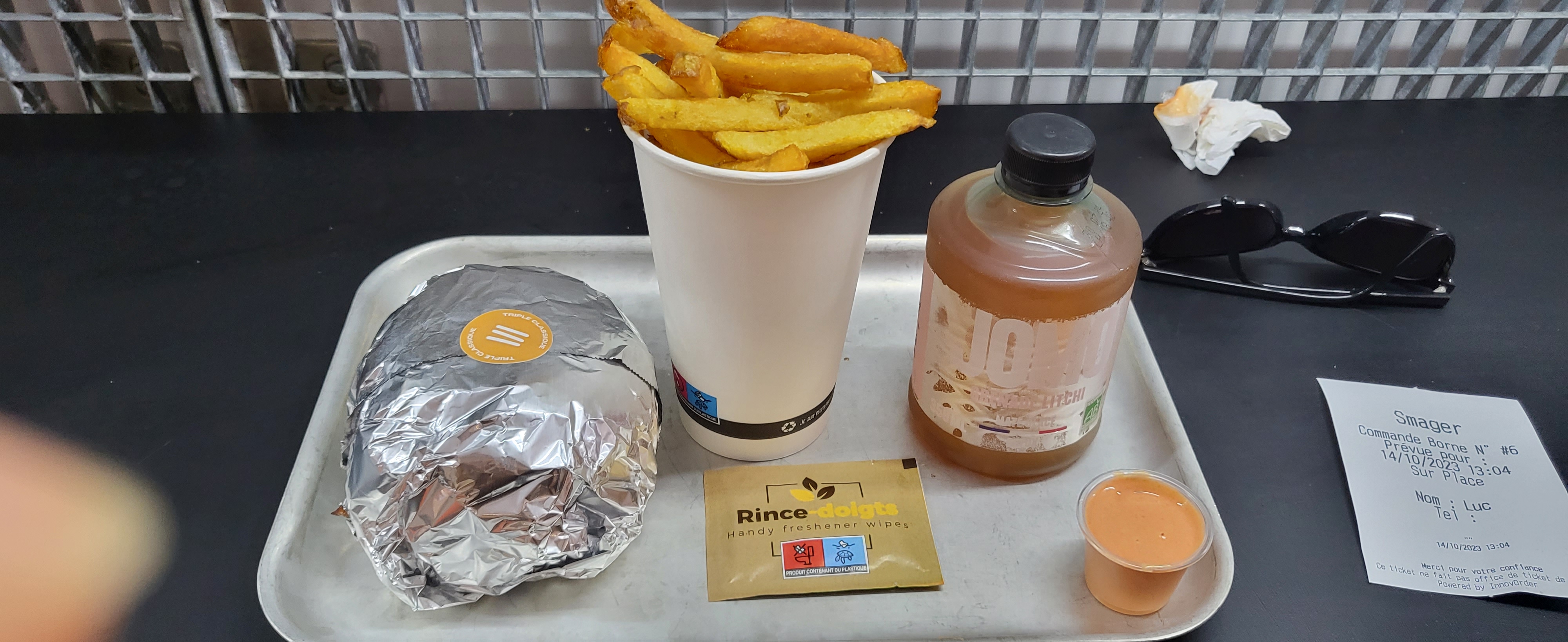 Choix Menu classique avec un Patty en plus, coca (classique) et frites maison. Le style smash est intéressant et le Bourget proposé très bon et copieux, 3 patties de base avec une sauce maison un peu relevé. Les frites sont excellentes et la portion correcte. Personnel très agréable et souriant. Petit sur le prix un peu haut et la méthode de prise de commande automatique en self-service. A tester pour découvrir cette « nouveauté » venu des US